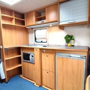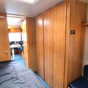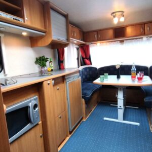Alde, Jääkaappi, Kasetti WC, Kasettiverhot, Kattoluukku, Pesuallas, Pakastelokero, Nestekiertolämmitys, Mikroaaltouuni, Liesi, Radio, Sähköpatruuna, Tukijalat, CD-soitin, Erikoisvanteet, Kerrossänky, Lattiamatot asunto-osassa, Lämminvesiboileri, Markiisi, Parivuode, Suihku, TV-antenni tai lautasantenni