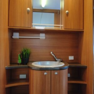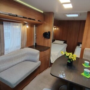 Alde, Erikoisvanteet, Erillisvuoteet, Jääkaappi, Kaasu-uuni, Kasetti WC, Kasettiverhot, Kattoluukku, Lattiamatot asunto-osassa, Liesi, Lämminvesiboileri, Nestekiertolämmitys, Pakastelokero, Pesuallas, Pyöräteline, Suihku, Sähköpatruuna, Kesärenkaat, kwh-mittari, sähkön ulosotto, Lattialämmitys