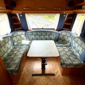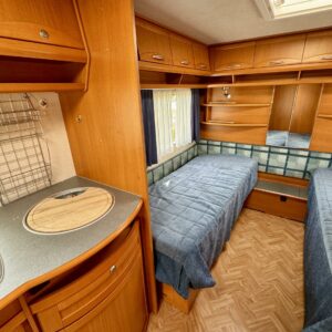 Kasettiverhot, Kasetti WC, Jääkaappi, Kattoluukku, Liesi, Lämminvesiboileri, Markiisi, Pesuallas, Pakastelokero, Tukijalat, Alde, Erillisvuoteet