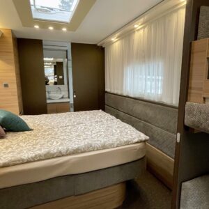 Alde, Jääkaappi, Kaasu-uuni, Kahdet renkaat, Kasetti WC, Kasettiverhot, Kattoluukku, Kerrossänky, Liesi, Lämminvesiboileri, Mikroaaltouuni, Nestekiertolämmitys, Pakastelokero, Parivuode, Pesuallas, Suihku, Sähköpatruuna, Tukijalat, Lattialämmitys (nestekierto), Kesärenkaat, Talvirenkaat(nasta), sähkön ulosotto