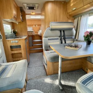 Ilmastointi: Manuaalinen, Ilmastointi ajotilassa, Kaasu-uuni, Kasetti WC, Kasettiverhot, Kattoluukku, Keskuslukitus: Kaukosäätöinen, Keskuslämmitys, Käynnistyksenesto, Lattialämmitys, Ohjaustehostin, Pakastelokero, Liesi, Lämminvesiboileri, Pesuallas, Markiisi, Trumatic, Sähköpatruuna, Vakionopeudensäädin, Turbo, Lattiamatot asunto-osassa, Pyöräteline, Vetokoukku, Sähköpeilit, Pysäköintikamera, ABS-jarrut, Airbag, Ajotietokone, CD-soitin, Erillisvuoteet, Jääkaappi, Sähkökäyttöiset ikkunat, Suihku, Radio, Tukijalat, TV-antenni tai lautasantenni