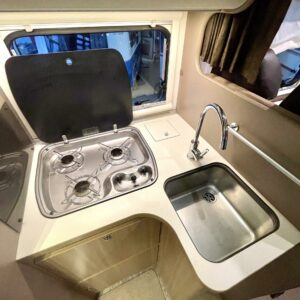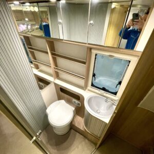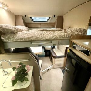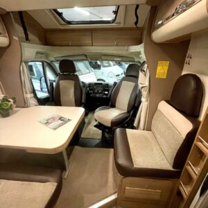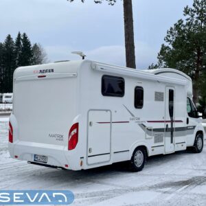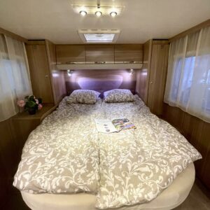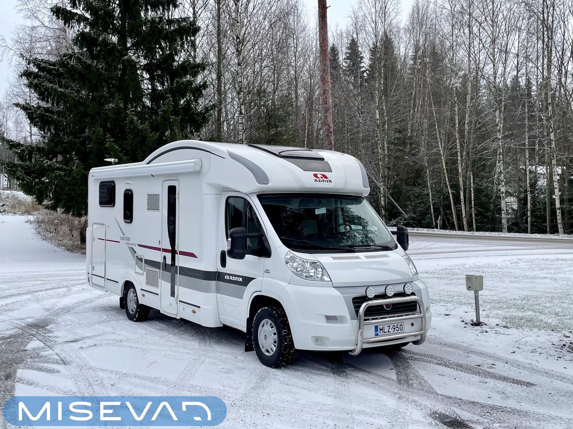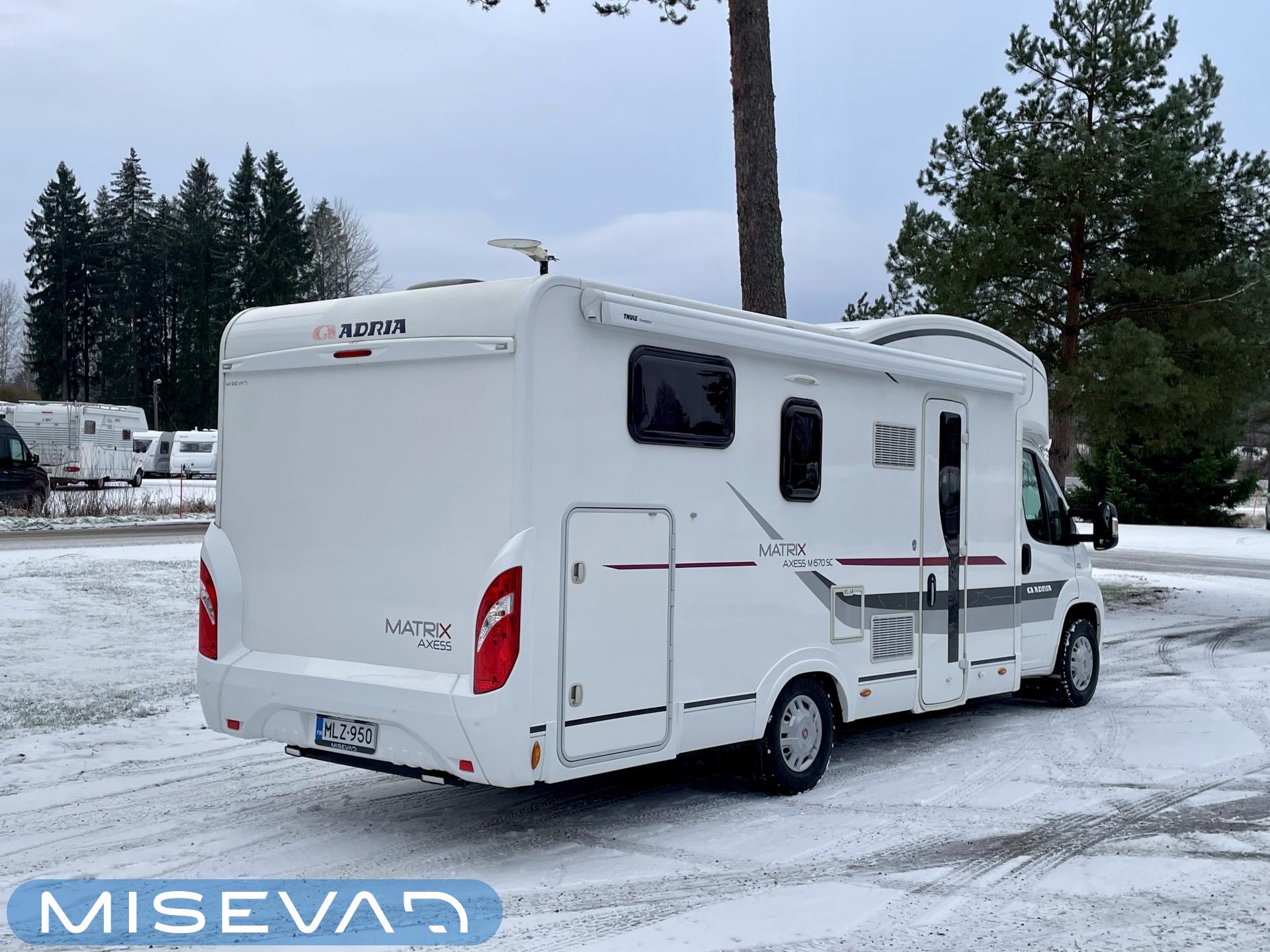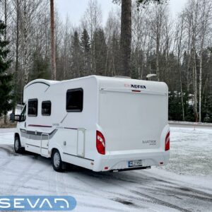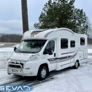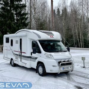ABS-jarrut, Kahdet renkaat, Trumatic, Markiisi, Sähköpatruuna, Lattialämmitys, Vakionopeudensäädin, kwh-mittari, Huoltokirja, Tukijalat, laskuvuode, Ilmastointi (ohjaamo), Lattiamatot asunto-osassa