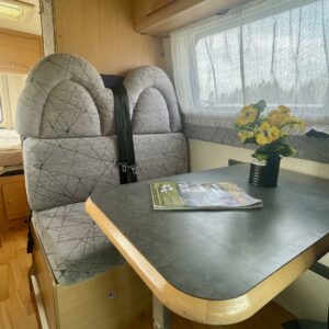 Jääkaappi, Kasetti WC, Kattoluukku, Liesi, Markiisi, Ohjaustehostin, Pakastelokero, Parivuode, Pesuallas, Suihku, Ilmastointi ajotilassa, Lämminvesiboileri, Radio, Sähkökäyttöiset ikkunat, Sähköpeilit, Trumatic, Kesärenkaat, kwh-mittari