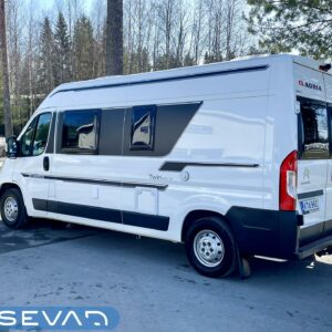 Truma, Sähköpatruuna, Ilmastointi (ohjaamo), Vakionopeuden säädin, Markiisi, Vetokoukku, Huoltokirja ok, Kesärenkaat, ohjaamon kasettiverhot, Peruutuskamera, Multimedialaite (sis. p-kamera, navi, soitin, bluetooth, handsfree), Asuinosan hyttysovi/verho, Bluetooth, Kattoluukku, Kasetti WC, Jääkaappi, Liesi, Navigaattori, Sähkörappu