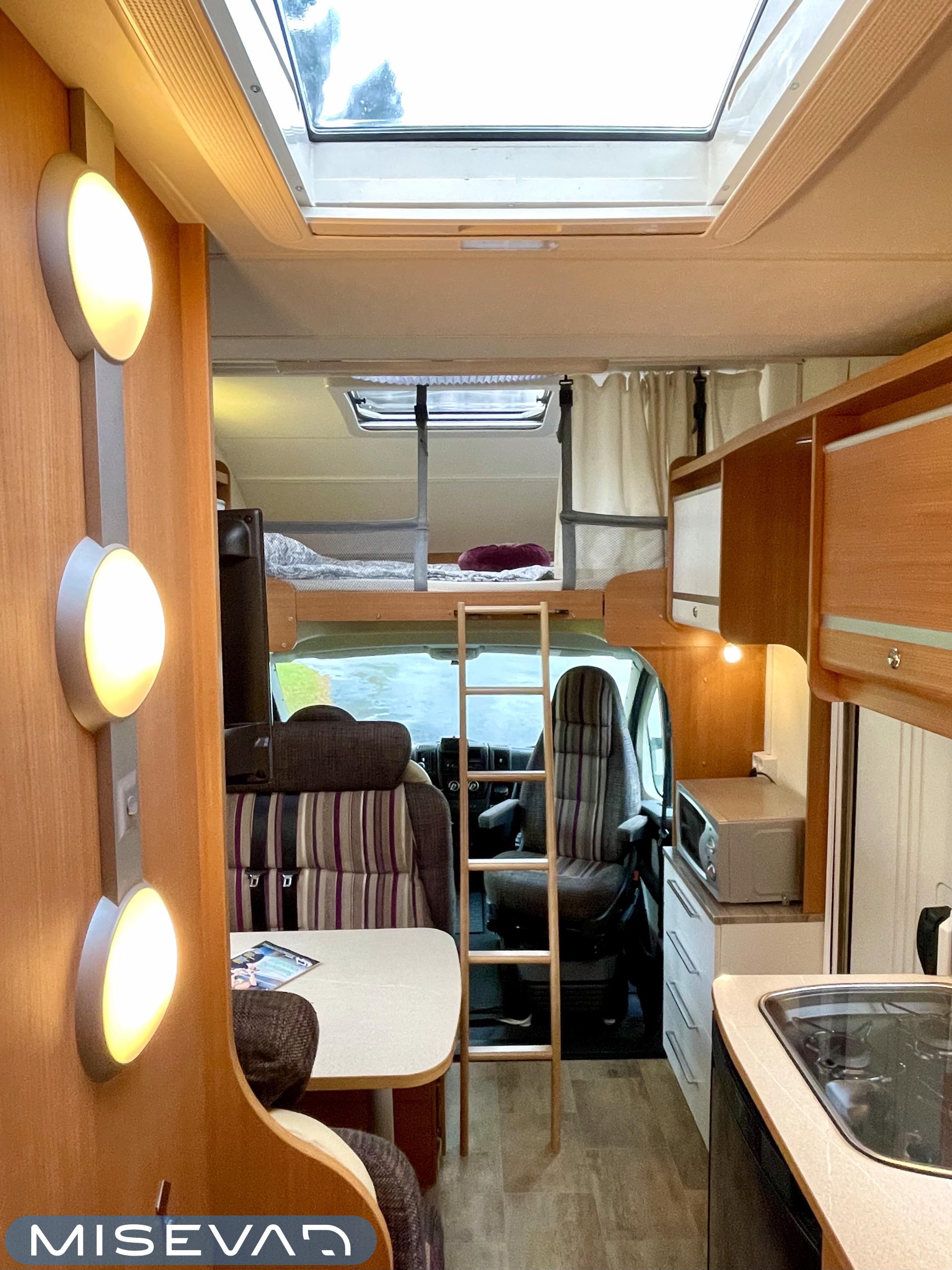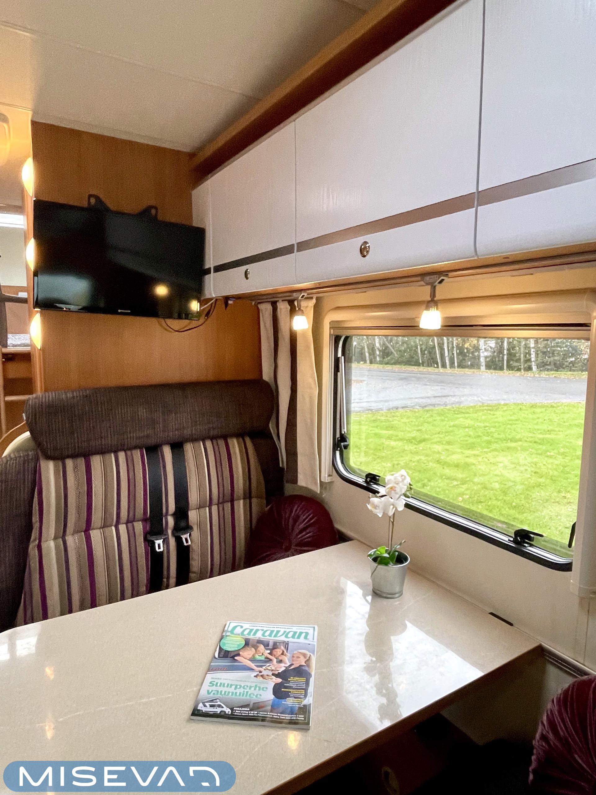 Kahdet renkaat, Trumatic- ilmapuhalluslämmitys, Pyöräteline, Markiisi, Kerrossänky, Huoltokirja, ABS-jarrut, Airbag, Ajotietokone, Aurinkopaneeli, Jääkaappi, Keskuslukitus: Kaukosäätöinen, Käynnistyksenesto, Liesi, Lohkolämmitin, Luistonesto, Lämminvesiboileri, Mikroaaltouuni, Pakastelokero, Pesuallas, Radio, Sähkökäyttöiset ikkunat, Sähköpatruuna, Sähköpeilit, Sähkörappu, TV-antenni tai lautasantenni, Turbo, Vakionopeudensäädin, Vetokoukku, Ilmastointi: Manuaalinen, Kasetti WC, Kasettiverhot, Kattoluukku, televisio, Invertteri, Truma, kaasun ulosotto, Peruutuskamera, Asuinosan hyttysovi/verho, harmaavesisäiliön lämmitys, Polkupyöräteline, Lattialämmitys