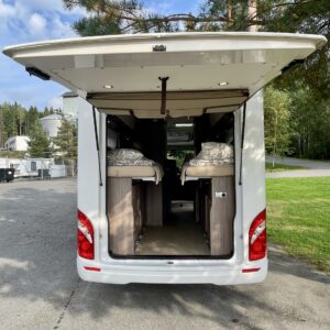 Erikoisvanteet, Erillisvuoteet, Vakionopeudensäädin, Suihku, Sähkökäyttöiset ikkunat, Sähköpeilit, Sähköpatruuna, Sähkörappu, Markiisi, Lämminvesiboileri, Keskuslukitus: Kaukosäätöinen, Trumatic, Kasetti WC, Kasettiverhot, Kattoluukku, Ilmastointi ajotilassa, Liesi, Pakastelokero, Jääkaappi, Eristetty harmaavesisäiliö
