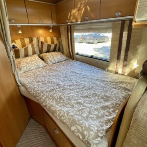 Kahdet renkaat, Tupla-akut, Pitkittäinen parivuode, Ohjaamoilmastointi- manuaalinen, Markiisi, Lattialämmitys- sähköinen, Trumatic, Asuinosan hyttysovi/verho, Vetokoukku, Vakionopeudensäädin, Sähkörappu, Sähköpeilit, Sähkökäyttöiset ikkunat, Sumuvalot, Suihku, Radio, Pyöräteline, Ohjaustehostin, Pakastelokero, Lohkolämmitin, Pesuallas, Kattoluukku, Jääkaappi, Ilmastointi: Manuaalinen, Ilmastointi ajotilassa, Kasetti WC, Kasettiverhot, liesituuletin, Lämminvesiboileri, Pysäköintikamera