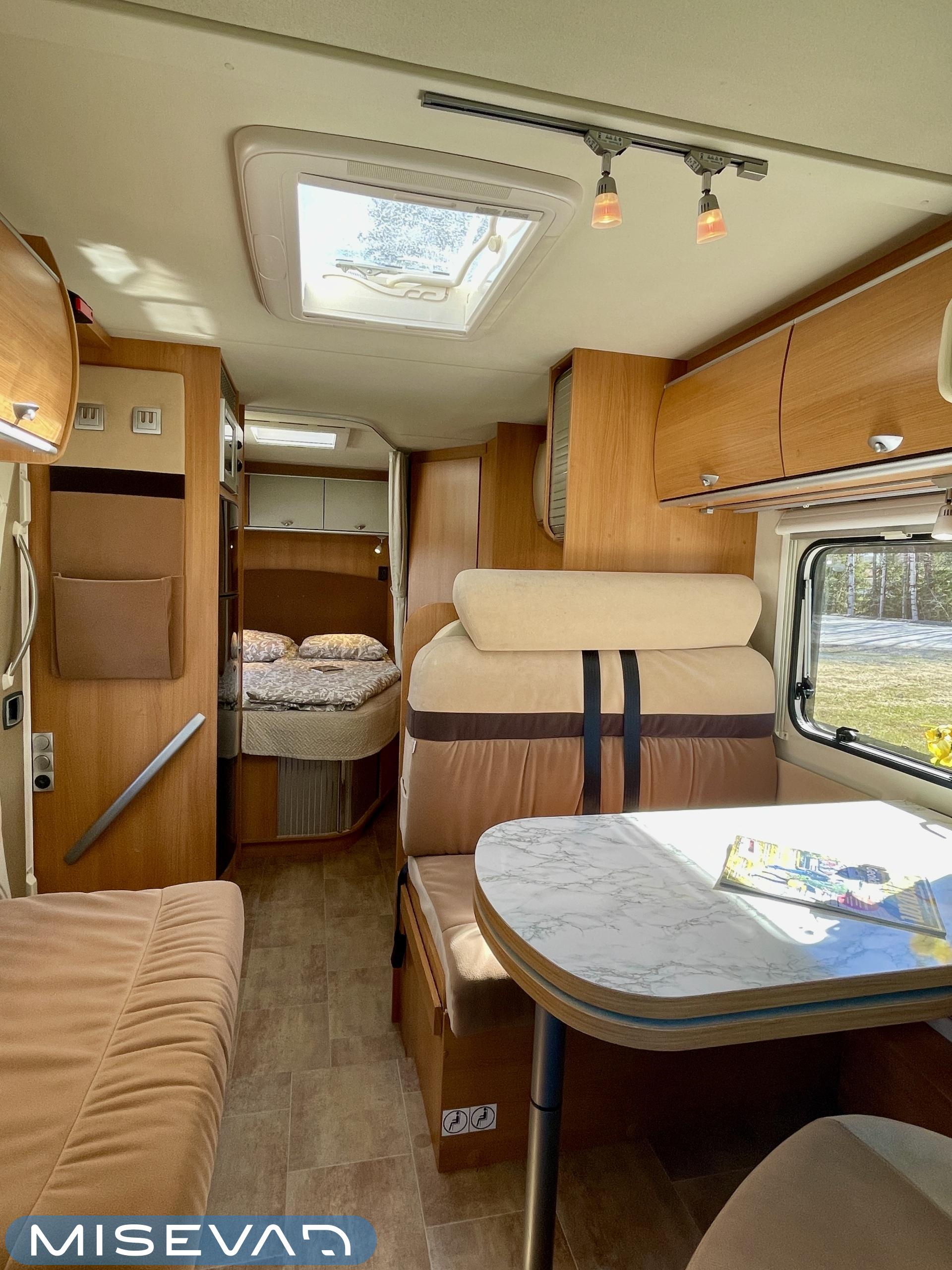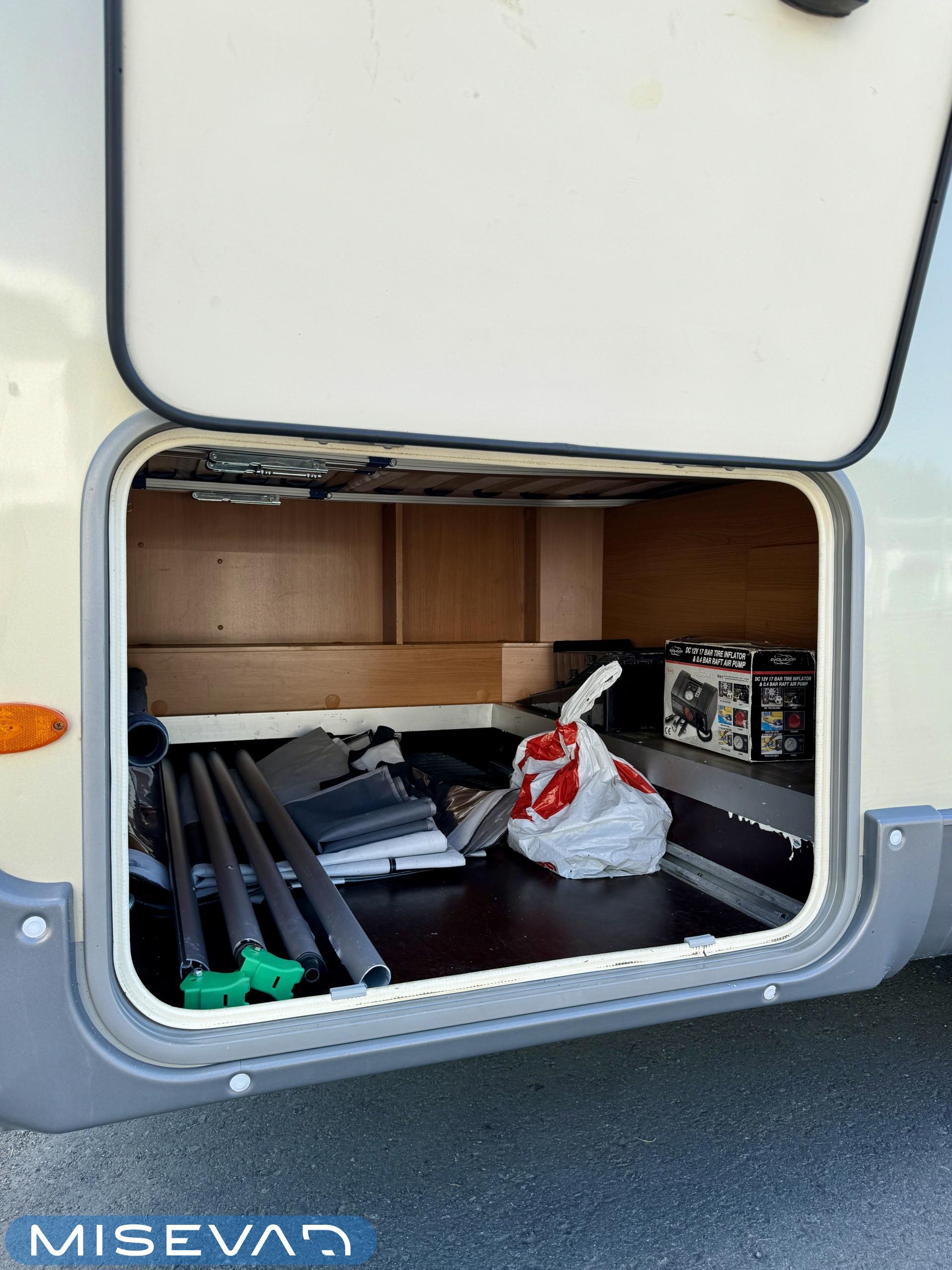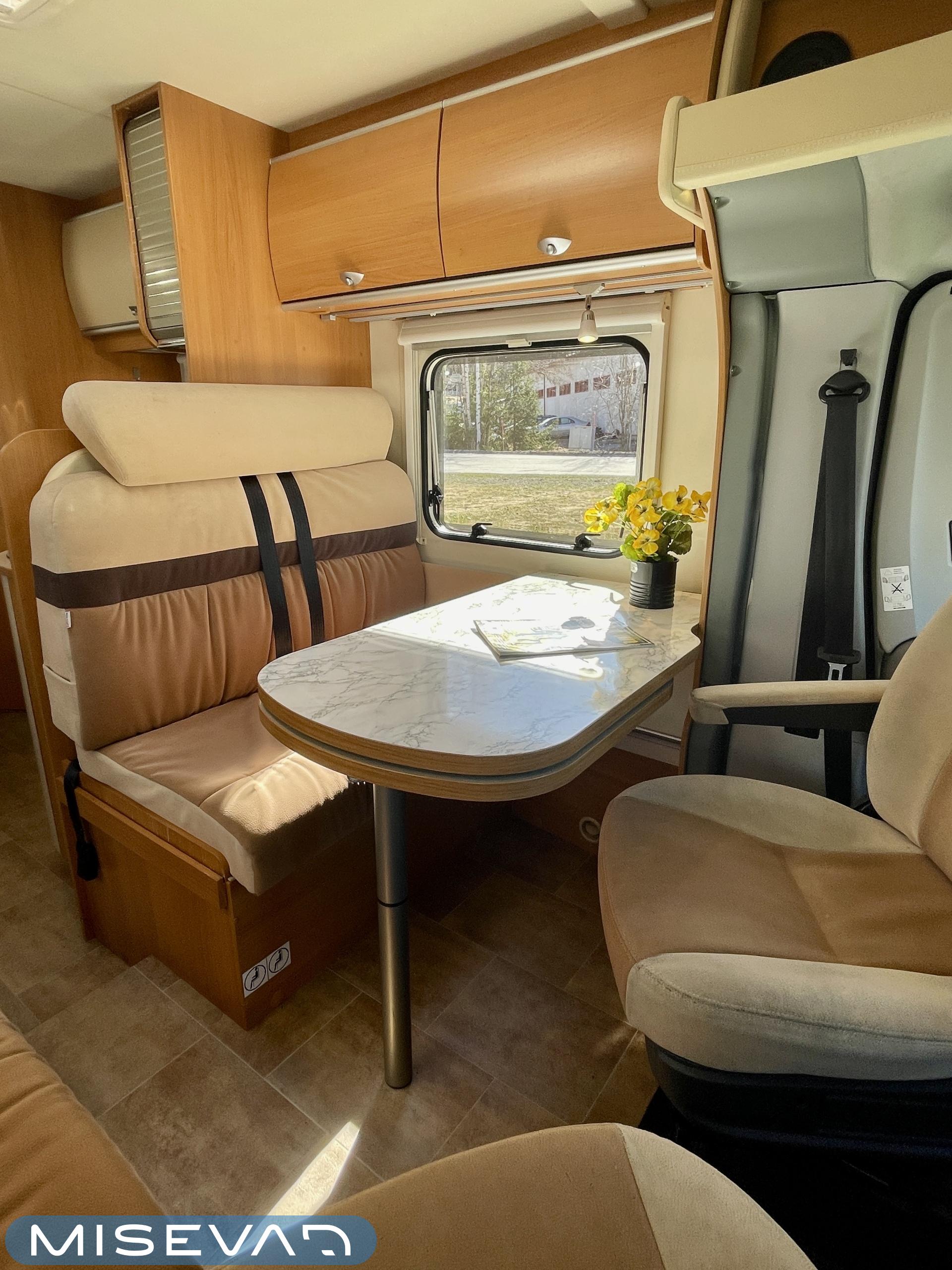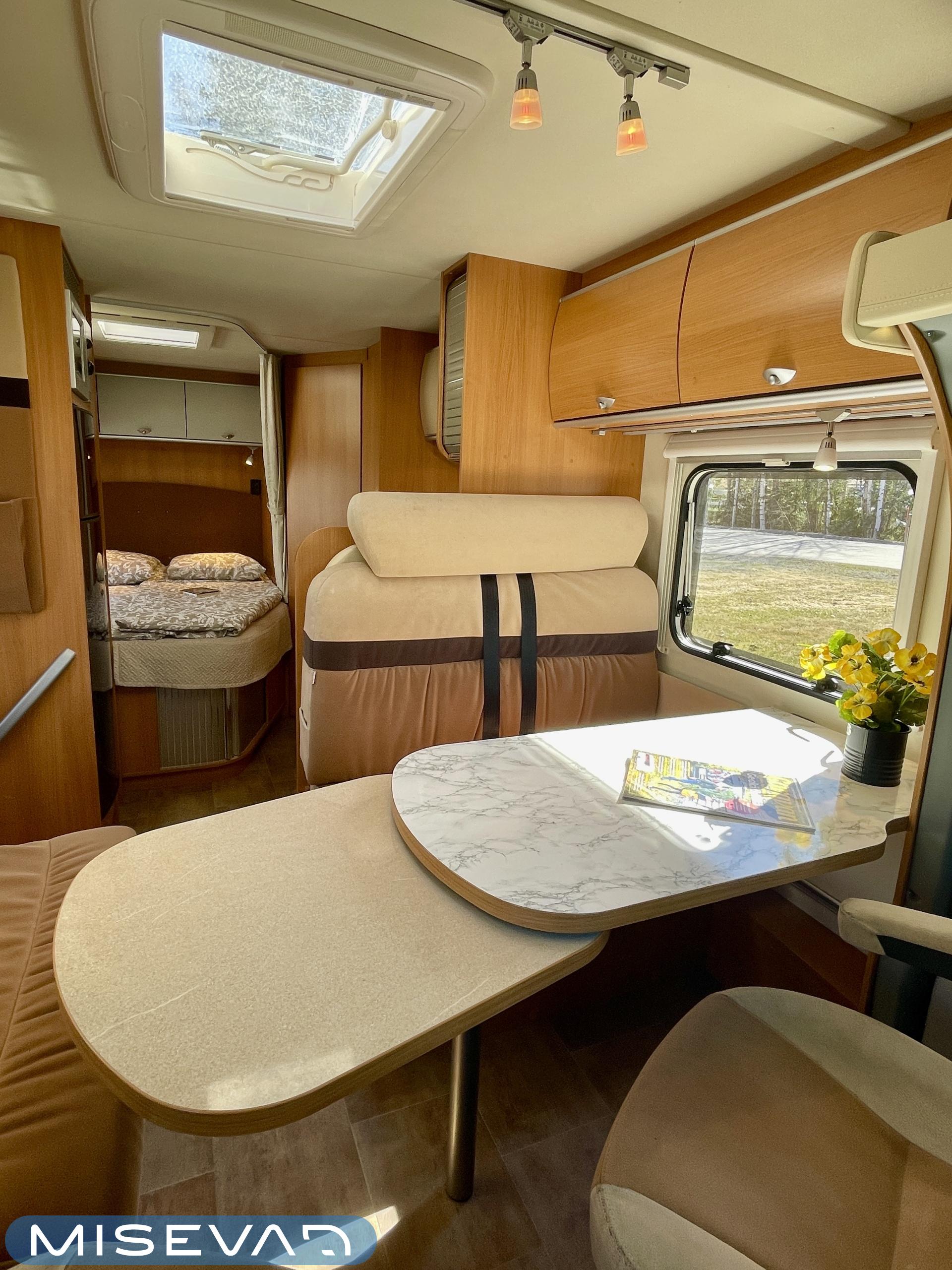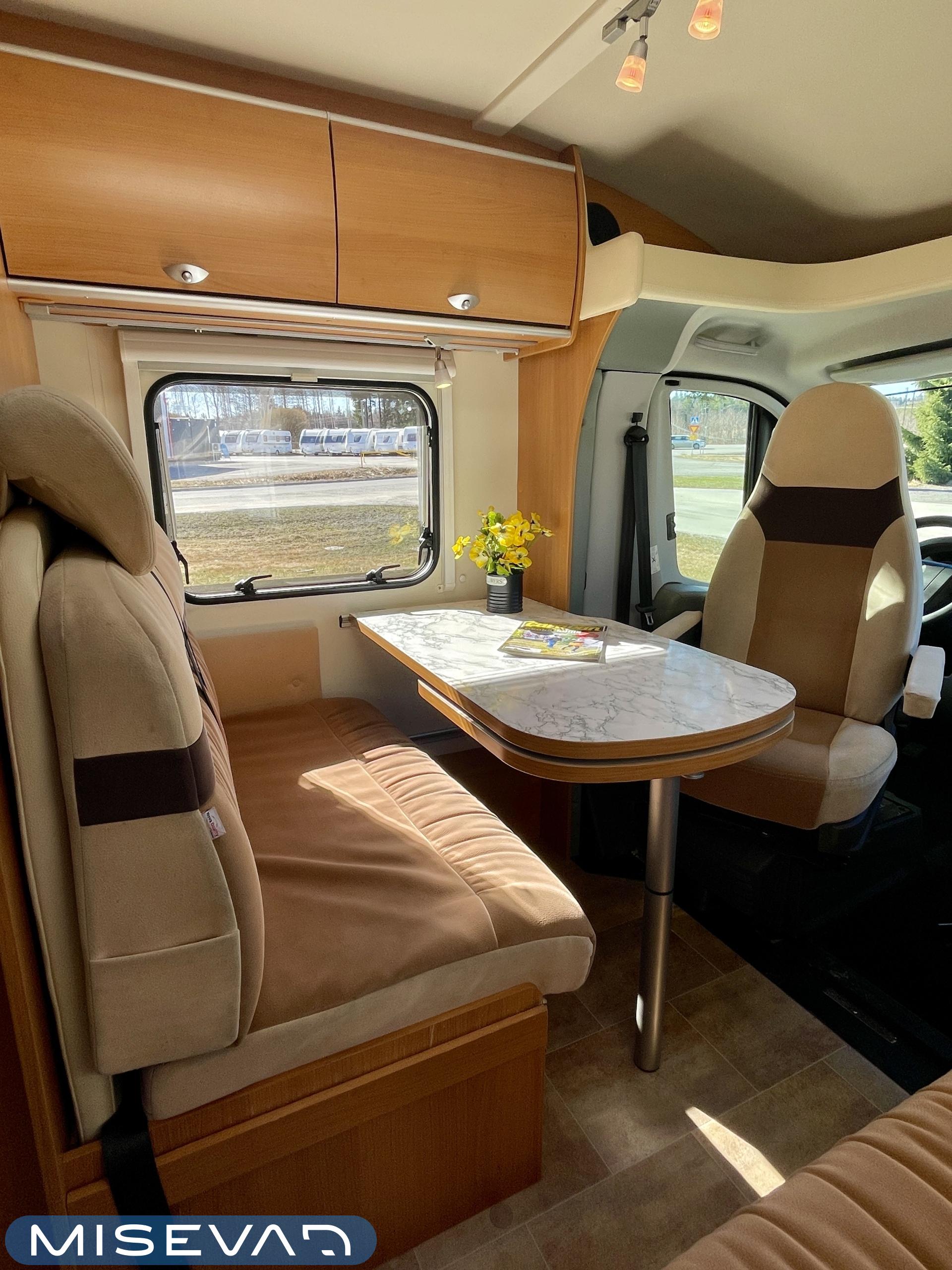 ABS-jarrut, Airbag, Ajotietokone, Aurinkopaneeli, CD-soitin, Jääkaappi, Ilmastointi: Manuaalinen, Ilmastointi ajotilassa, Kasetti WC, Kasettiverhot, Kattoluukku, Keskuslukitus: Kaukosäätöinen, Keskuslämmitys, Käynnistyksenesto, Lattialämmitys, Liesi, Pesuallas, Pakastelokero, Ohjaustehostin, Markiisi, Polttoainekäyttöinen lisälämmitin, Pysäköintikamera, Radio, Suihku, Sähkökäyttöiset ikkunat, Sähköpatruuna, Vakionopeudensäädin, Turbo, Trumatic, Sähkörappu
