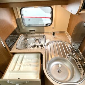 Truma, ABS-jarrut, Airbag, CD-soitin, Eristetty harmaavesisäiliö, Jääkaappi, Kaasu-uuni, Kasetti WC, Kasettiverhot, Kattoluukku, Lattialämmitys, Liesi, Lämminvesiboileri, Ohjaustehostin, Pakastelokero, Parivuode, Penkinlämmittimet, Pesuallas, Suihku, Sähkökäyttöiset ikkunat, Sähköpatruuna, Sähköpeilit, Sähkörappu, TV-antenni tai lautasantenni, Turbo, Vakionopeudensäädin, Lattialämmitys (sähkö), Ilmastointi (ohjaamo), harmaavesisäiliön lämmitys, ohjaamon kasettiverhot, jenkkijääkaappi, kaasun ulosotto, televisio, Asuinosan hyttysovi/verho, Lohkolämmitin