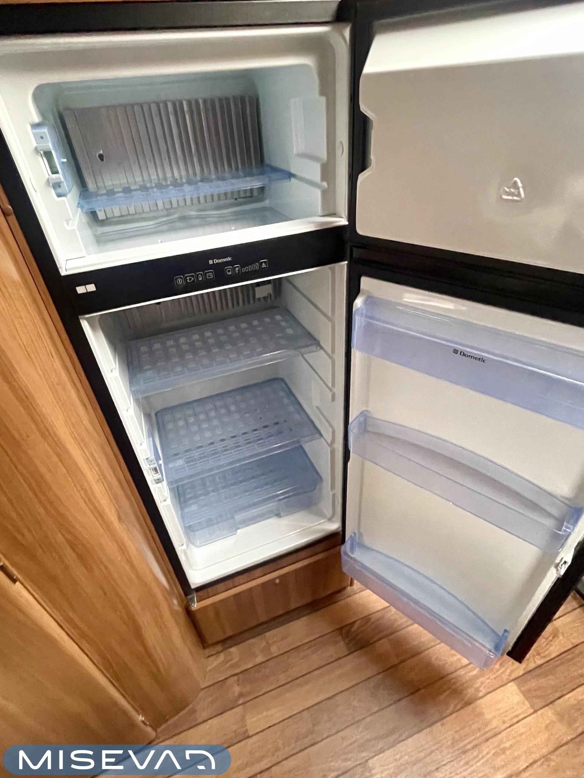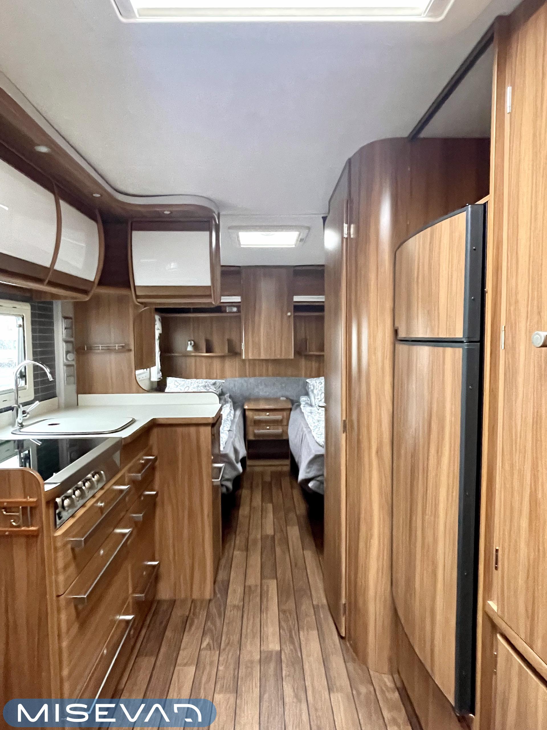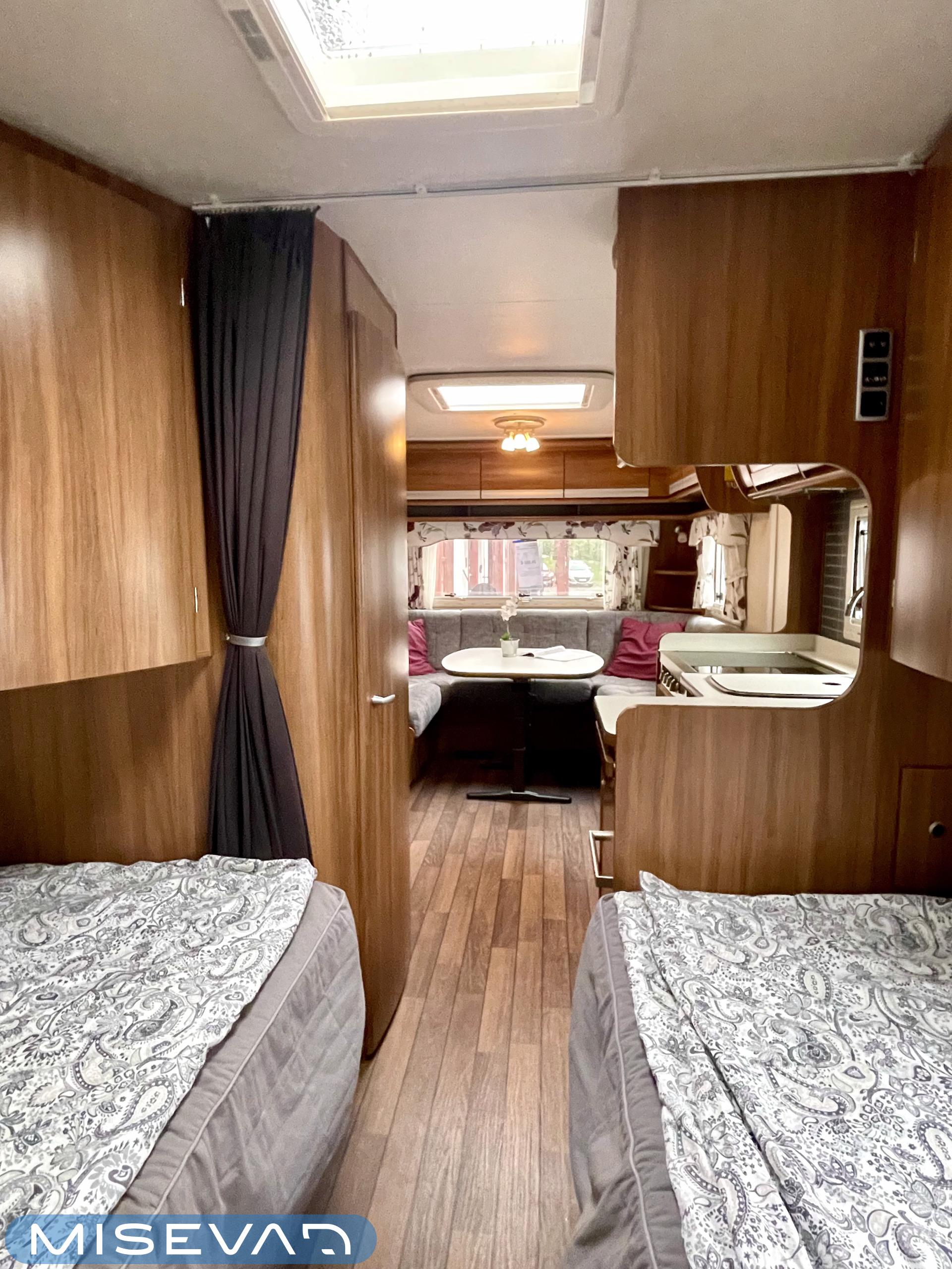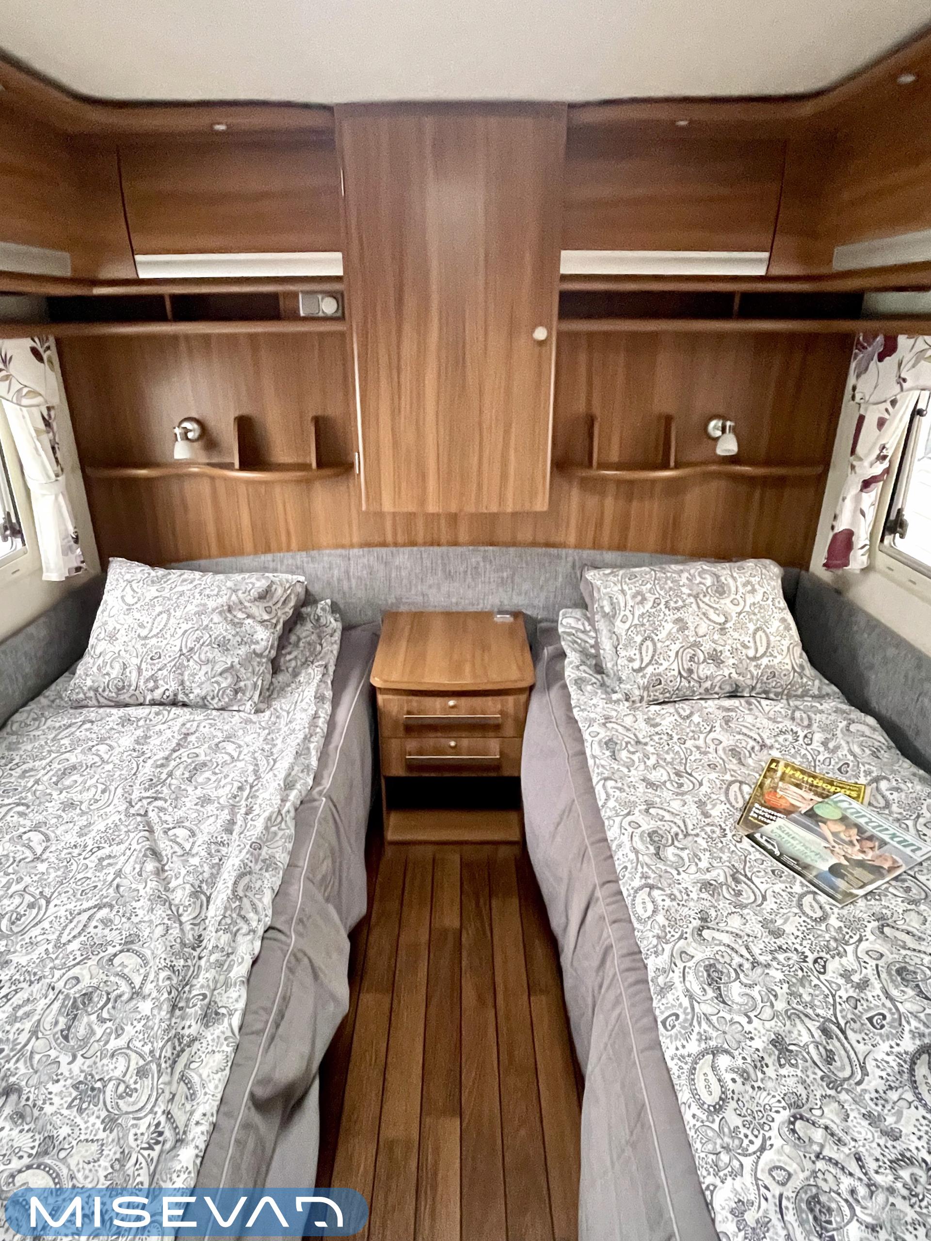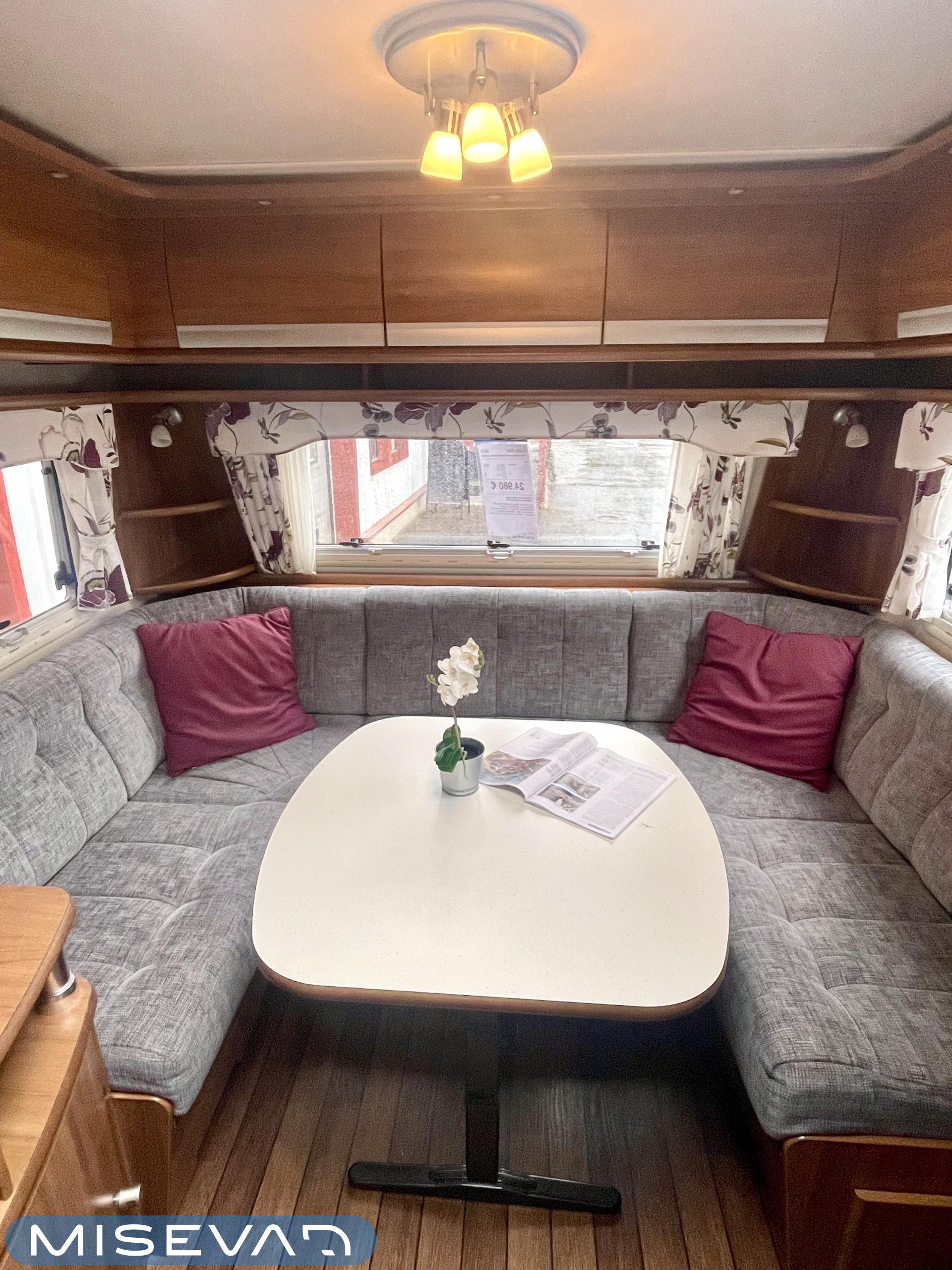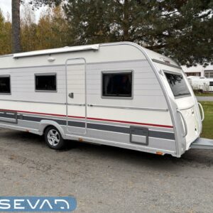 Alde, Erillisvuoteet, Jääkaappi, Kasetti WC, Kasettiverhot, Kattoluukku, Liesi, Lämminvesiboileri, Markiisi, Nestekiertolämmitys, Pakastelokero, Pesuallas, Radio, Suihku, Sähköpatruuna, Tukijalat, Lattialämmitys (nestekierto), Kesärenkaat, 1 x kevytmet.vanteet, kwh-mittari, sähkön ulosotto