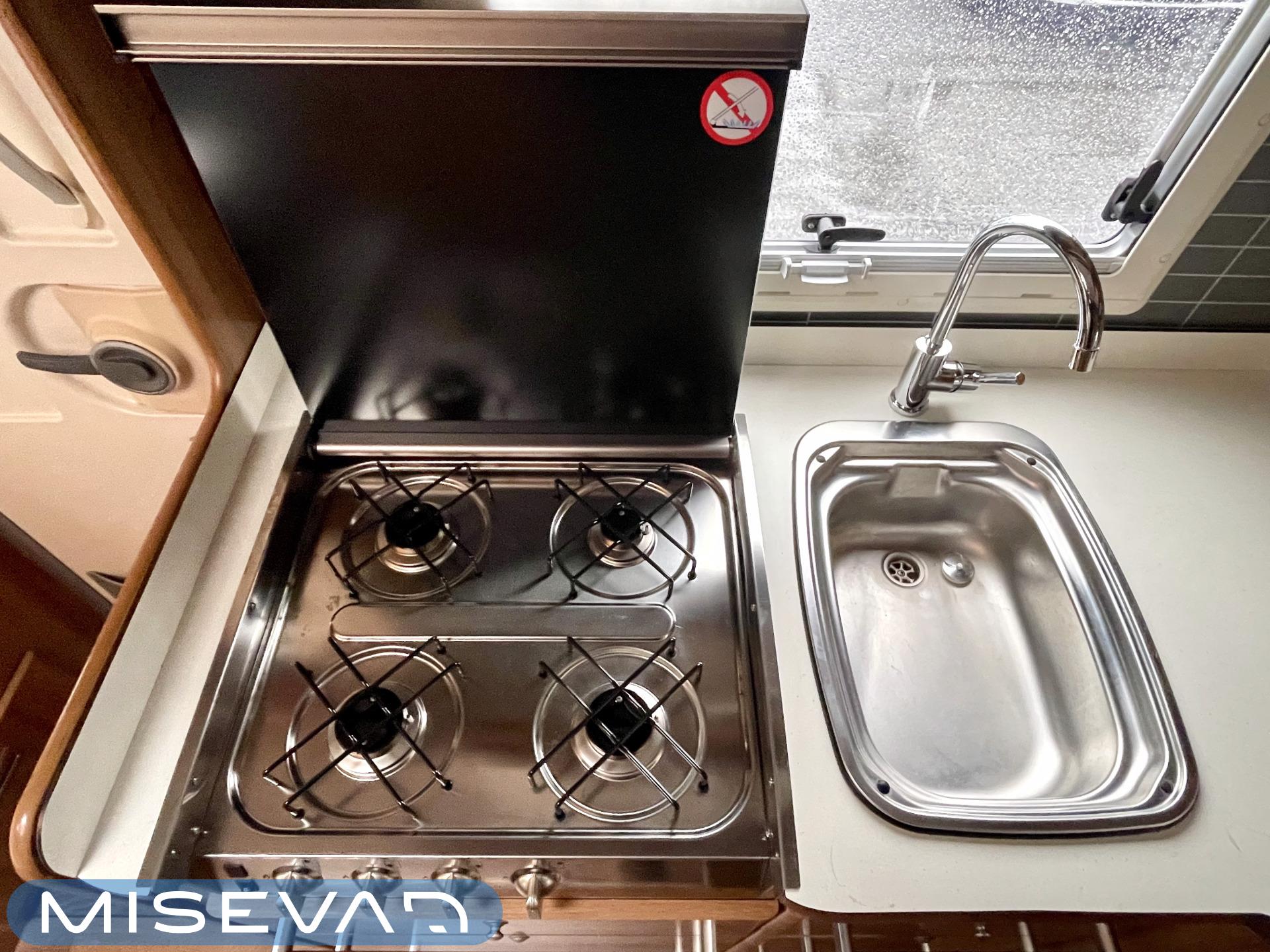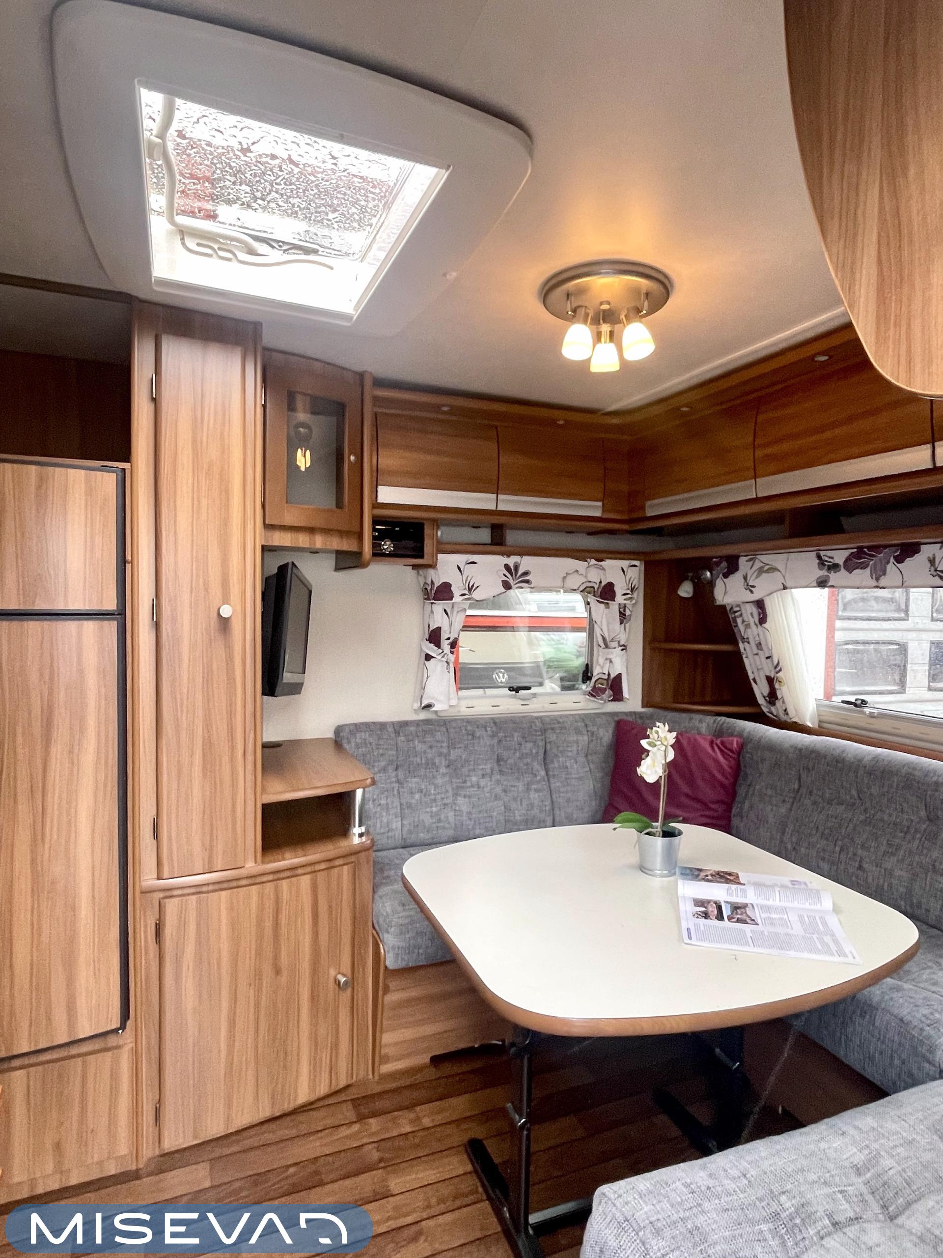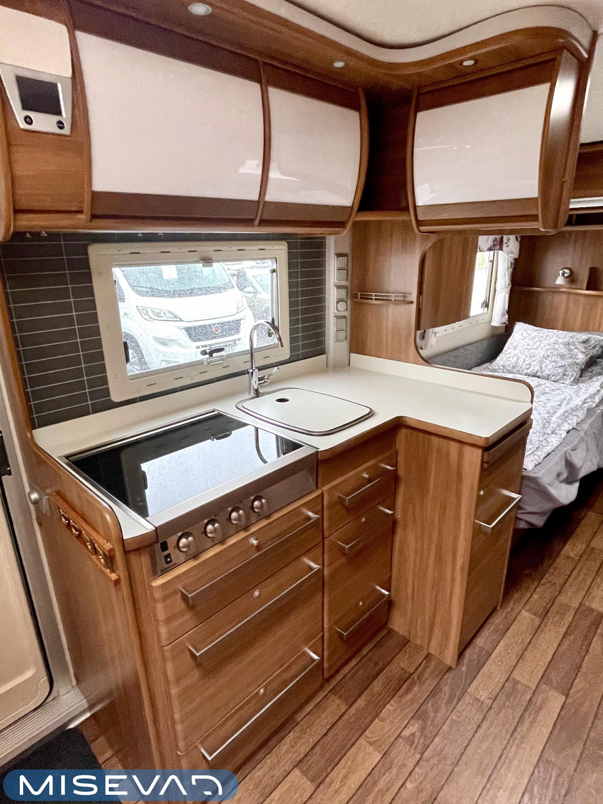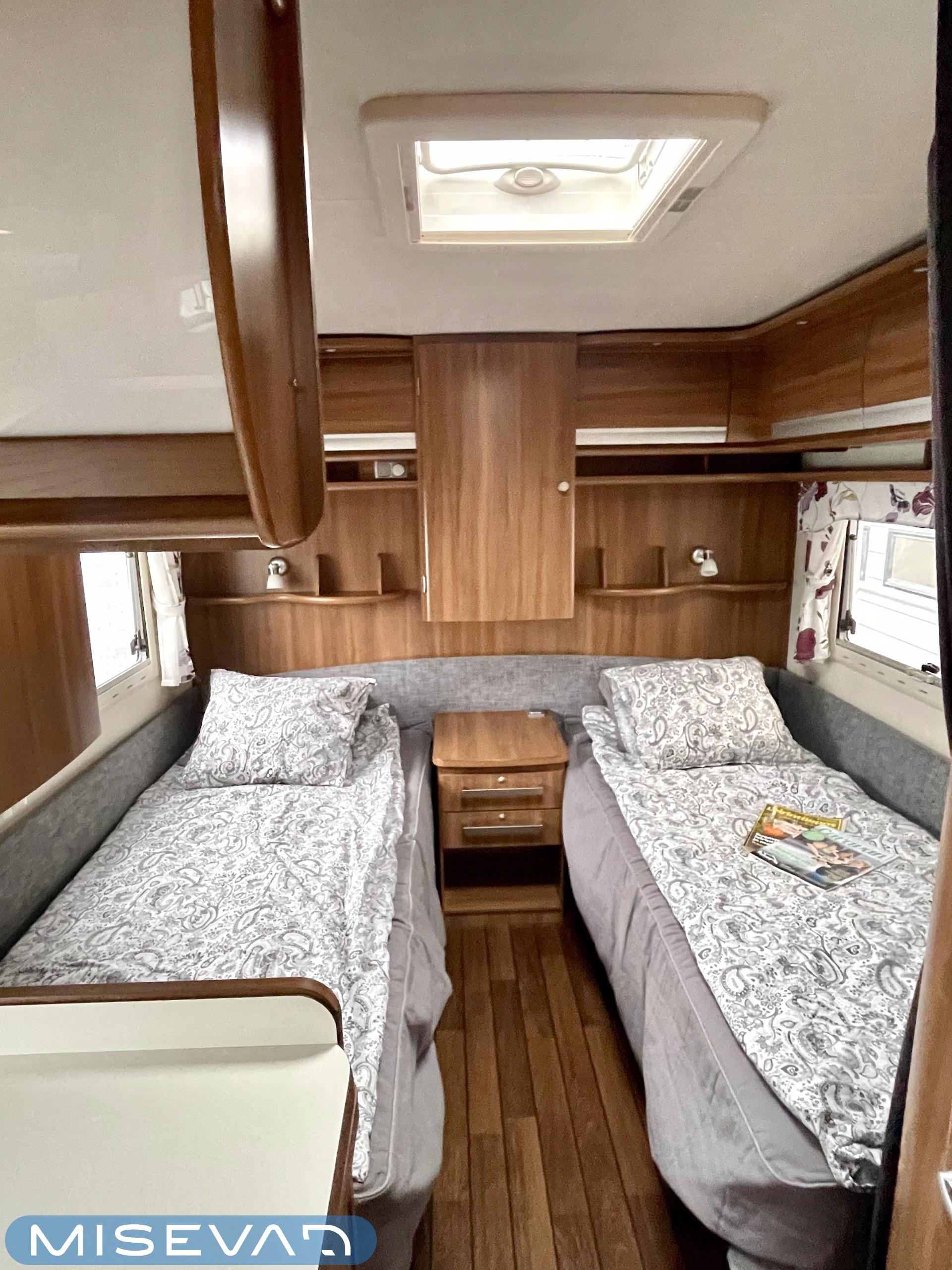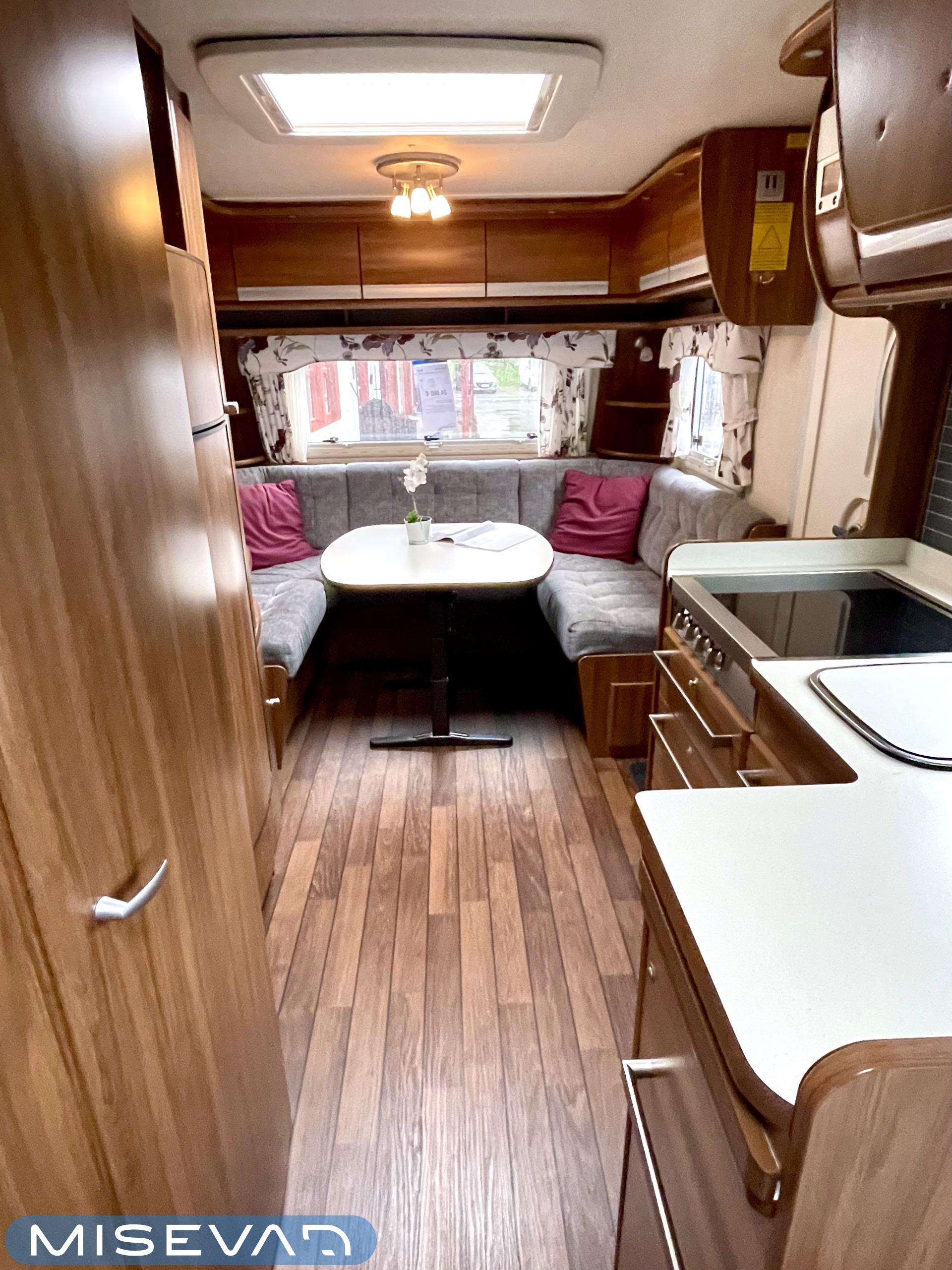 Alde, Erillisvuoteet, Jääkaappi, Kasetti WC, Kasettiverhot, Kattoluukku, Liesi, Lämminvesiboileri, Markiisi, Nestekiertolämmitys, Pakastelokero, Pesuallas, Radio, Suihku, Sähköpatruuna, Tukijalat, Lattialämmitys (nestekierto), Kesärenkaat, 1 x kevytmet.vanteet, kwh-mittari, sähkön ulosotto
