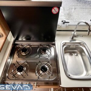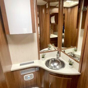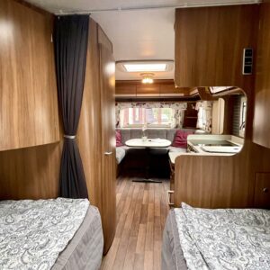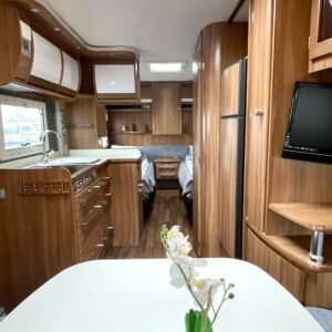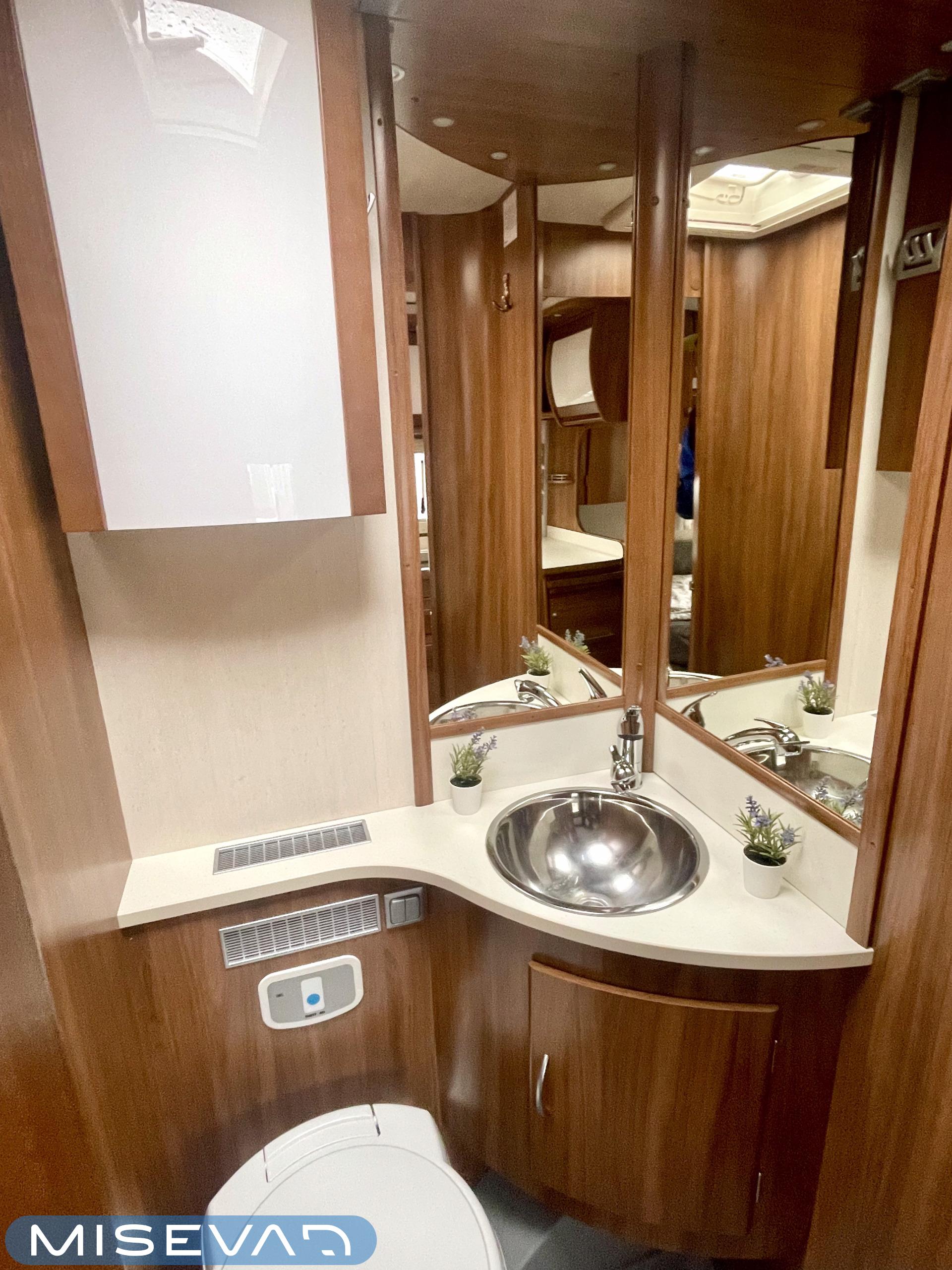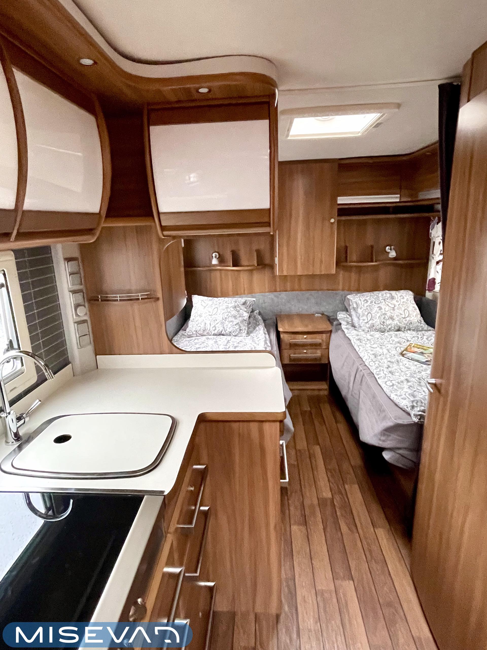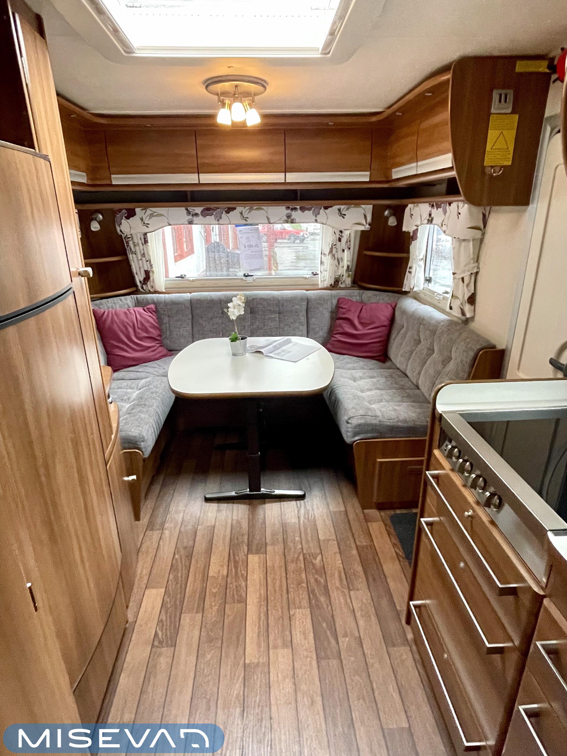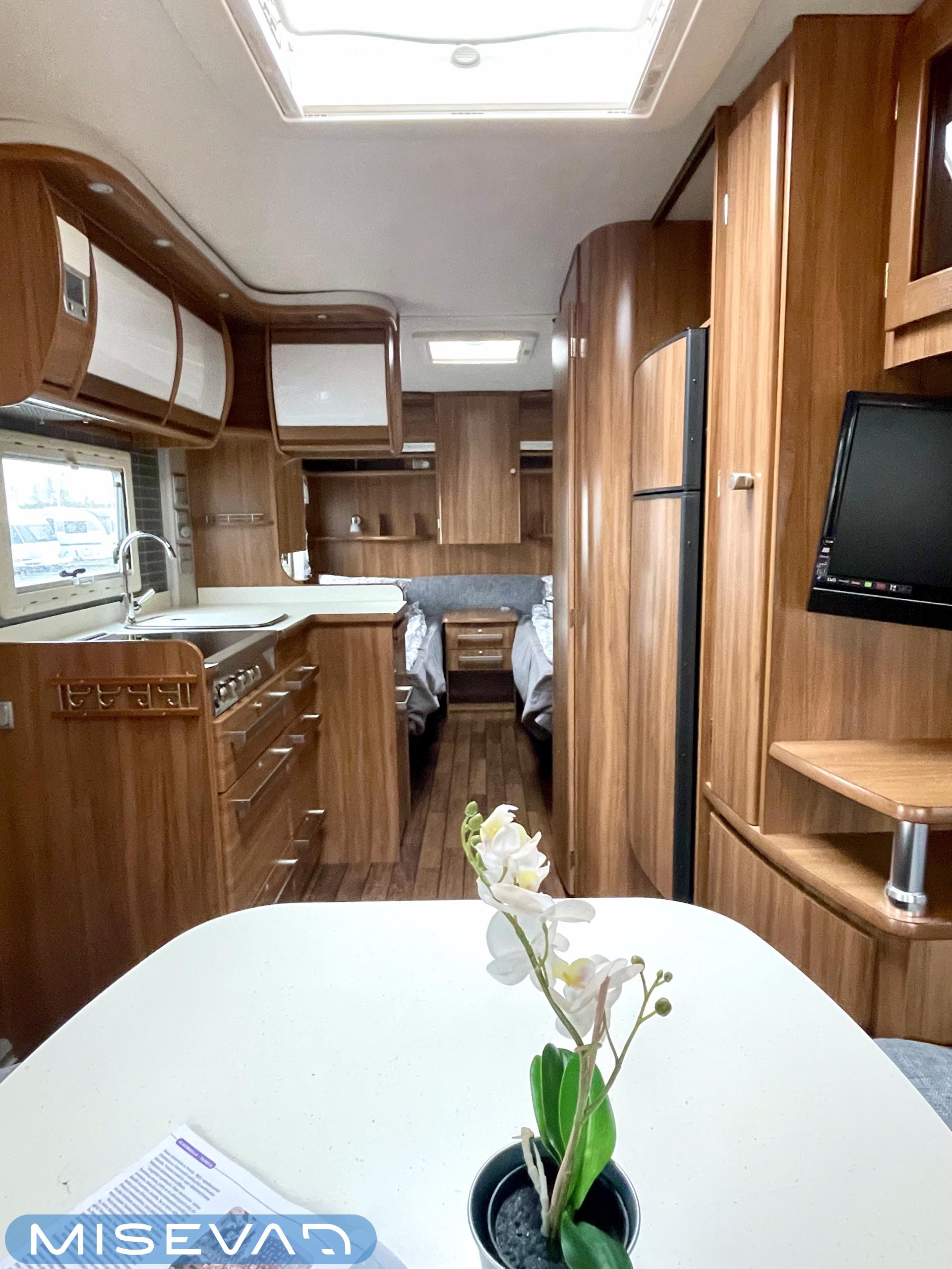 Alde, Erillisvuoteet, Jääkaappi, Kasetti WC, Kasettiverhot, Kattoluukku, Liesi, Lämminvesiboileri, Markiisi, Nestekiertolämmitys, Pakastelokero, Pesuallas, Radio, Suihku, Sähköpatruuna, Tukijalat, Lattialämmitys (nestekierto), Kesärenkaat, 1 x kevytmet.vanteet, kwh-mittari, sähkön ulosotto