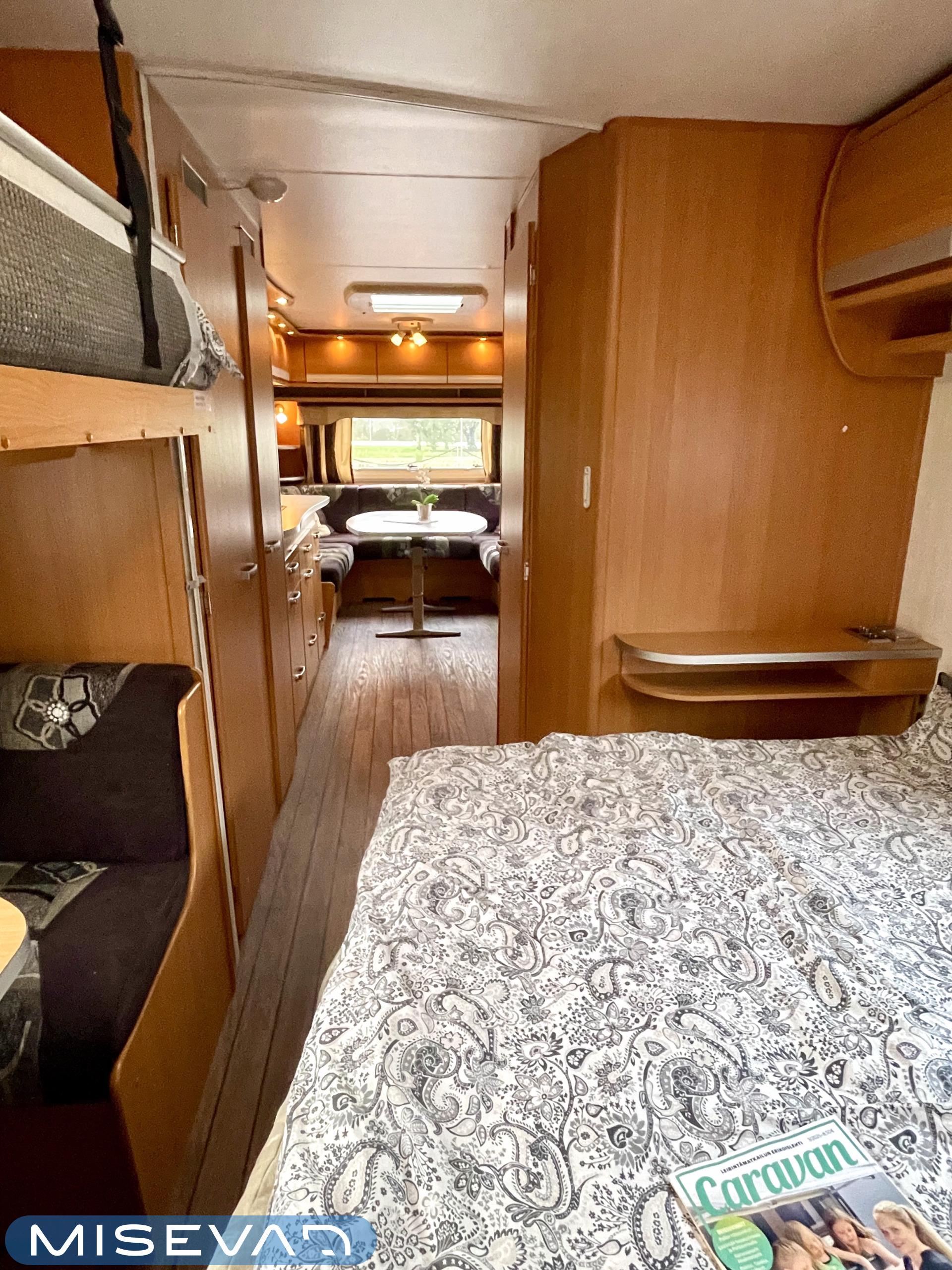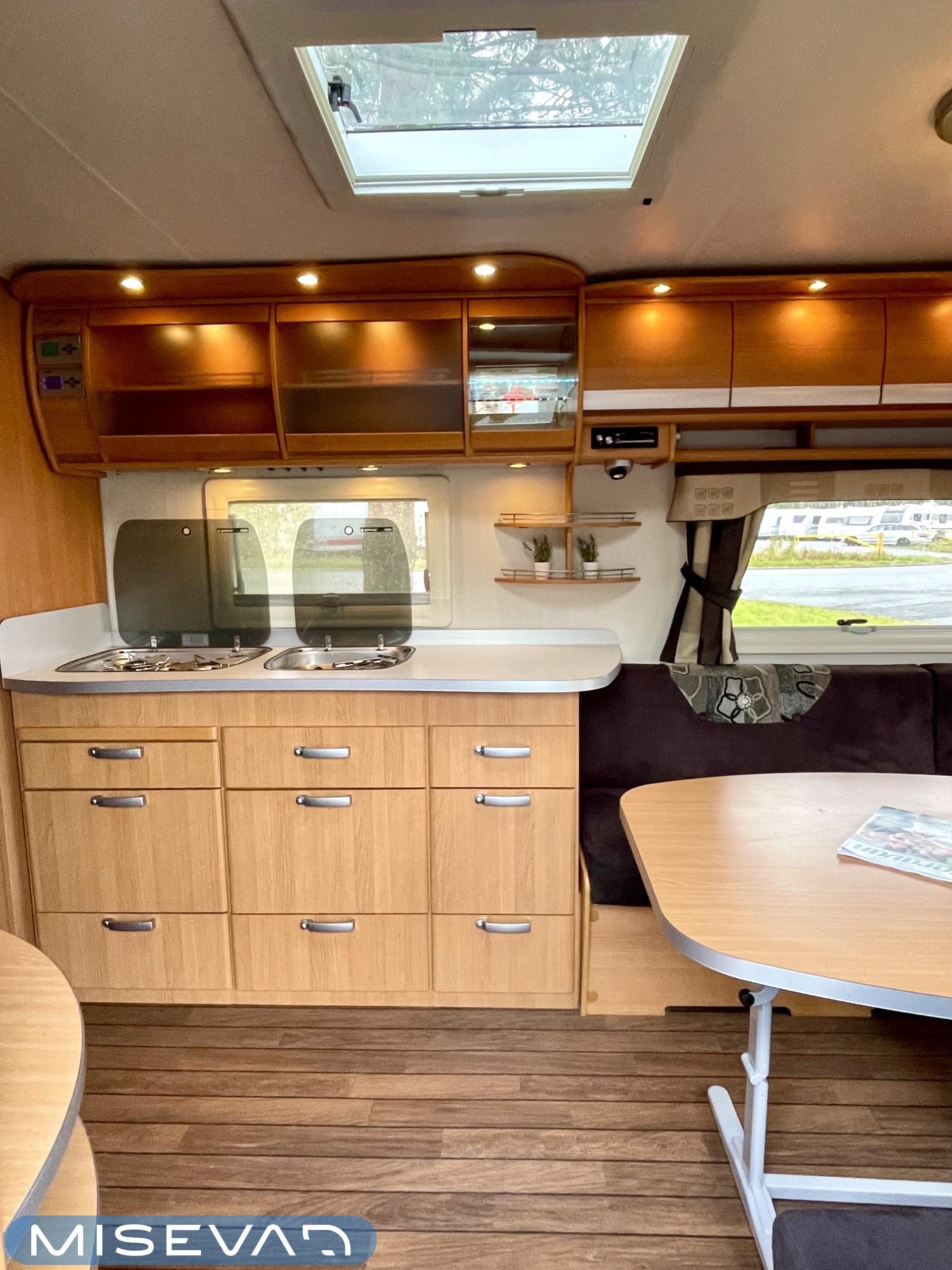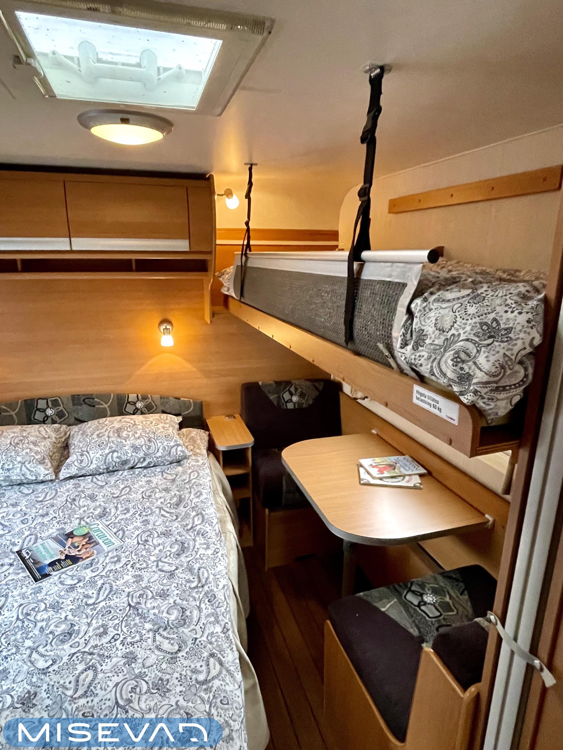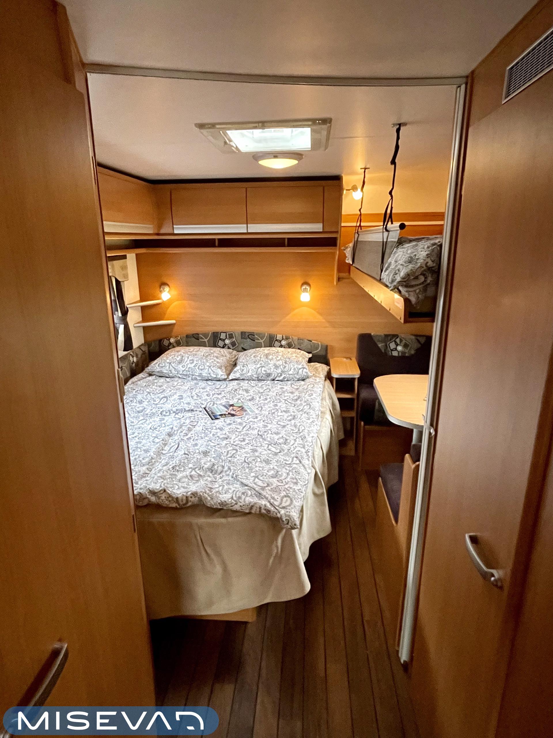 Alde, Nestekiertolämmitys, Lattialämmitys, Pyöräteline, Eristetty harmaavesisäiliö, CD-soitin, Erikoisvanteet, Jääkaappi, Kasetti WC, Kasettiverhot, Kattoluukku, Kerrossänky, Lämminvesiboileri, Pakastelokero, Parivuode, Radio, Sähköpatruuna