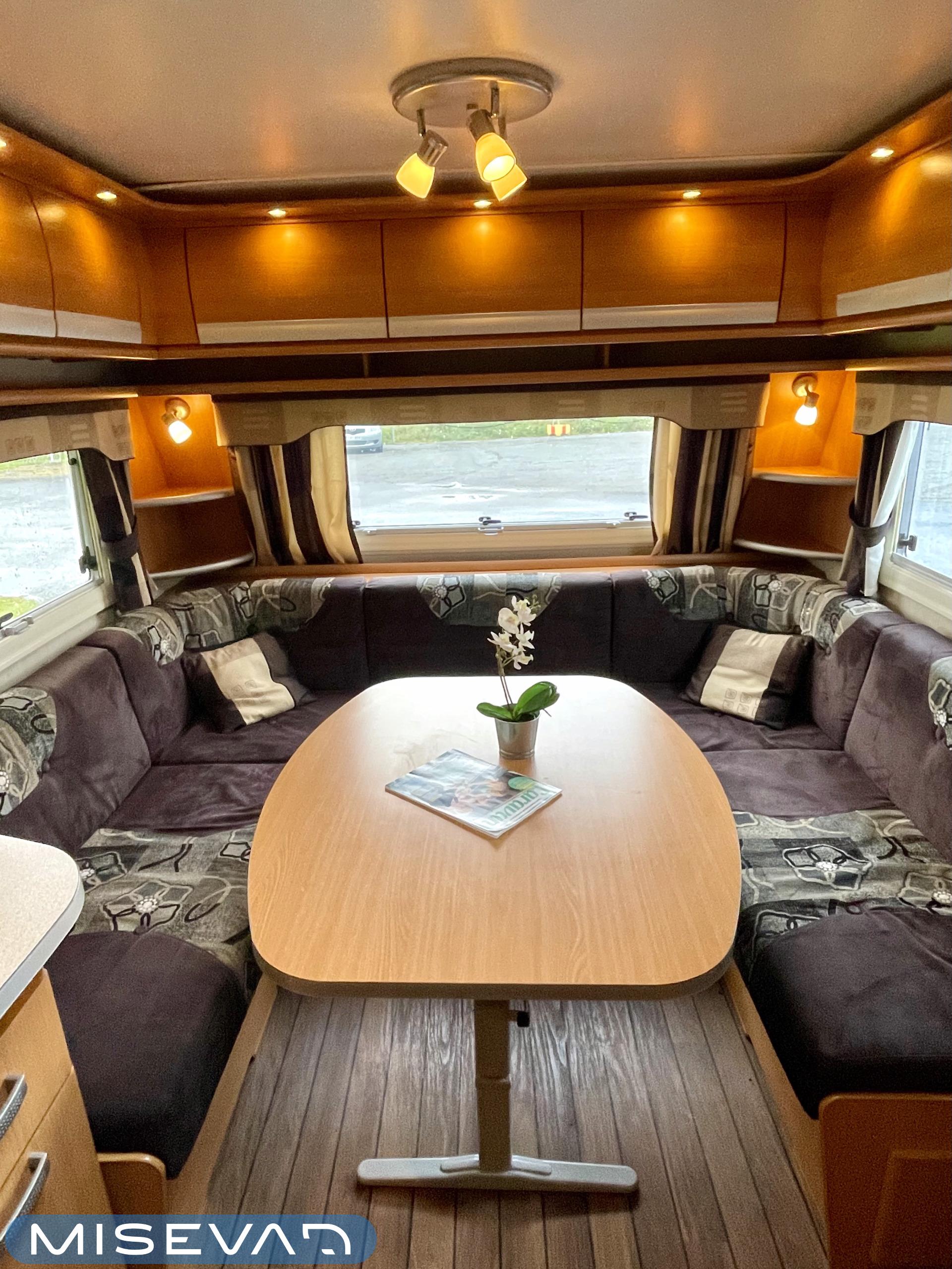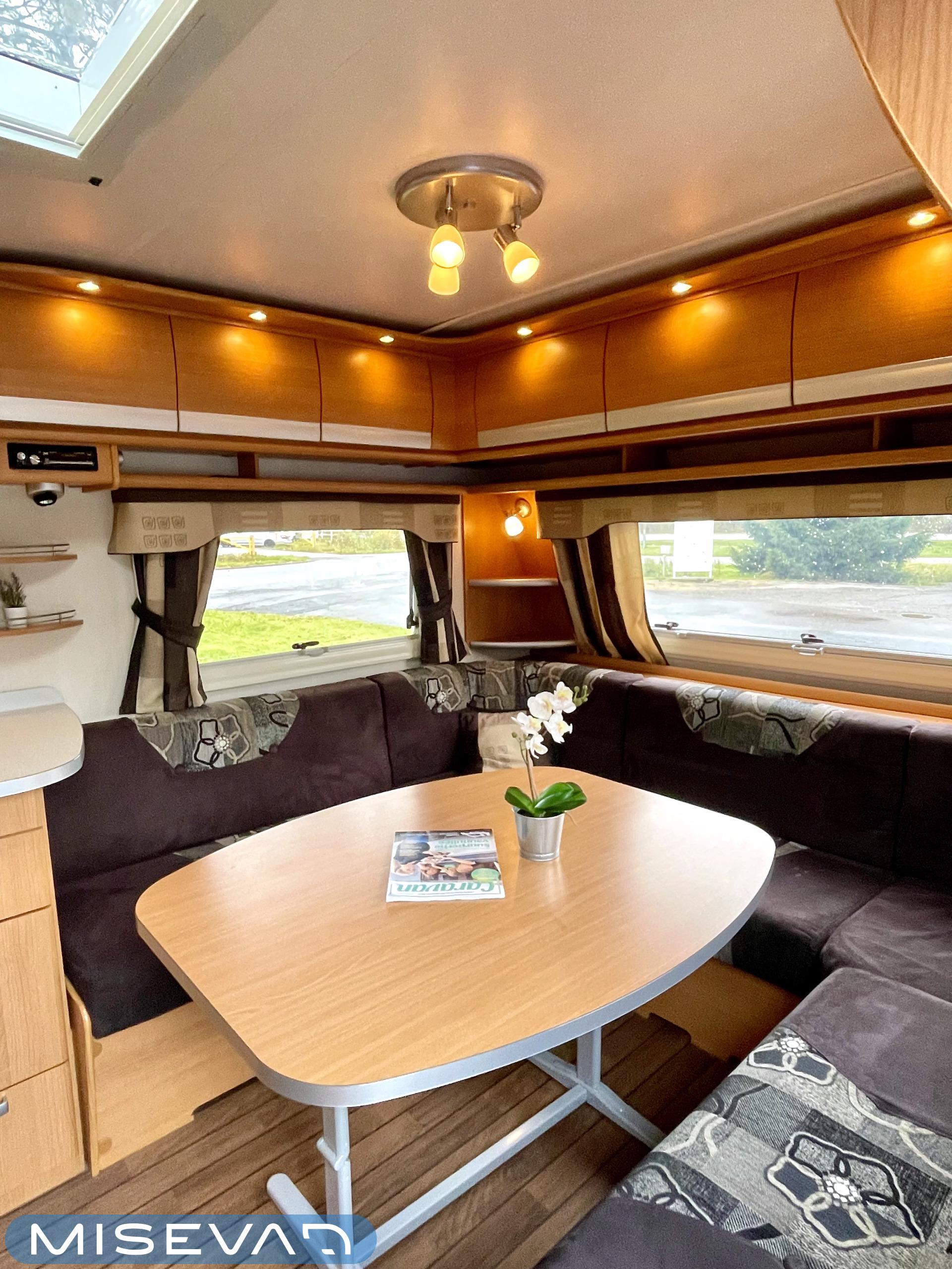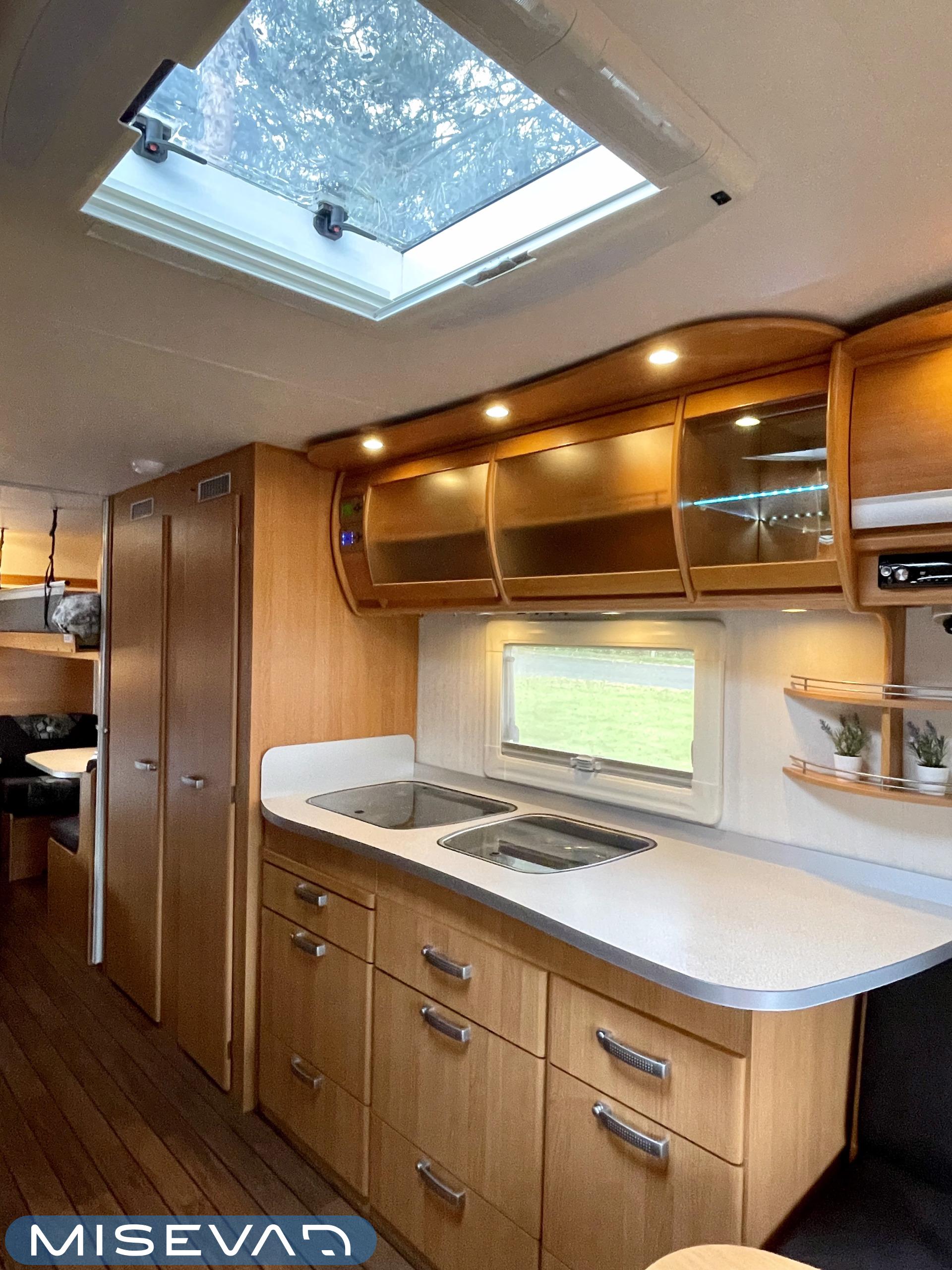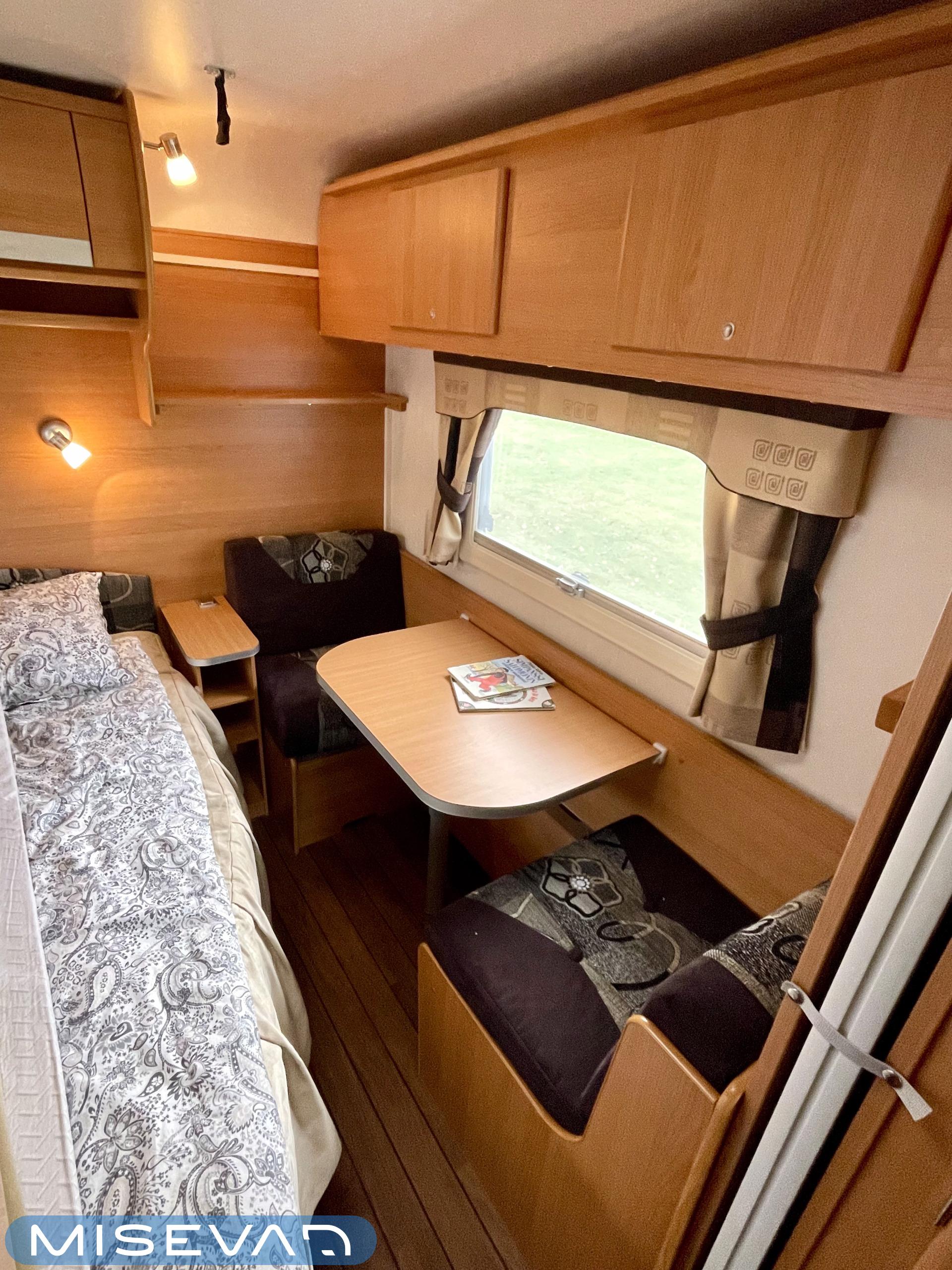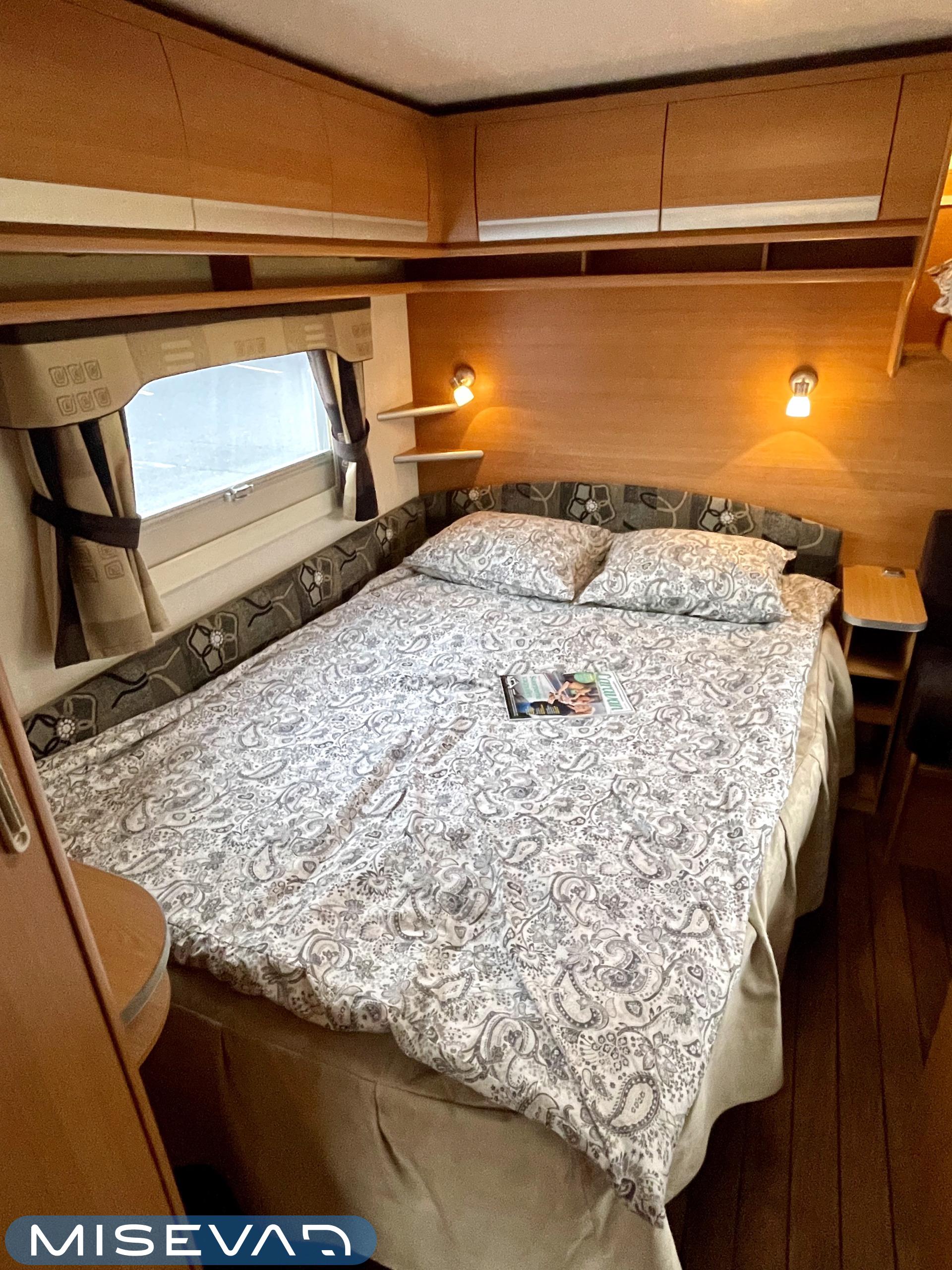 Alde, Nestekiertolämmitys, Lattialämmitys, Pyöräteline, Eristetty harmaavesisäiliö, CD-soitin, Erikoisvanteet, Jääkaappi, Kasetti WC, Kasettiverhot, Kattoluukku, Kerrossänky, Lämminvesiboileri, Pakastelokero, Parivuode, Radio, Sähköpatruuna
