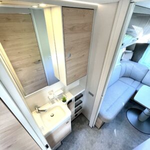 Alde, Sähköpatruuna, Tukijalat, Lämminvesiboileri, Kasetti WC, Liesi, Jääkaappi, Parivuode, Nestekiertolämmitys, Pakastelokero, Kerrossänky, Lattialämmitys, Kattoluukku, Kattokaiteet/tikkaat, Kasettiverhot, Suihku, Erikoisvanteet, Eristetty harmaavesisäiliö