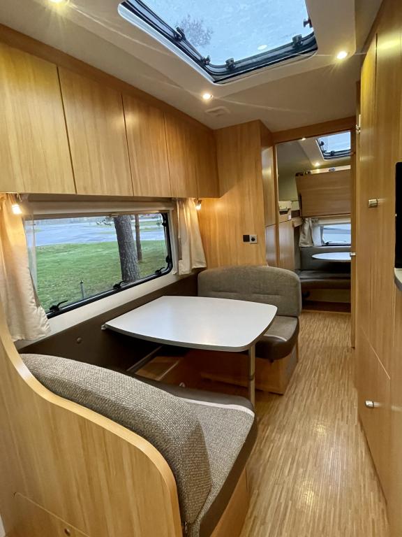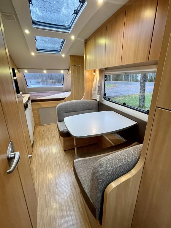 Alde,Ilmastointi man.,Jääkaappi,Kasetti WC,Kasettiverhot,Kattoluukku,Keskuslämmitys,Lattialämmitys,Liesi,Lämminvesiboileri,Nestekiertolämmitys,Parivuode,Pesuallas,Suihku,Tukijalat,TV-antenni/lautasantenni