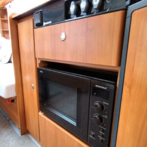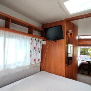 Alde, Jääkaappi, Kasetti WC, Kasettiverhot, Kattoluukku, Lattialämmitys, Liesi, Nestekiertolämmitys, Pakastelokero, Parivuode, Pesuallas, Tukijalat, Sähköpatruuna, Mikroaaltouuni