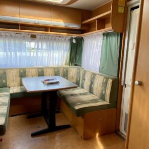 Alde, Aurinkopaneeli, Jääkaappi, Kaasu-uuni, Kasetti WC, Kasettiverhot, Kattoluukku, Liesi, Lämminvesiboileri, Markiisi, Nestekiertolämmitys, Pakastelokero, Pesuallas, Parivuode, Sisätilanpistoke, Suihku, Sähköpatruuna, TV-antenni tai lautasantenni, Tukijalat, Lattialämmitys (sähkö), Kesärenkaat, kwh-mittari, pullonvaihtaja, kaasun ulosotto