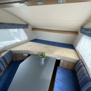 Jääkaappi, Kasetti WC, Liesi, Parivuode, Pesuallas, Takakeittiö, Trumatic, TV-antenni tai lautasantenni, Lattiamatot asunto-osassa, Erikoisvanteet, Tukijalat, Ceramic 240 V 1500 w sähkölämmitin