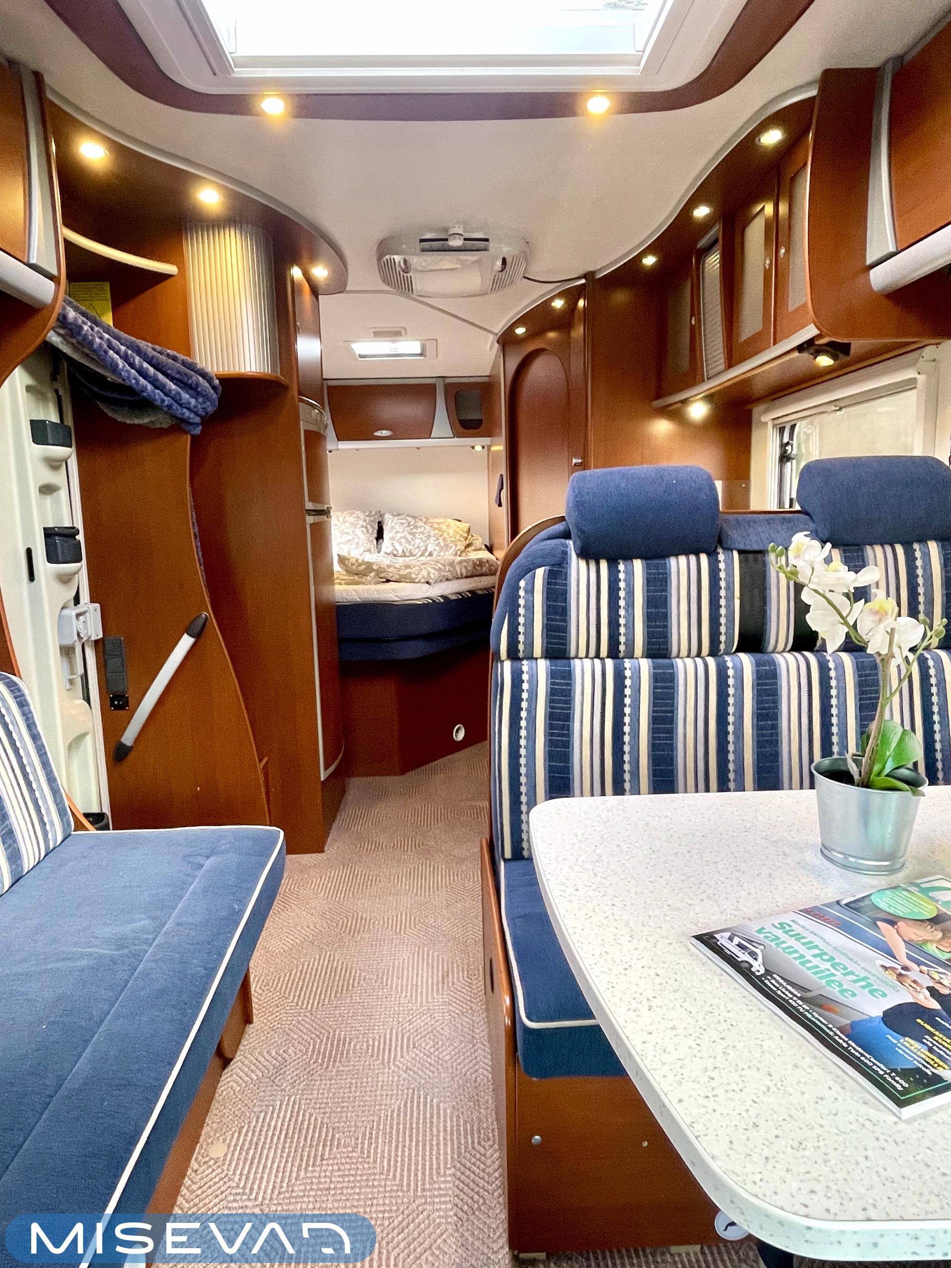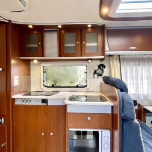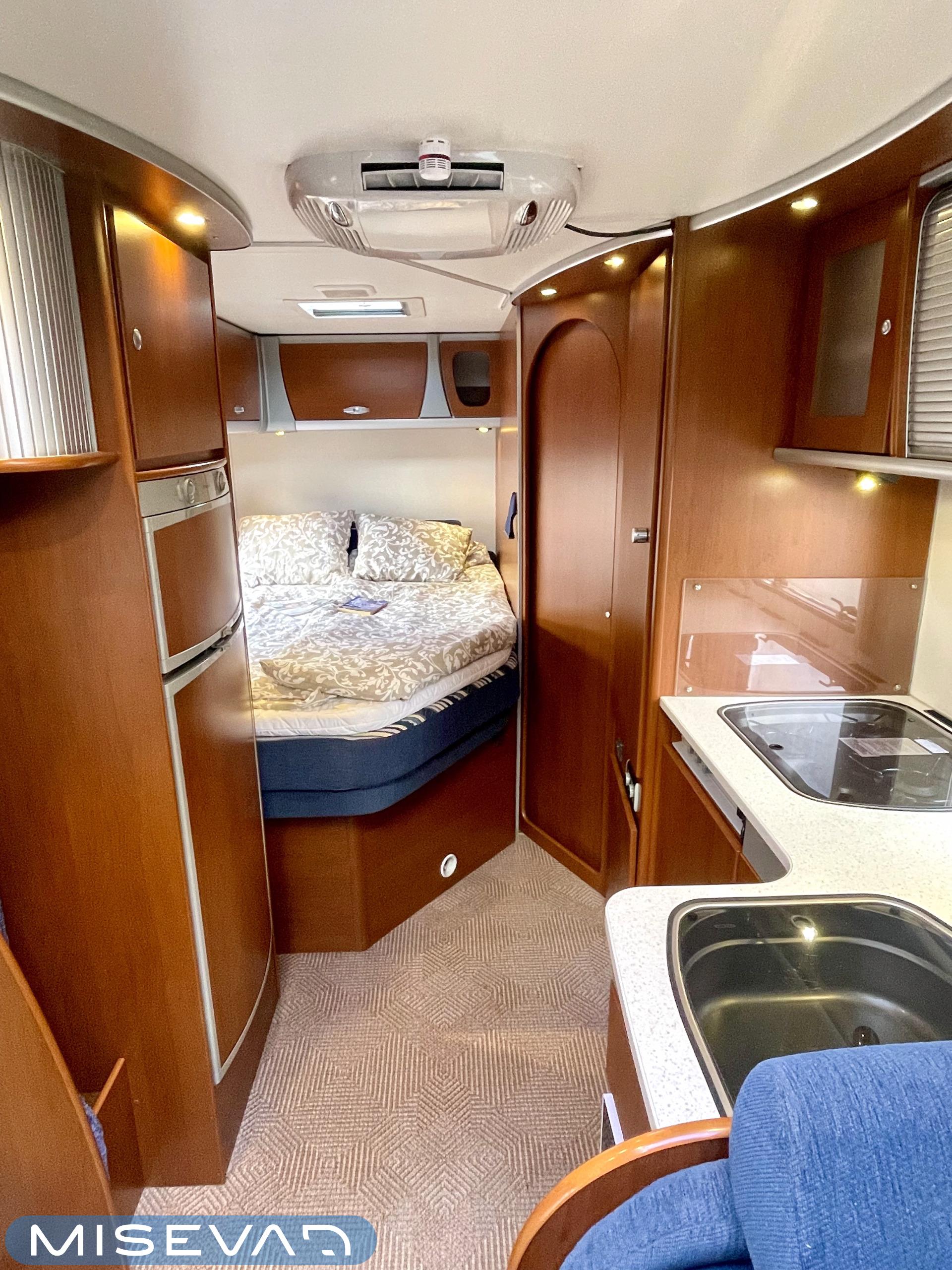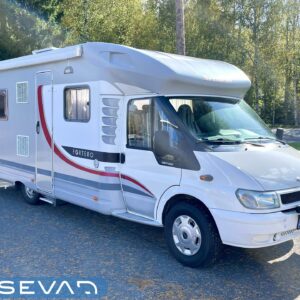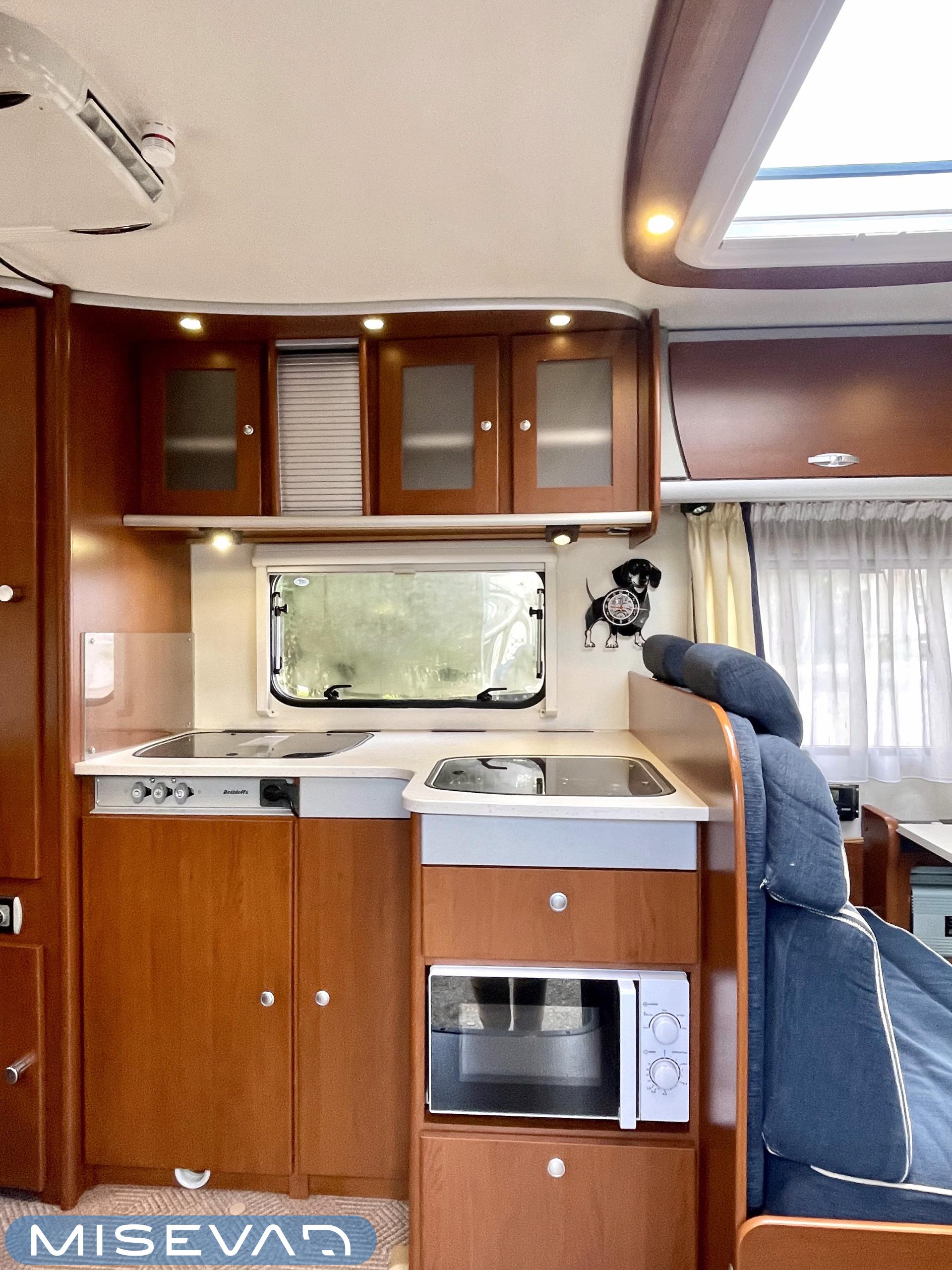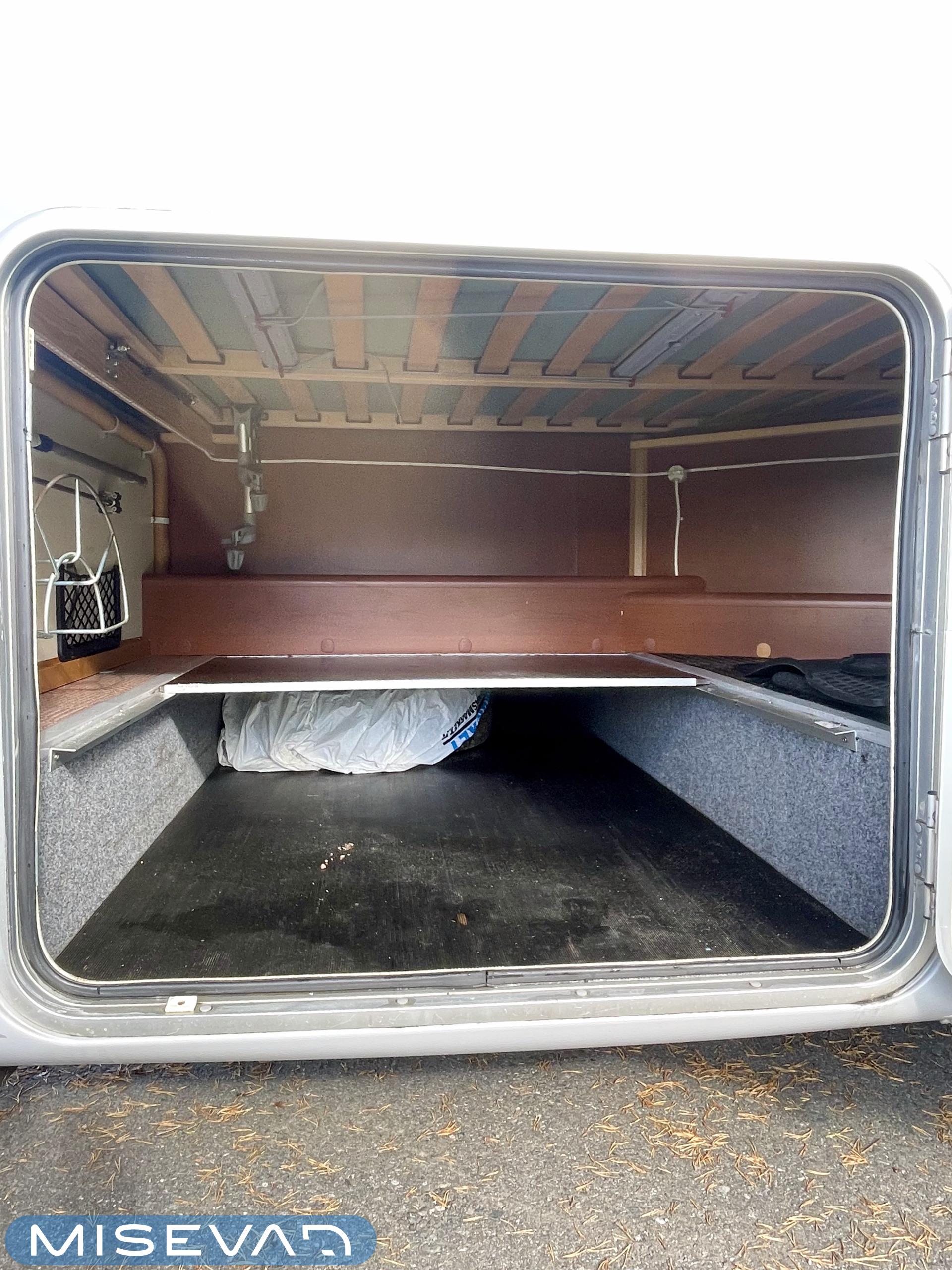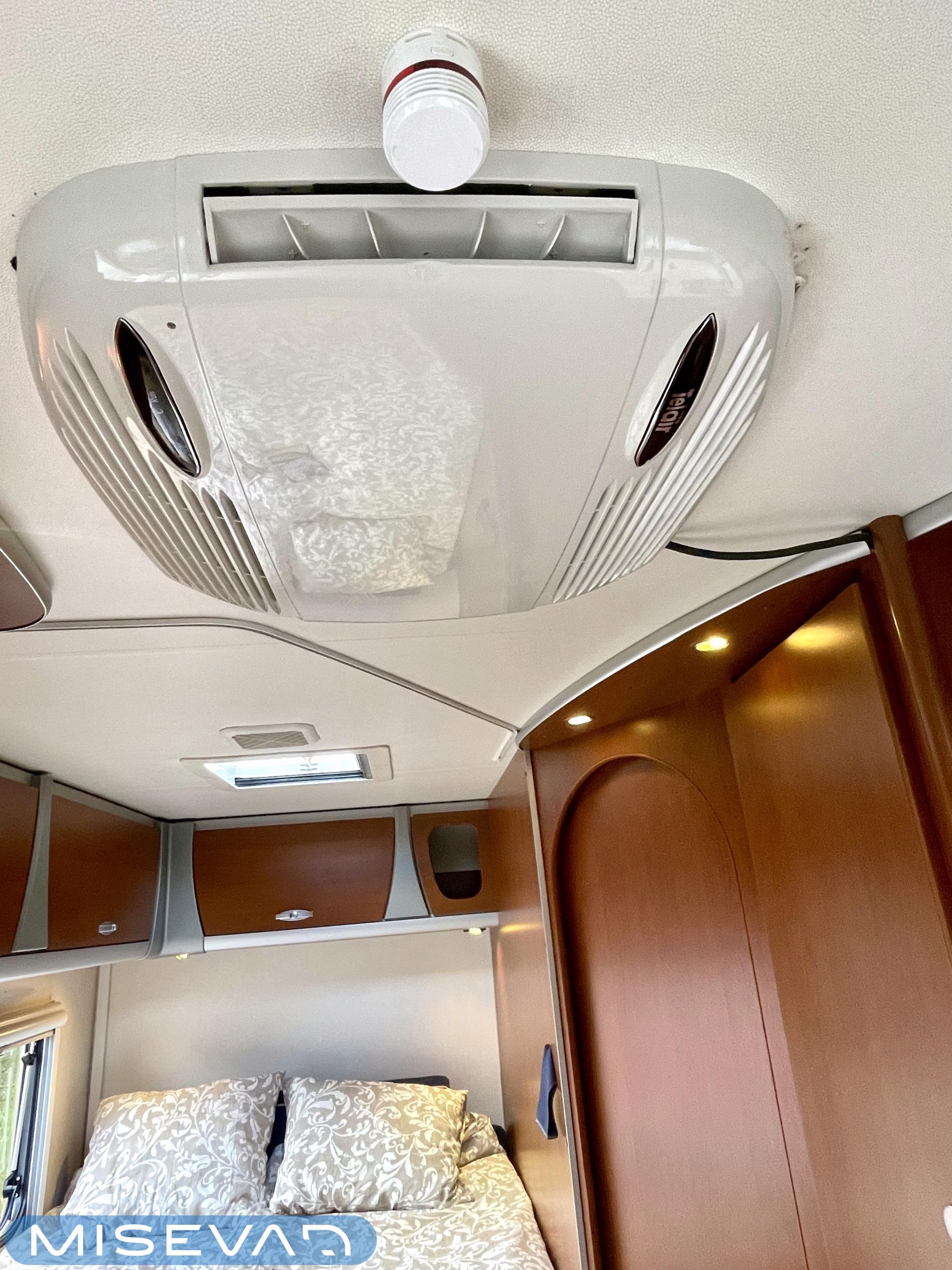 Truma, Sähköpatruuna, Lattialämmitys (sähkö), Ilmastointi (asuintila), Markiisi, Polkupyöräteline, Aurinkopaneeli, Invertteri, kwh-mittari, Eristetty harmaavesisäiliö, jenkkijääkaappi, Mikro