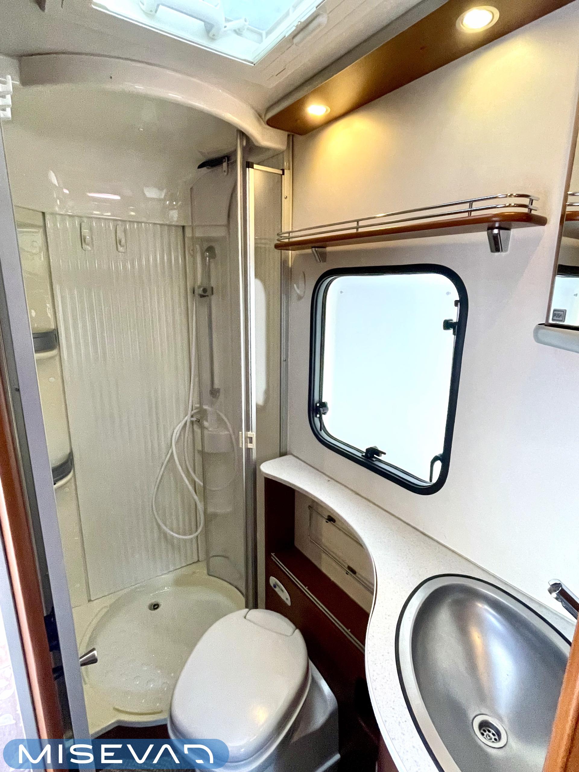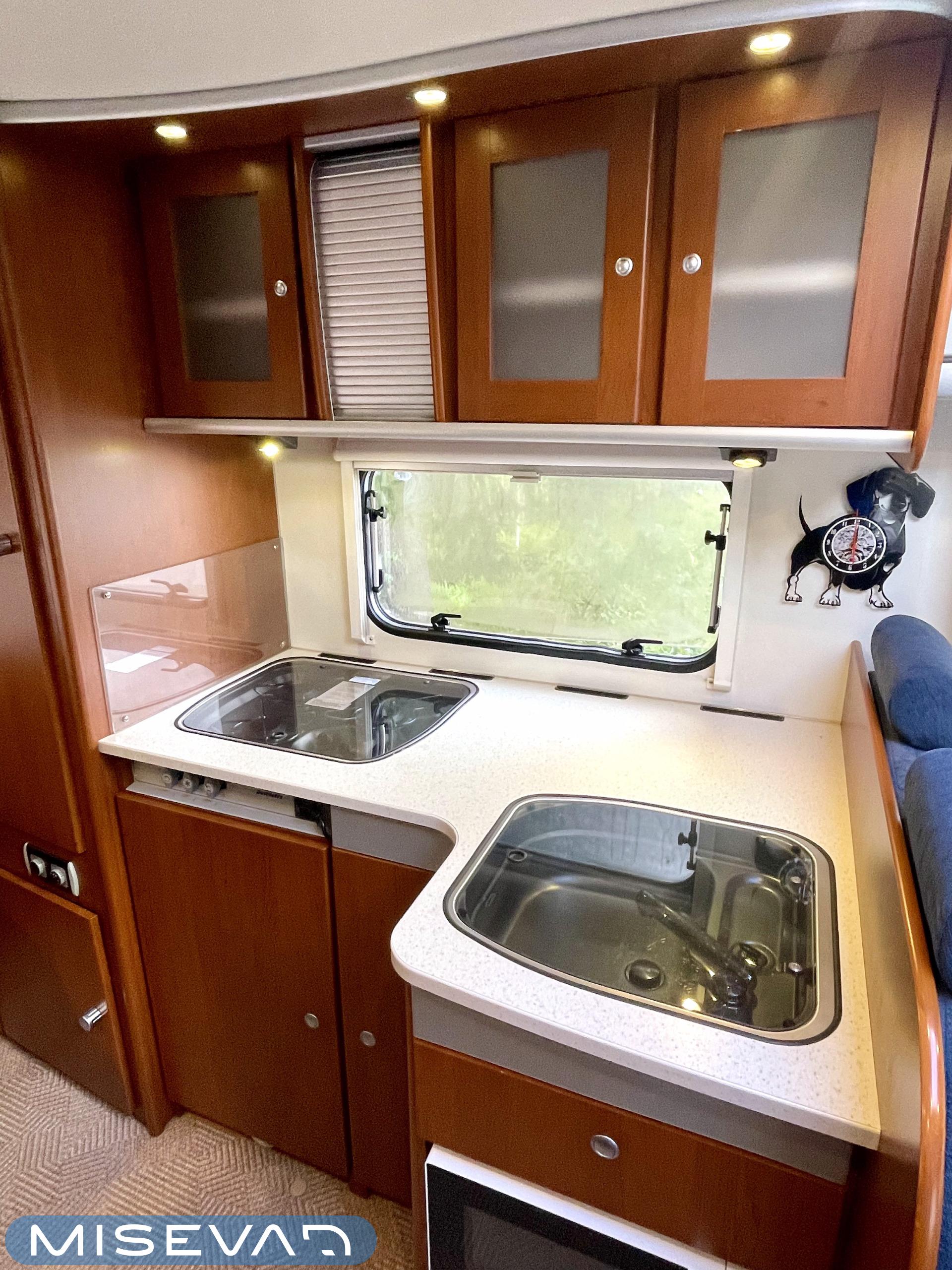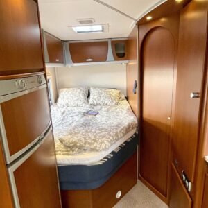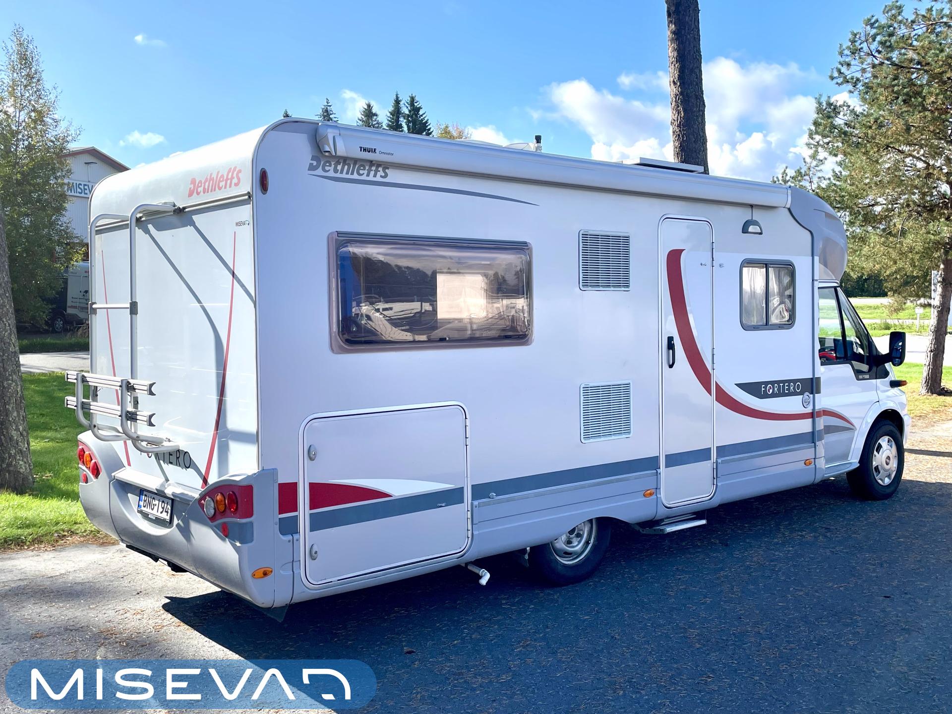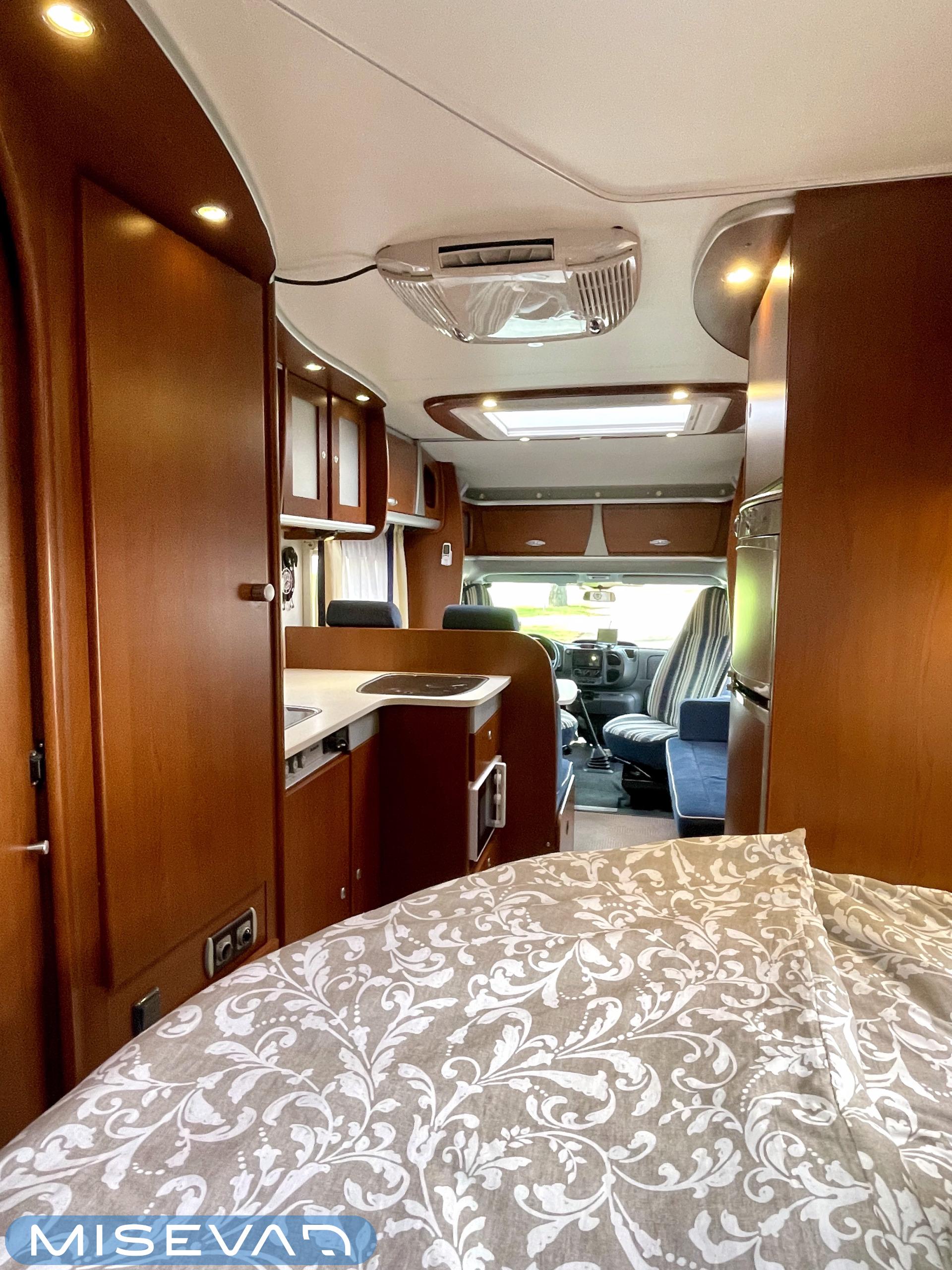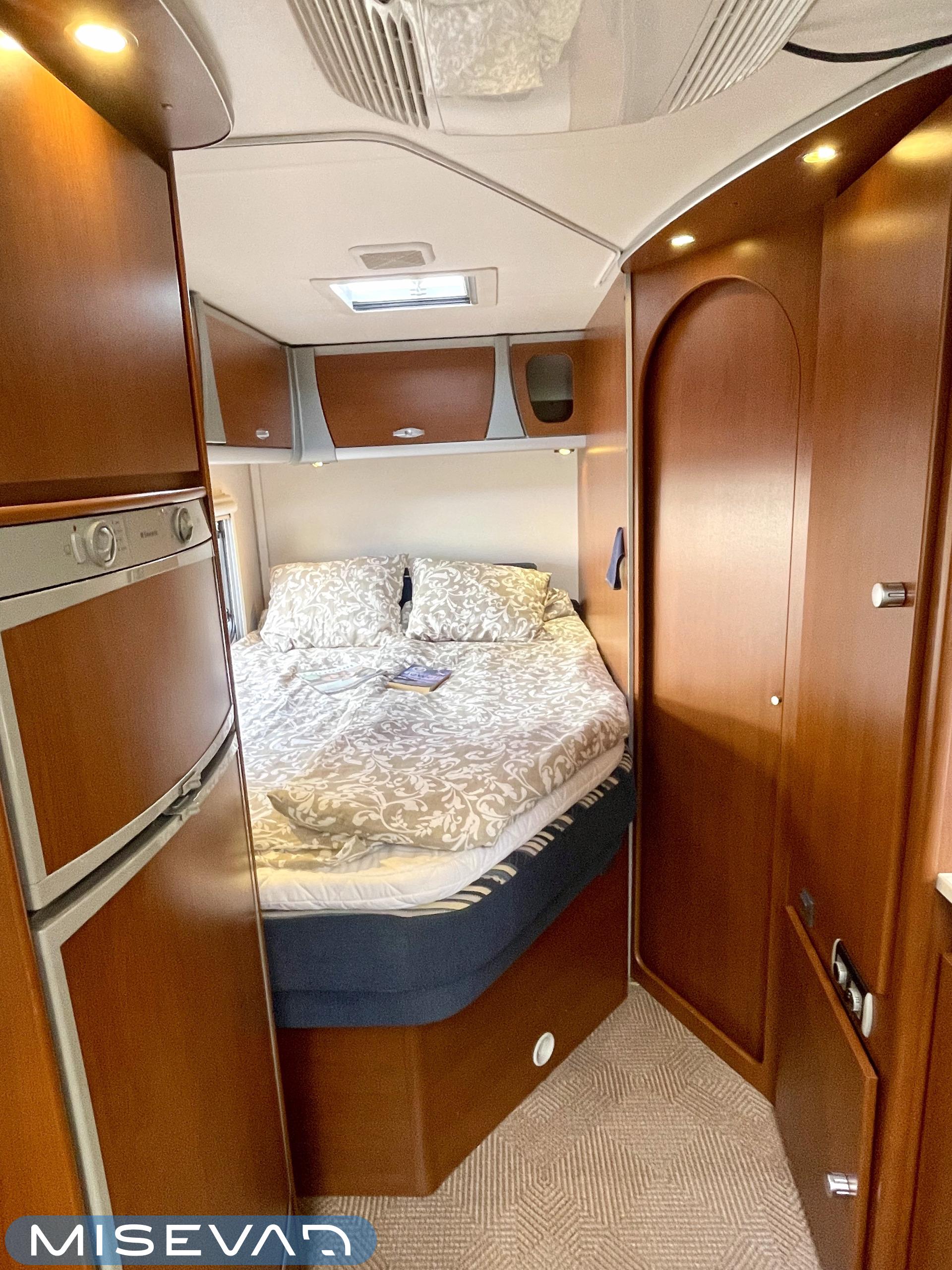 Truma, Sähköpatruuna, Lattialämmitys (sähkö), Ilmastointi (asuintila), Markiisi, Polkupyöräteline, Aurinkopaneeli, Invertteri, kwh-mittari, Eristetty harmaavesisäiliö, jenkkijääkaappi, Mikro