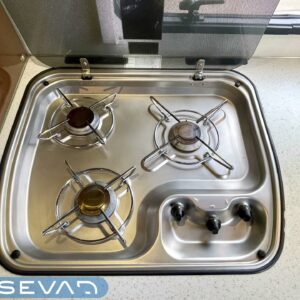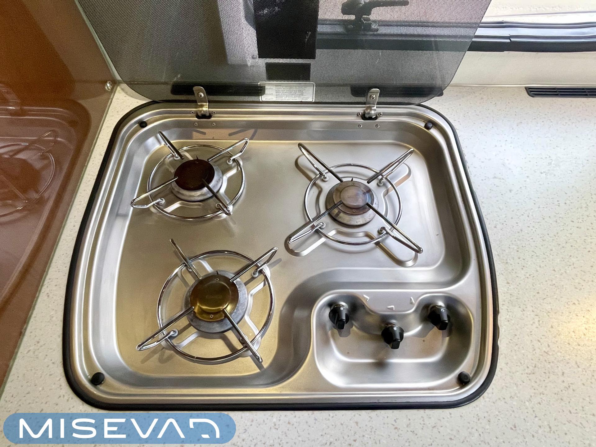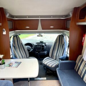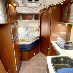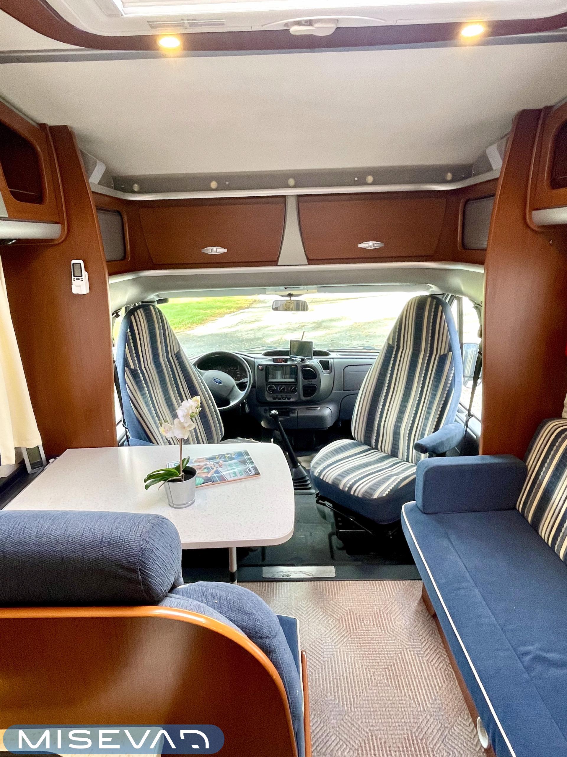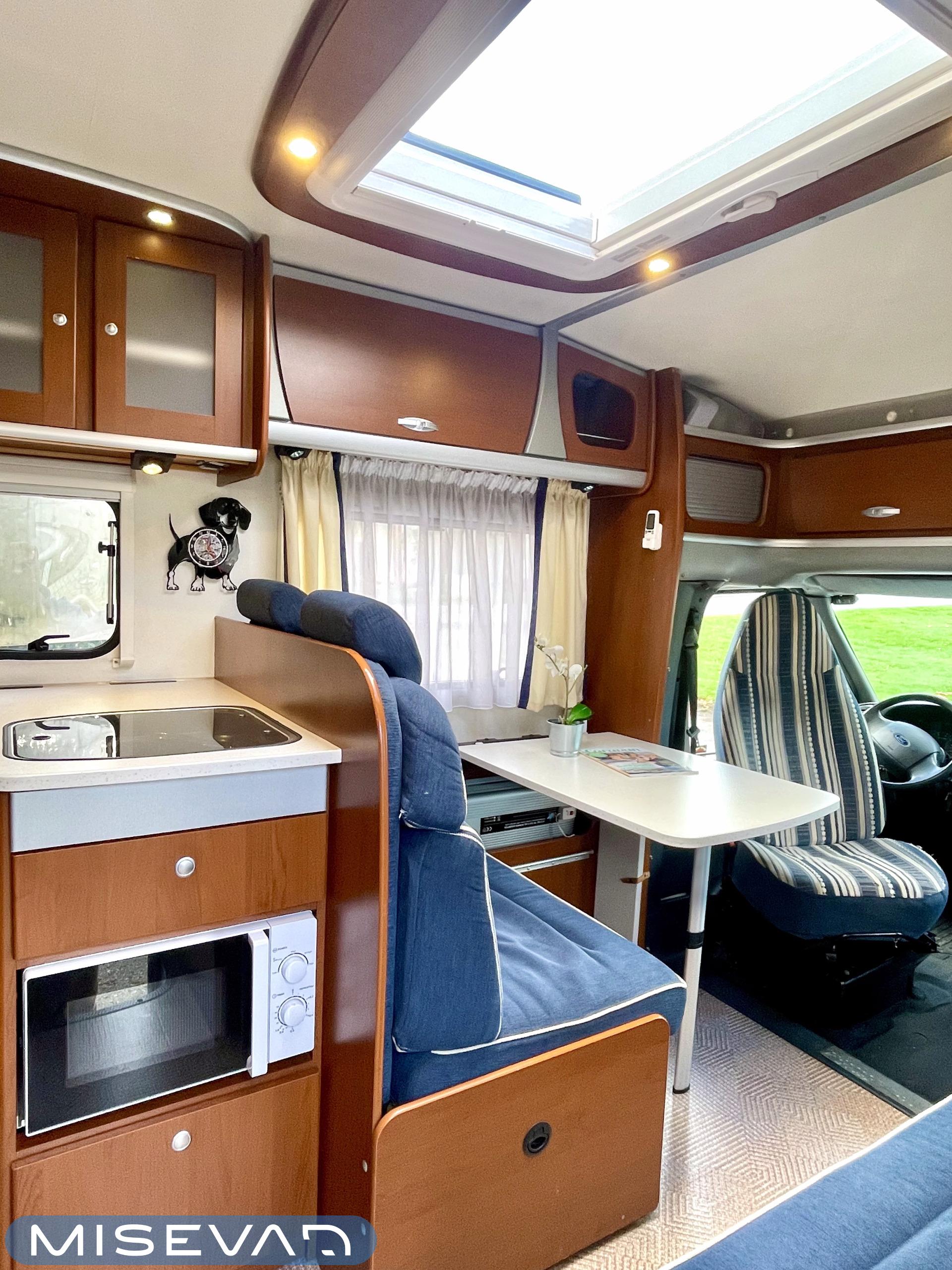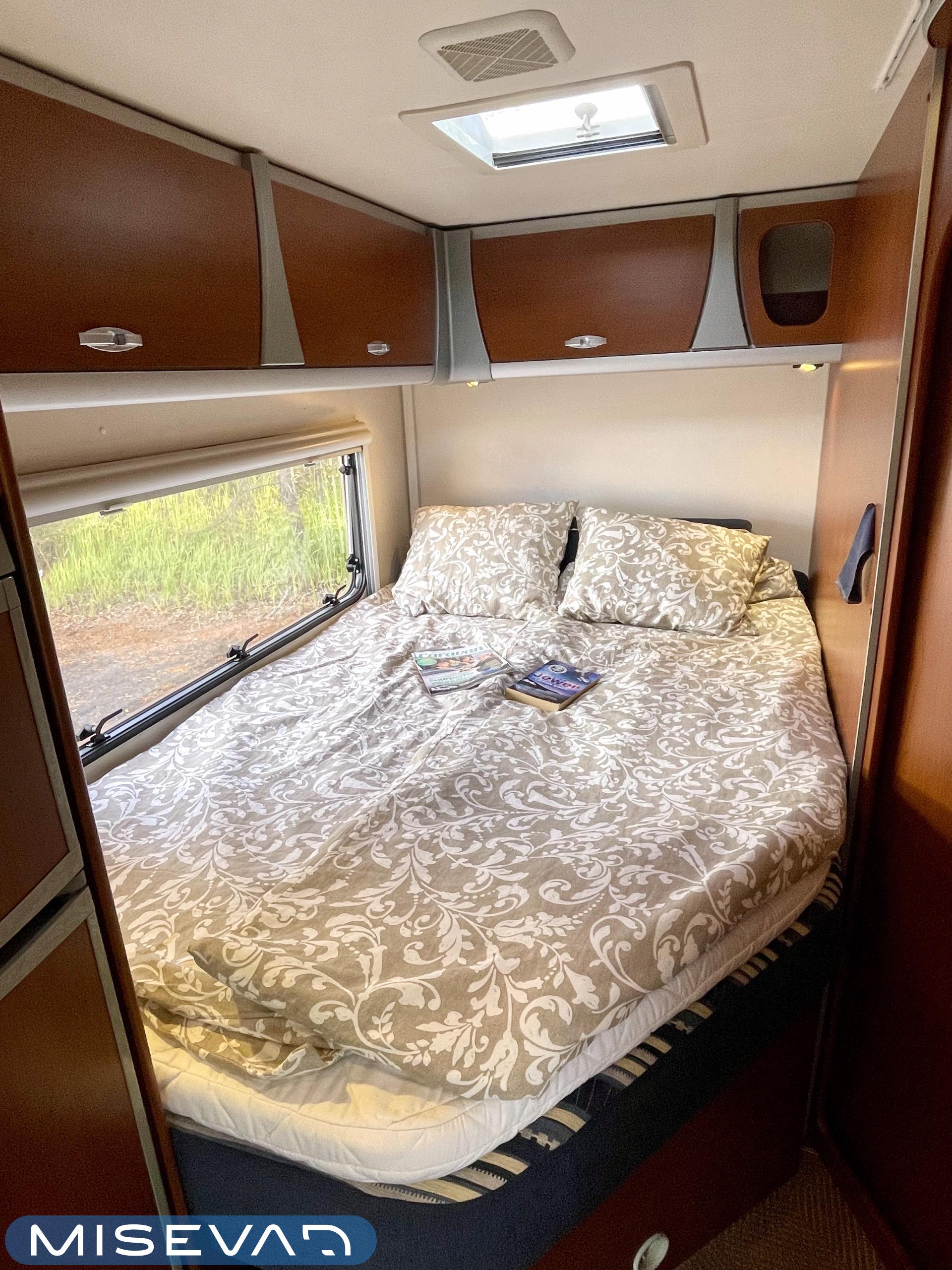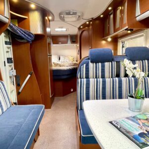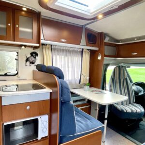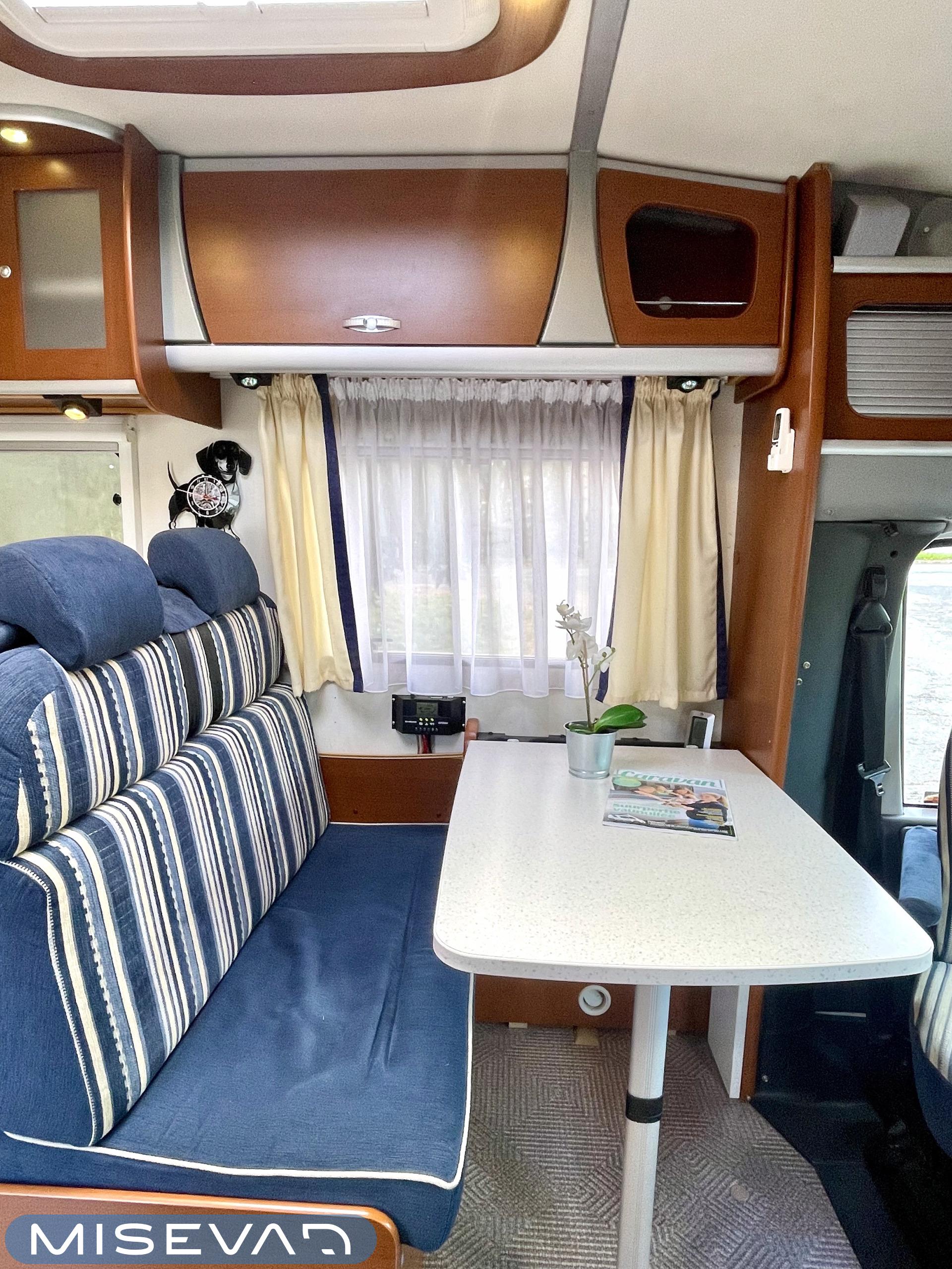 Truma, Sähköpatruuna, Lattialämmitys (sähkö), Ilmastointi (asuintila), Markiisi, Polkupyöräteline, Aurinkopaneeli, Invertteri, kwh-mittari, Eristetty harmaavesisäiliö, jenkkijääkaappi, Mikro