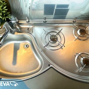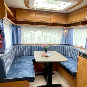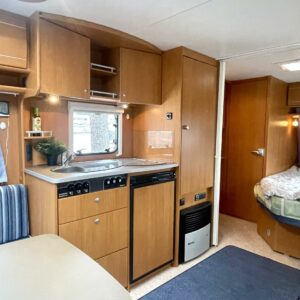 Jääkaappi, Kasetti WC, Kasettiverhot, Kattoluukku, Liesi, Lämminvesiboileri, Markiisi, Pakastelokero, Parivuode, Pesuallas, Sähköpatruuna, Trumatic, kaasun ulosotto, Asuinosan hyttysovi/verho