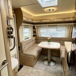Markiisi, Kasetti WC, Kasettiverhot, Trumatic, Jääkaappi, Pakastelokero, Erillisvuoteet, Lattiamatot asunto-osassa, Kattoluukku, TV-antenni tai lautasantenni, Liesi, Lattialämmitys, Lämminvesiboileri, Pesuallas, Sähköpatruuna, Tukijalat, Mikroaaltouuni