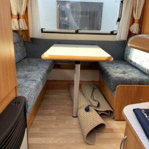 Jääkaappi, Kasetti WC, Kasettiverhot, Kattokaiteet/tikkaat, Kattoluukku, Liesi, Pakastelokero, Parivuode, Trumatic, Tukijalat, TV-antenni tai lautasantenni, Sähköpatruuna, Pesuallas, Lattiamatot asunto-osassa