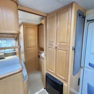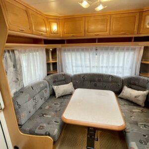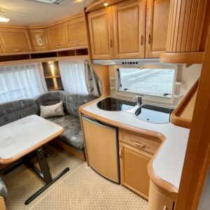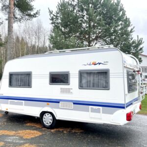 Jääkaappi,Kasetti WC,Kasettiverhot,Kattokaiteet/tikaat,Kattoluukku,Keskuslämmitys,Lattialämmitys,Lattiamatot asunto-osassa,Liesi,Lämminvesiboileri,Pakastelokero,Parivuode,Pesuallas,Pyöräteline,Sähköpatruuna,Trumatic,Tukijalat,TV-antenni/lautasantenni