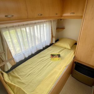 Erillisvuoteet, Jääkaappi, Kasetti WC, Kasettiverhot, Kattoluukku, Lattiamatot asunto-osassa, Liesi, Lämminvesiboileri, Markiisi, Pakastelokero, Pesuallas, Sähköpatruuna, Trumatic, Tukijalat, Kesärenkaat, kwh-mittari, Asuinosan hyttysovi/verho