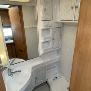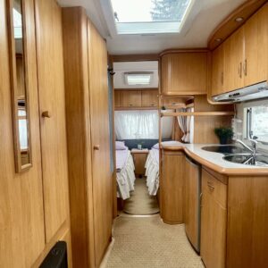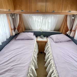 Erillisvuoteet, Jääkaappi, Kasetti WC, Kasettiverhot, Kattokaiteet/tikkaat, Kattoluukku, Lattiamatot asunto-osassa, Liesi, Lämminvesiboileri, Markiisi, Pakastelokero, Pesuallas, Sähköpatruuna, Trumatic, Tukijalat, kwh-mittari, sähkön ulosotto