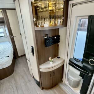 Alde, kwh-mittari, ranskalainen vuode, Jääkaappi, Kasetti WC, Kasettiverhot, Kattoluukku, Lattialämmitys, Liesi, Lämminvesiboileri, Nestekiertolämmitys, Pakastelokero, Parivuode, Pesuallas, Sähköpatruuna, Tukijalat, Lattialämmitys (sähkö), jenkkijääkaappi, liesituuletin, Asuinosan hyttysovi/verho, Kaasu-uuni, sähkön ulosotto, televisioteline, Lattiamatot asunto-osassa, TV-antenni tai lautasantenni, Markiisi, Pyöräteline