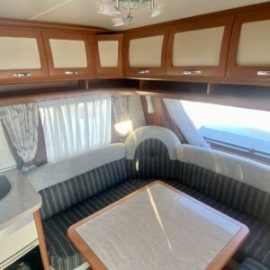 Alde, Erillisvuoteet, Kasettiverhot, Kasetti WC, Kaasu-uuni, Jääkaappi, Kattoluukku, Lämminvesiboileri, Liesi, Nestekiertolämmitys, Pakastelokero, Pesuallas, Tukijalat, Sähköpatruuna, Suihku, Lattialämmitys