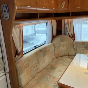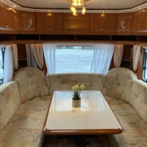 Alde,Jääkaappi,Kaasu-uuni,Kasetti WC,Keskuslämmitys,Lattialämmitys,Liesi,Lämminvesiboileri,Nestekiertolämmitys,Parivuode,Sähköpatruuna,Tukijalat,TV-antenni/lautasantenni