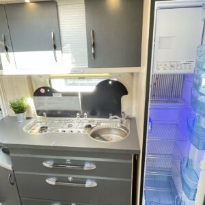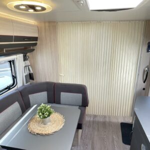 Alde, Aurinkopaneeli, Jääkaappi, Kasetti WC, Kasettiverhot, Kattoluukku, Kerrossänky, Lattialämmitys, Lattiamatot asunto-osassa, Liesi, Lämminvesiboileri, Markiisi, Nestekiertolämmitys, Pakastelokero, Parivuode, Pesuallas, Suihku, Sähköpatruuna, TV-antenni tai lautasantenni, Tukijalat, Lattialämmitys (sähkö), jenkkijääkaappi, liesituuletin, televisio, Asuinosan hyttysovi/verho, kaasun ulosotto