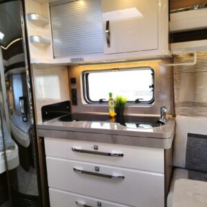 Alde, Erillisvuoteet, Jääkaappi, Kasetti WC, Kasettiverhot, Kattoluukku, Keskuslämmitys, Lattiamatot asunto-osassa, Liesi, Lämminvesiboileri, Mikroaaltouuni, Nestekiertolämmitys, Pakastelokero, Pesuallas, Suihku, Sähköpatruuna, Tukijalat, Lattialämmitys, Lattialämmitys (sähkö)