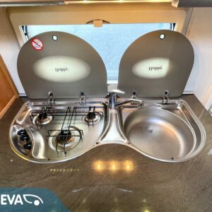 Alde, Jääkaappi, Kasetti WC, Kasettiverhot, Kattoluukku, Lattialämmitys, Liesi, Lämminvesiboileri, Nestekiertolämmitys, Pakastelokero, Parivuode, Sähköpatruuna, TV-antenni tai lautasantenni, Tukijalat, Lattialämmitys (sähkö), kwh-mittari, sähkön ulosotto, Asuinosan hyttysovi/verho