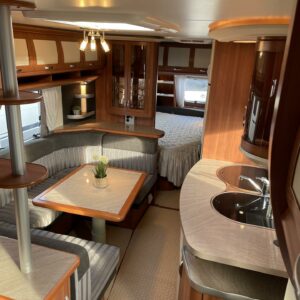 Alde, Ilmastointi aut., Jääkaappi, Kasetti WC, Keskuslämmitys, Lattialämmitys, Liesi, Lämminvesiboileri, Nestekiertolämmitys, Parivuode, Sähköpatruuna, Tukijalat, TV-antenni/lautasantenni, Asuinosan hyttysovi/verho, Lattialämmitys (sähkö), Ilmastointi (asuintila), Kasettiverhot, Kattoluukku, Kerrossänky, Lattiamatot asunto-osassa, Mikroaaltouuni, Pakastelokero, Pesuallas, TV-antenni tai lautasantenni, jenkkijääkaappi, sähkön ulosotto