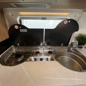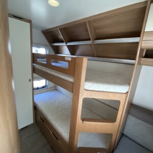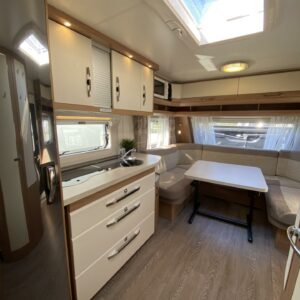 Alde, Ilmastointi: Automaattinen, Jääkaappi, Kasetti WC, Kasettiverhot, Kattoluukku, Kerrossänky, Liesi, Lämminvesiboileri, Markiisi, Mikroaaltouuni, Nestekiertolämmitys, Pakastelokero, Parivuode, Pesuallas, Suihku, Sähköpatruuna, Tukijalat, Lattialämmitys (nestekierto), Kesärenkaat, kwh-mittari, kaasun ulosotto
