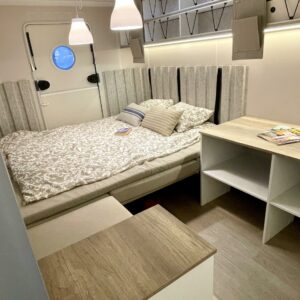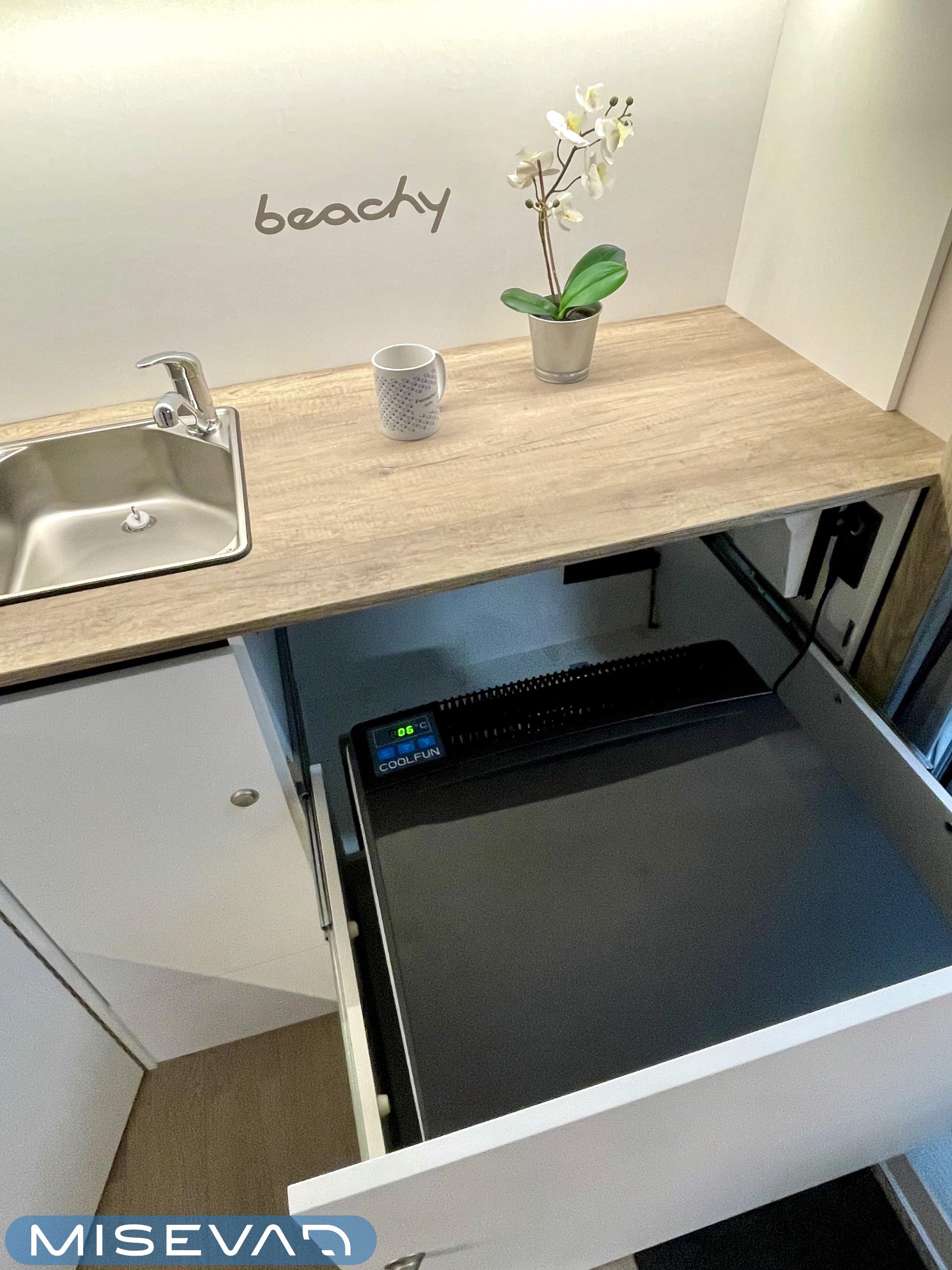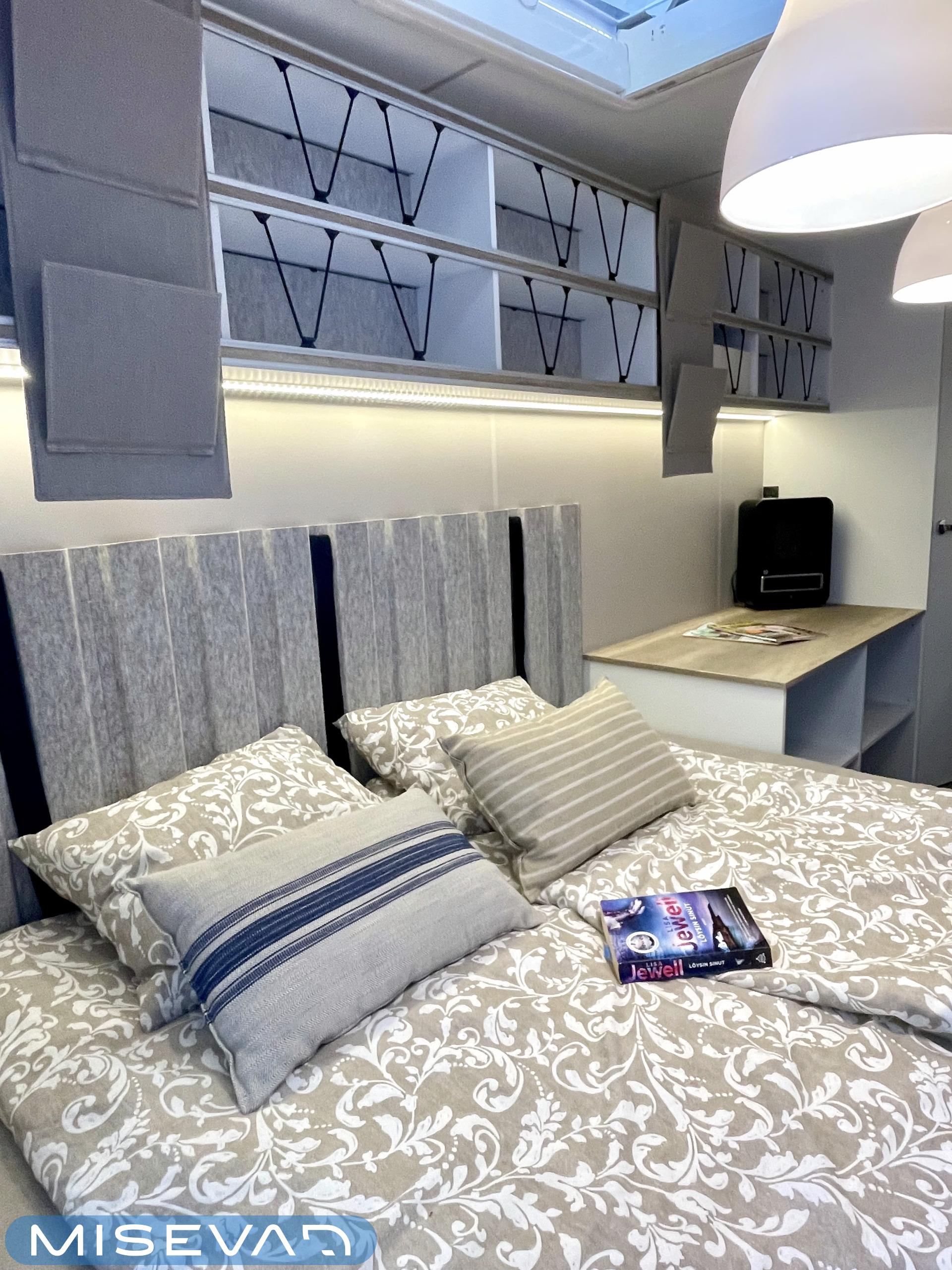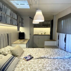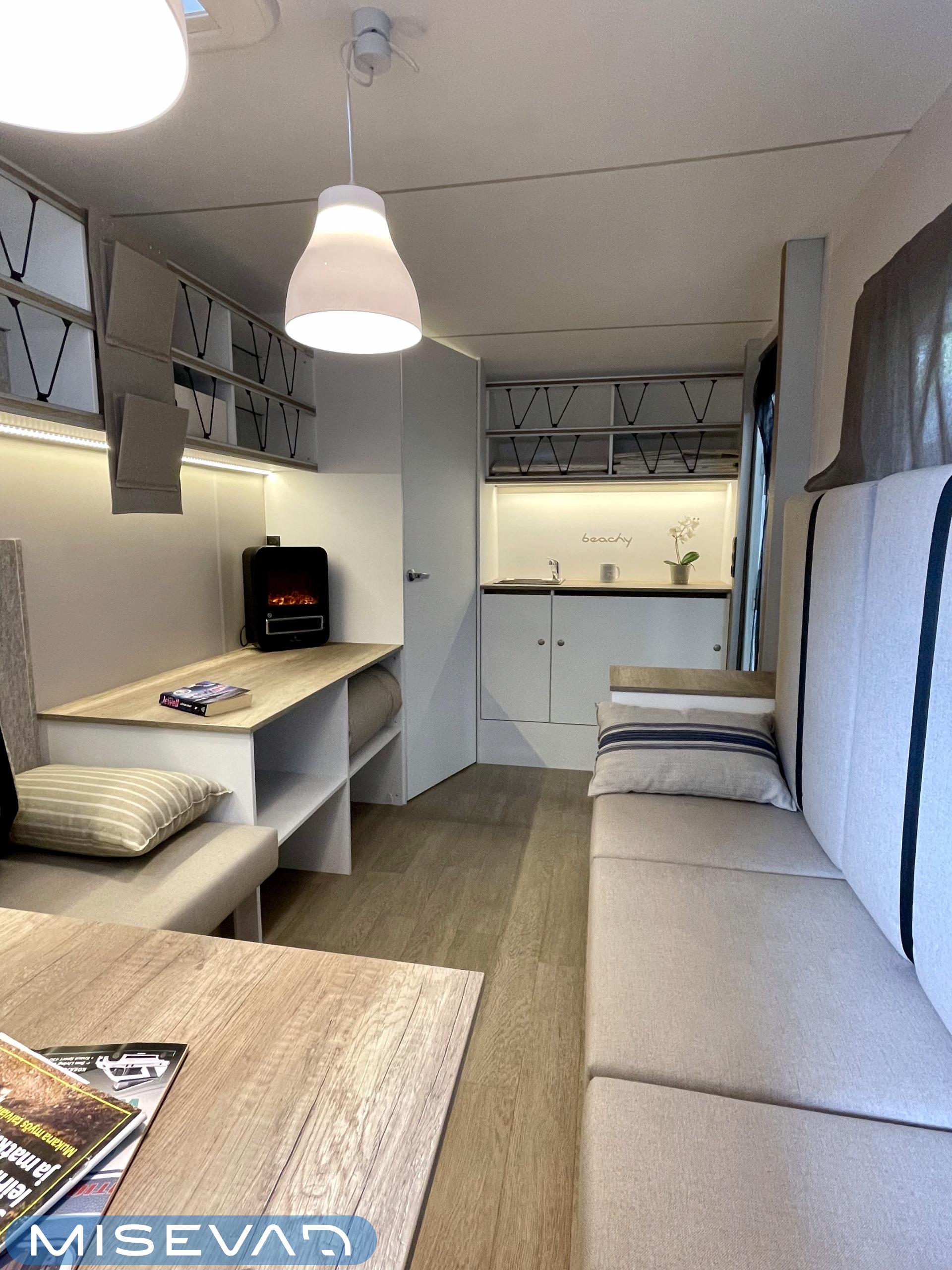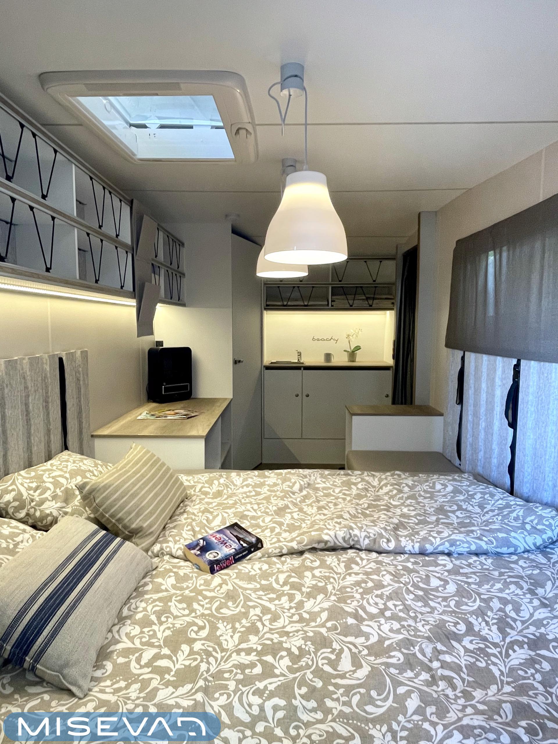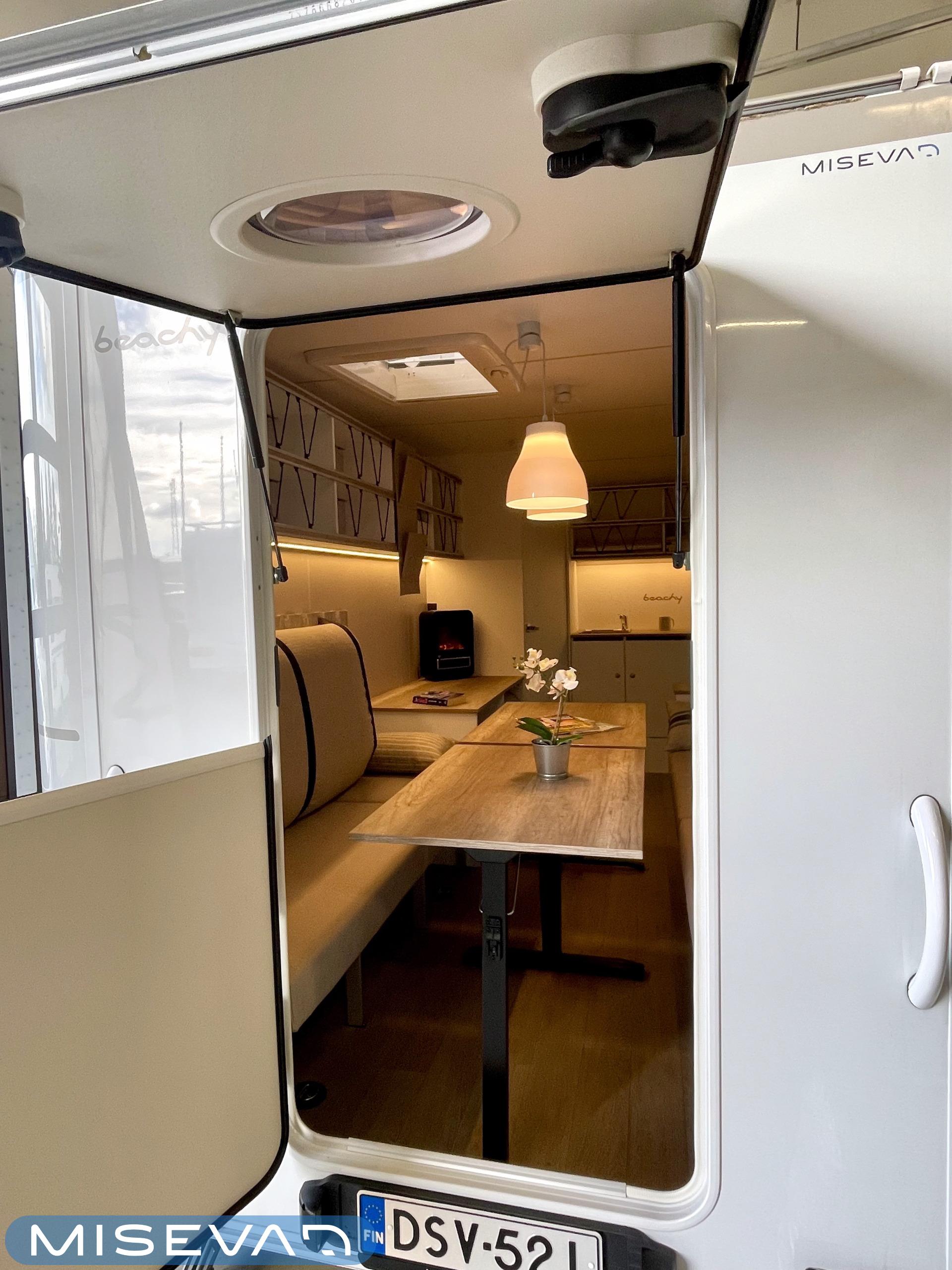 Jääkaappi, Kattoluukku, Parivuode, Pesuallas, Tukijalat, 2000W lämmitin, AirFryer