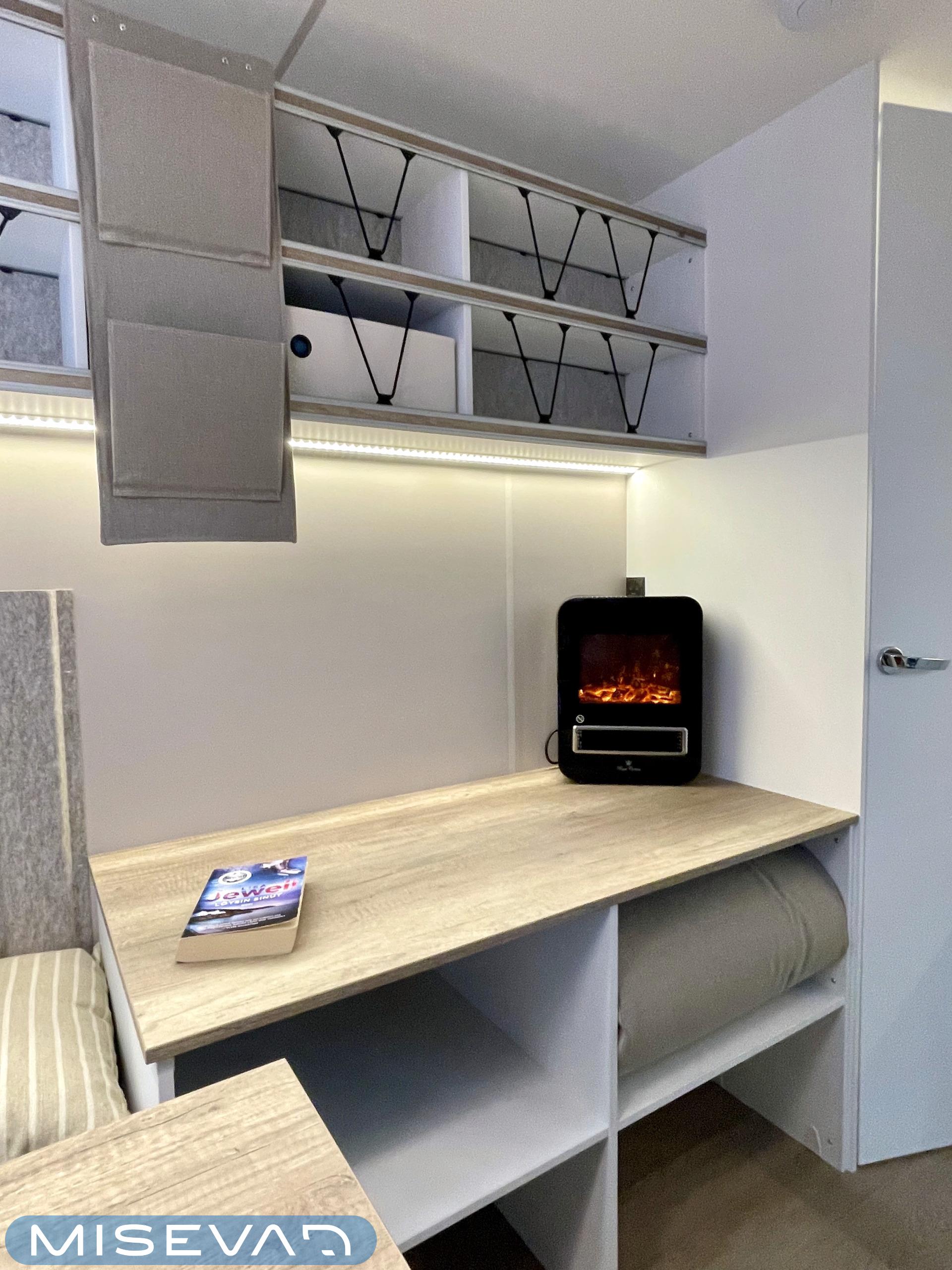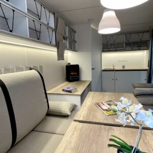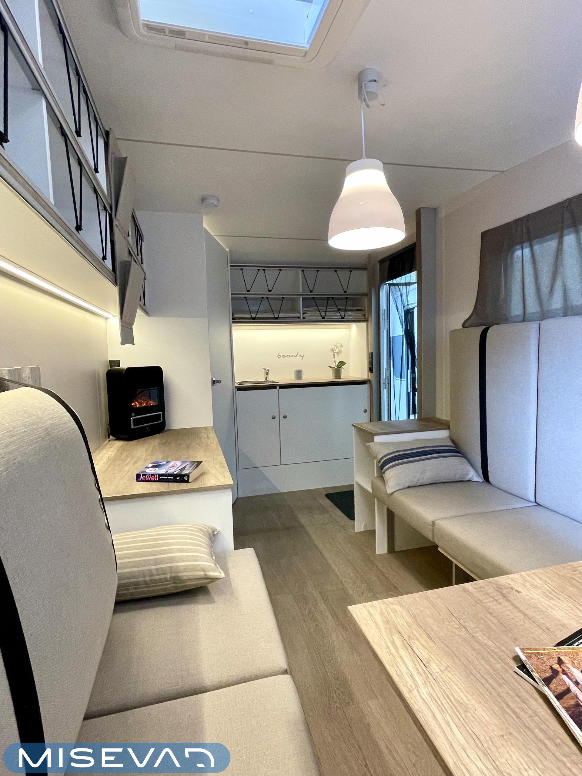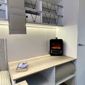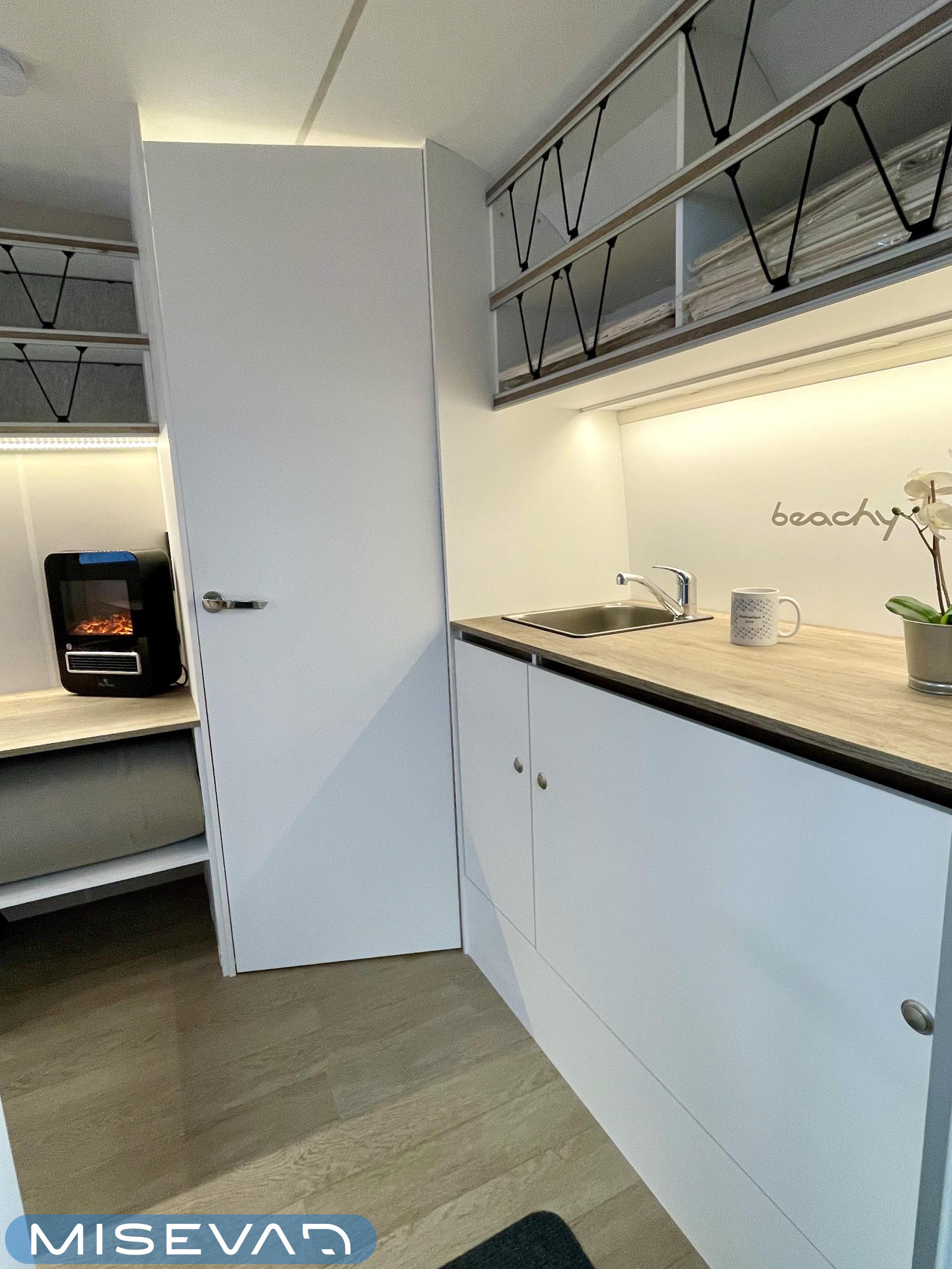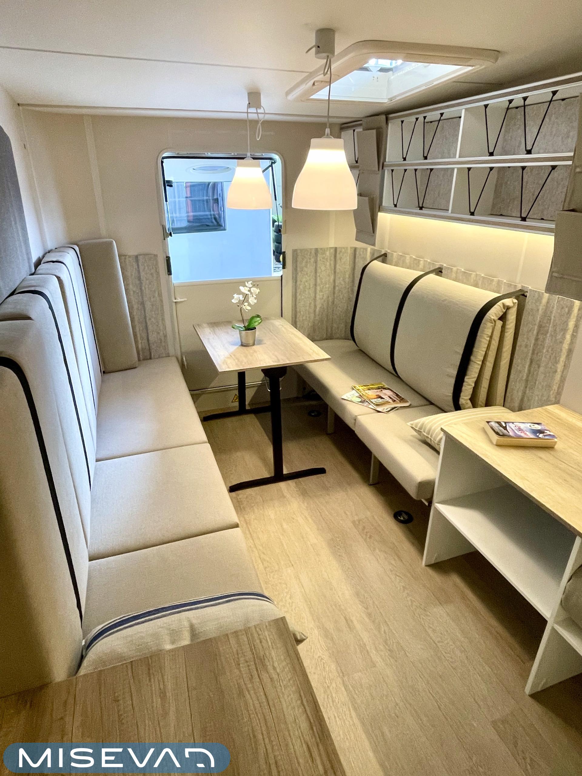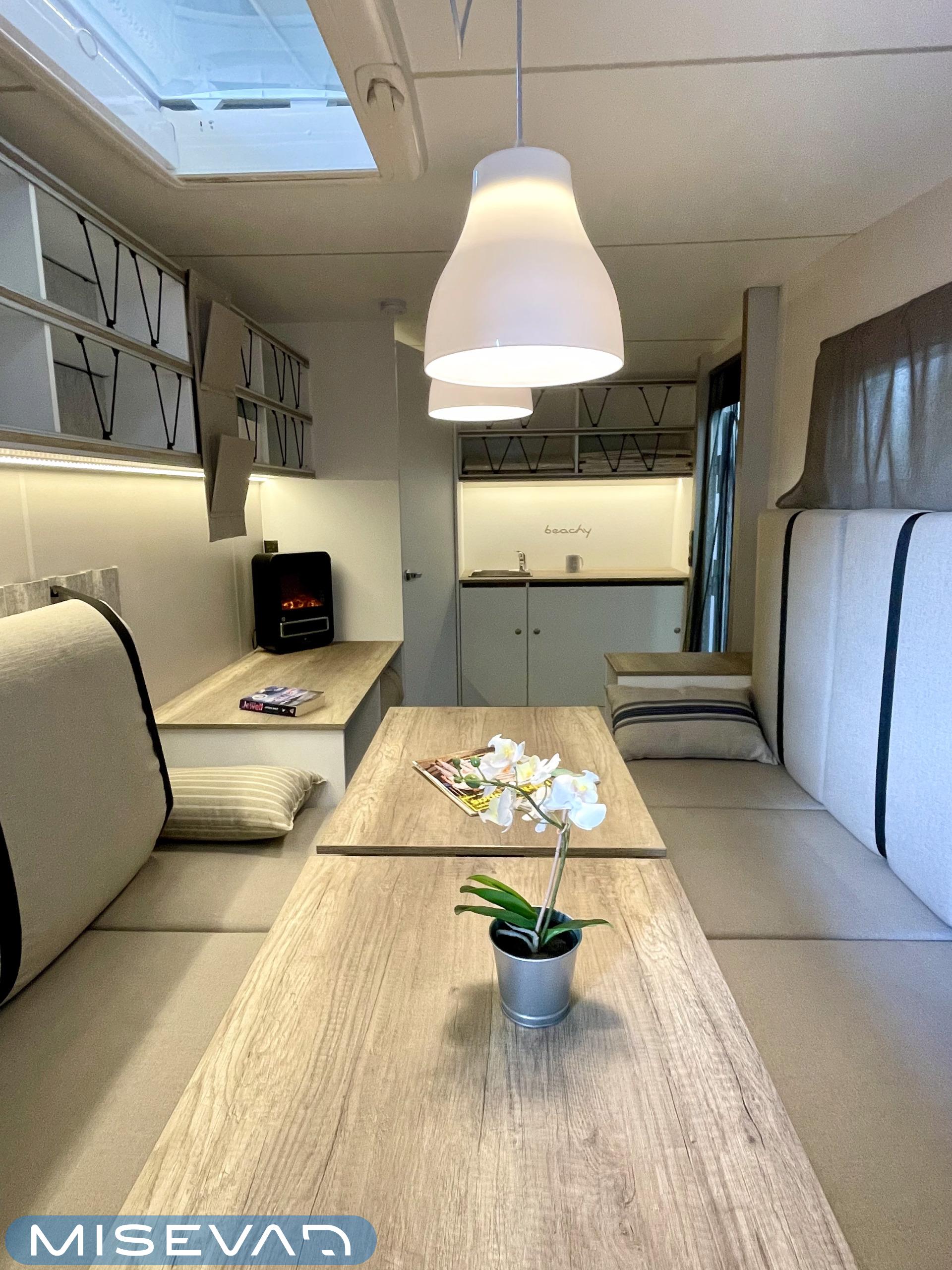 Jääkaappi, Kattoluukku, Parivuode, Pesuallas, Tukijalat, 2000W lämmitin, AirFryer