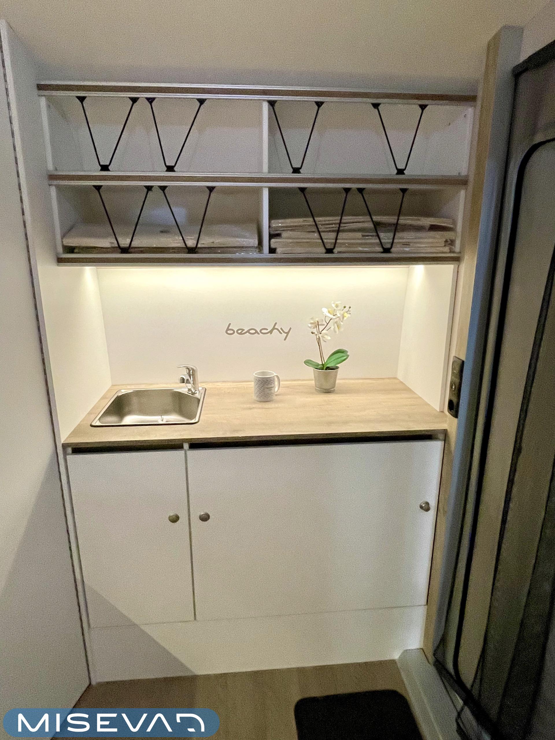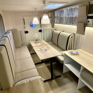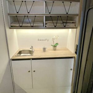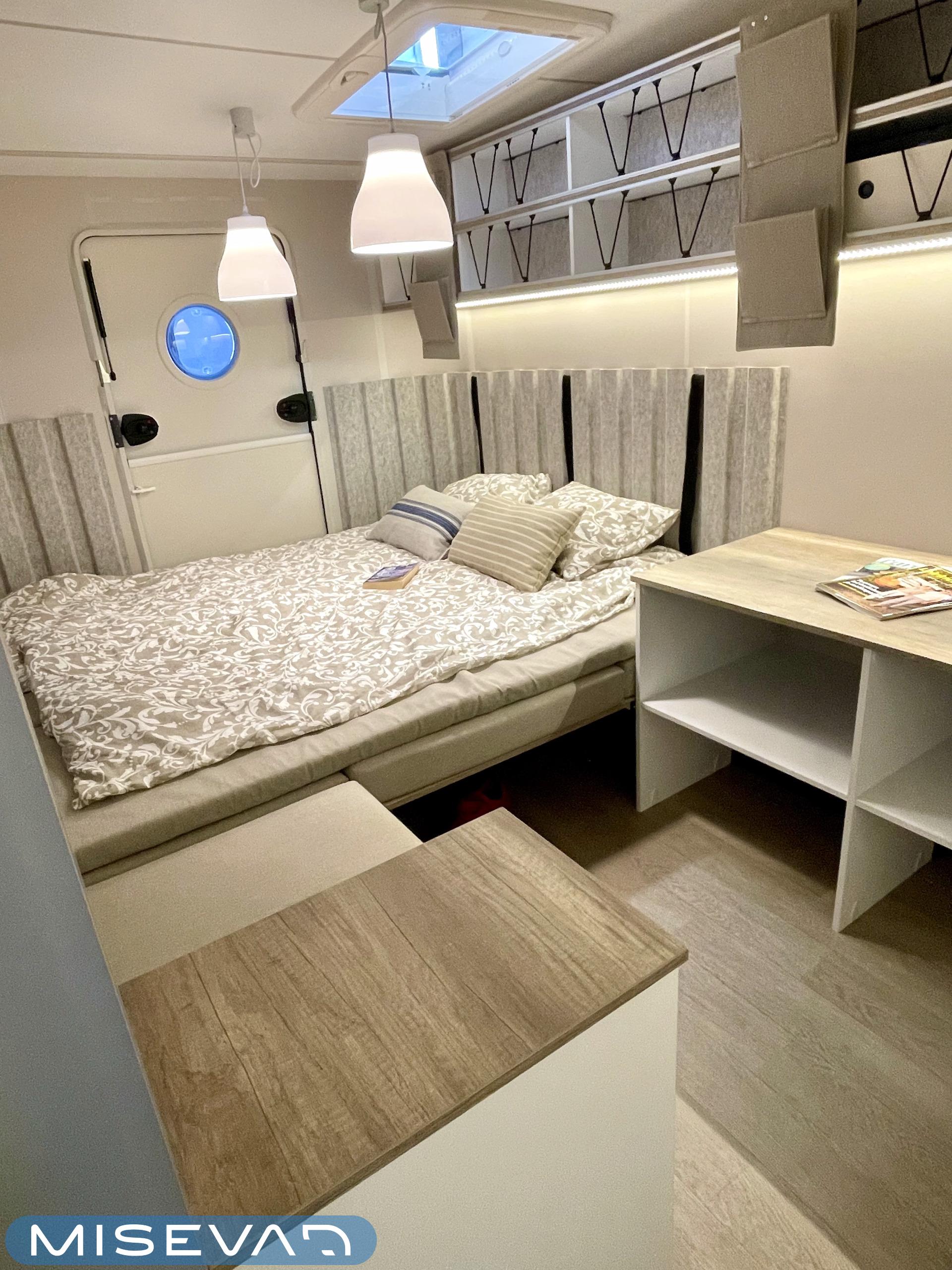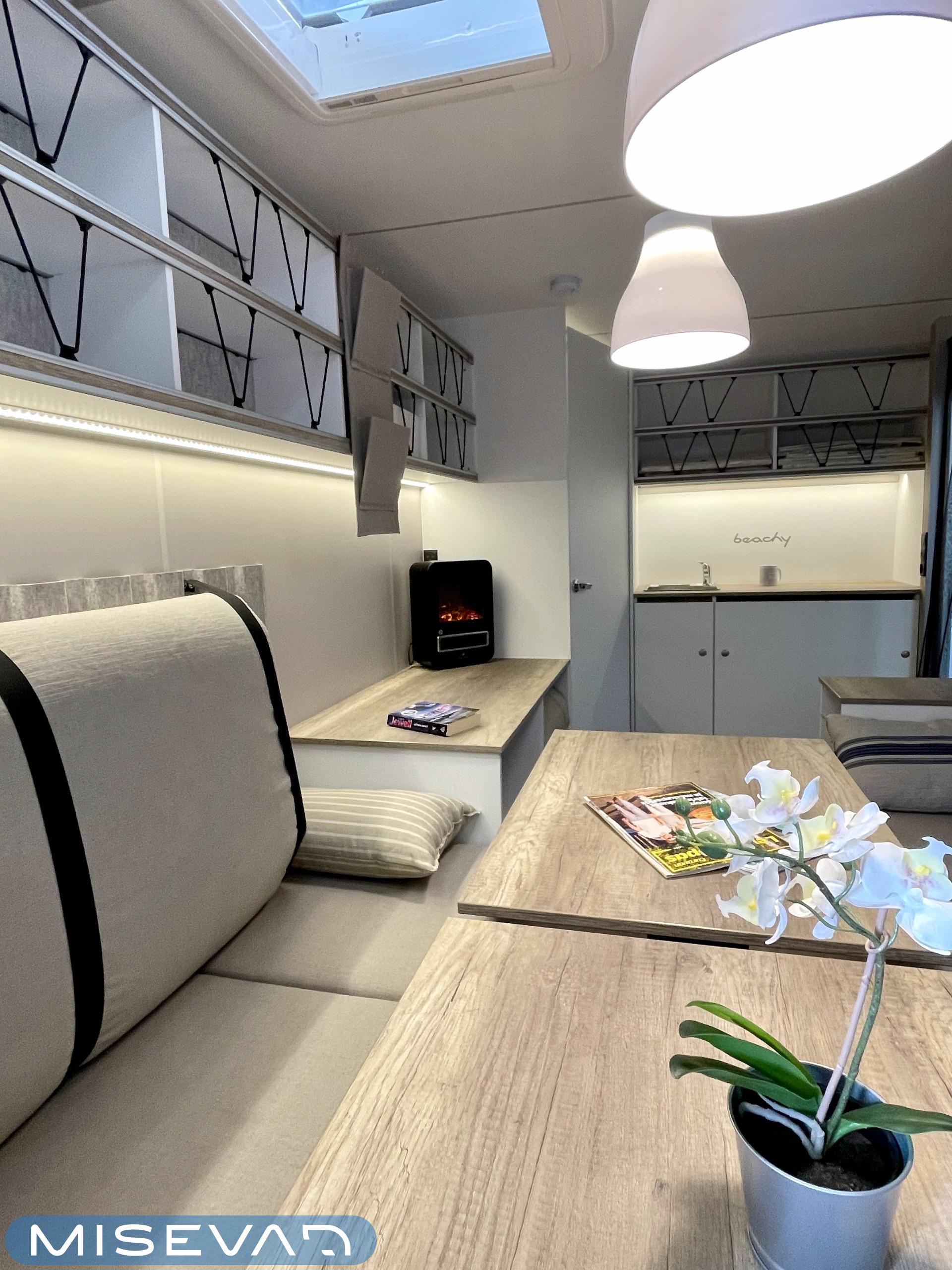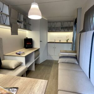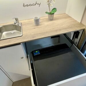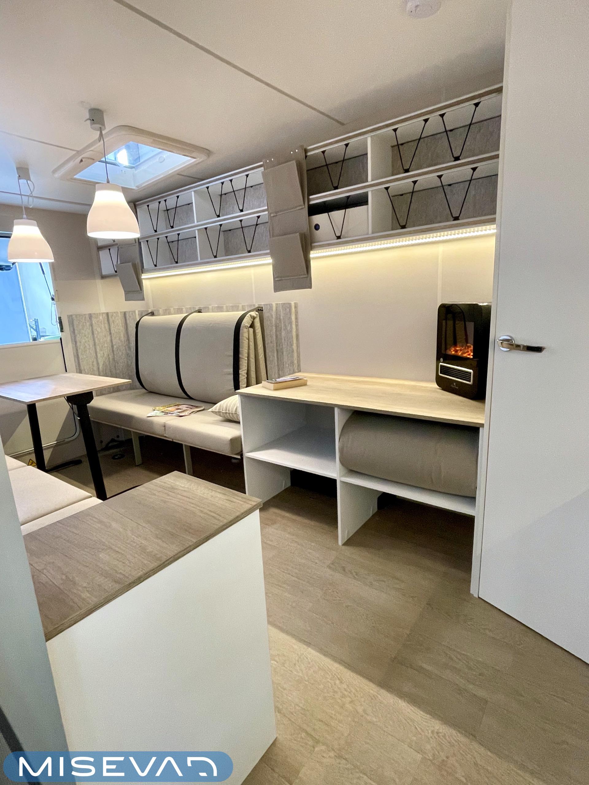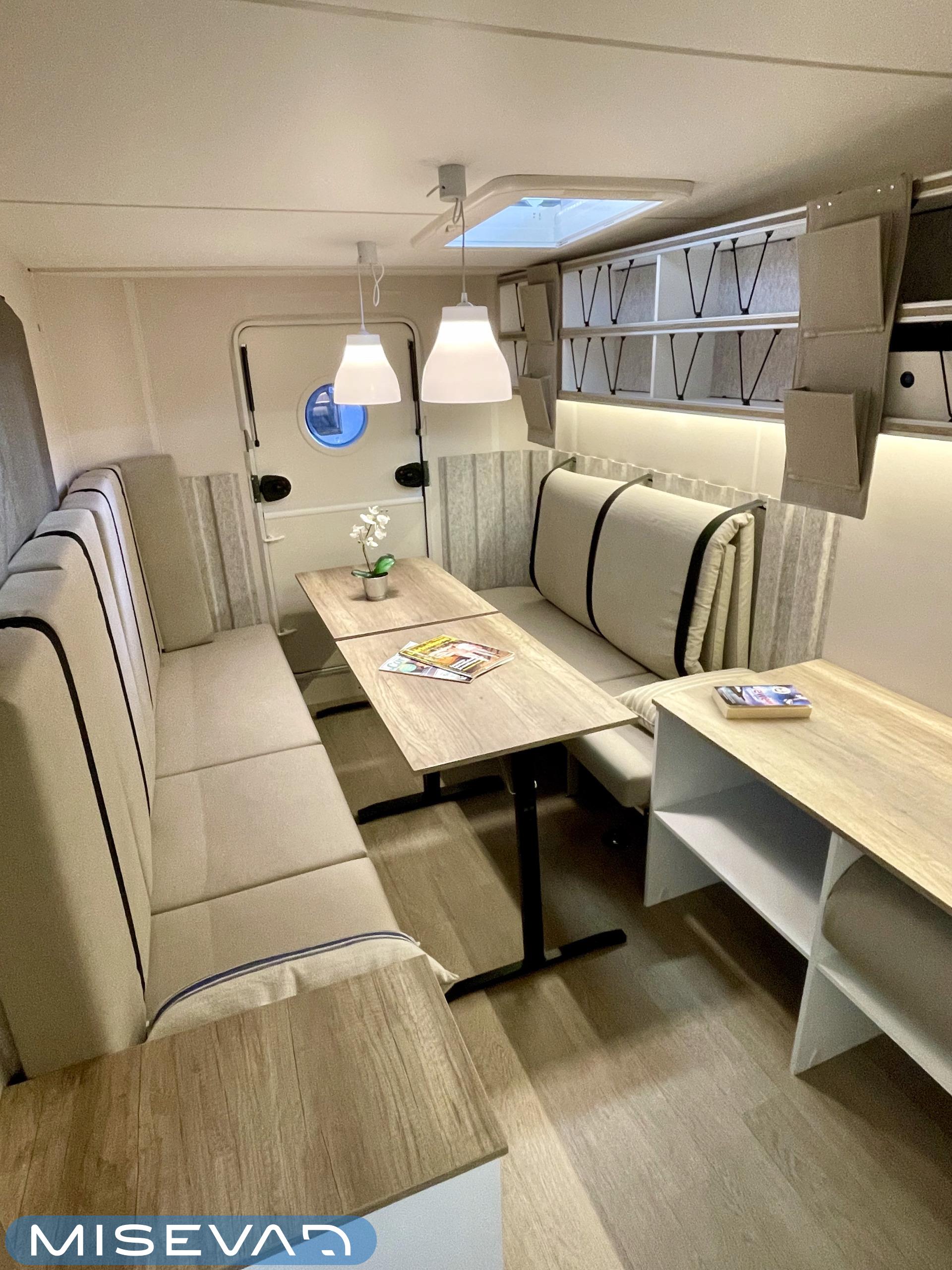 Jääkaappi, Kattoluukku, Parivuode, Pesuallas, Tukijalat, 2000W lämmitin, AirFryer