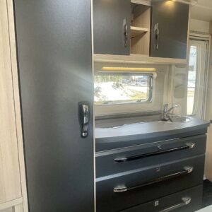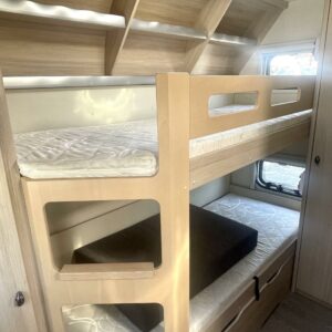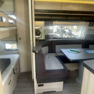 Aurinkopaneeli, Jääkaappi, Kasetti WC, Kasettiverhot, Kattoluukku, Kerrossänky, Liesi, Lämminvesiboileri, Markiisi, Pakastelokero, Parivuode, Pesuallas, Pyöräteline, Trumatic, Tukijalat, kaasun ulosotto, Tupla-akut