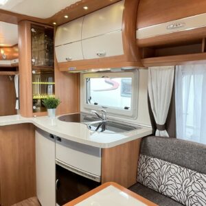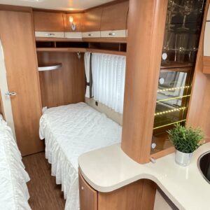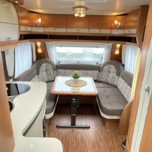 Jääkaappi, Kaasu-uuni, Kasetti WC, Kasettiverhot, Liesi, Lämminvesiboileri, Pakastelokero, Pesuallas, Erillisvuoteet, Lattialämmitys, Nestekiertolämmitys, Sähköpatruuna, Alde, Kattoluukku, Lattiamatot asunto-osassa, TV-antenni tai lautasantenni, Tukijalat, Lattialämmitys (sähkö), sähkön ulosotto, Asuinosan hyttysovi/verho