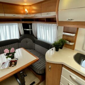 Alde, Jääkaappi, Kasetti WC, Kasettiverhot, Lämminvesiboileri, Liesi, Lattialämmitys, Kattoluukku, Nestekiertolämmitys, Pakastelokero, Pesuallas, Tukijalat, Sähköpatruuna, TV-antenni tai lautasantenni, Erillisvuoteet