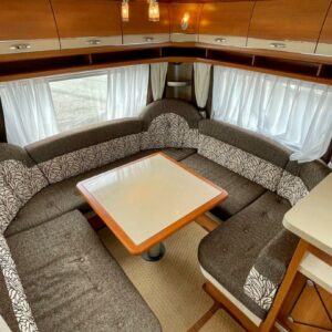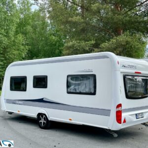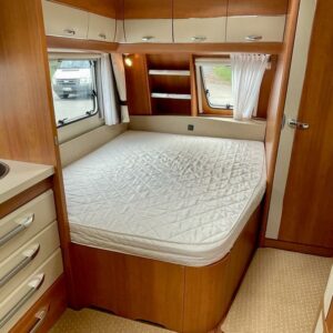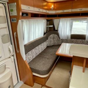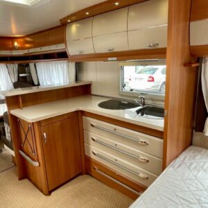 Alde, Jääkaappi, Kasetti WC, Kasettiverhot, Lattialämmitys, Lattiamatot asunto-osassa, Liesi, Lämminvesiboileri, Nestekiertolämmitys, Pakastelokero, Parivuode, Sähköpatruuna, Tukijalat, Kattoluukku, Suihku