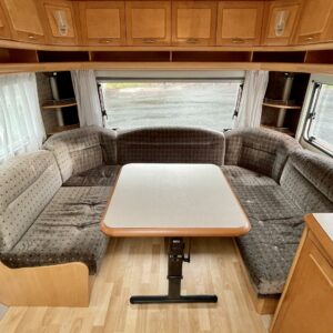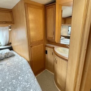 Alde, Kasettiverhot, Kasetti WC, Jääkaappi, Kattoluukku, Liesi, Lämminvesiboileri, Pesuallas, Tukijalat, Sähköpatruuna, Pakastelokero, Nestekiertolämmitys, Parivuode, Mikroaaltouuni, Kerrossänky, TV-antenni tai lautasantenni