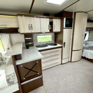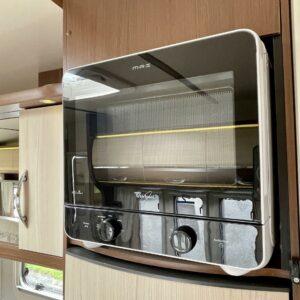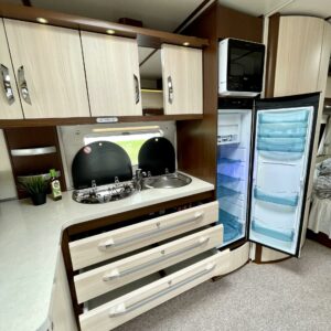 Alde, Jääkaappi, Lattialämmitys, Lattiamatot asunto-osassa, Liesi, Mikroaaltouuni, Nestekiertolämmitys, Pakastelokero, Parivuode, Pesuallas, Suihku, Sähköpatruuna, TV-antenni tai lautasantenni, Kasettiverhot, Kasetti WC, Kattoluukku, Lämminvesiboileri