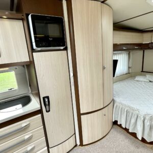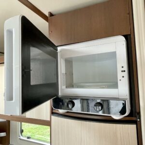 Alde, Jääkaappi, Lattialämmitys, Lattiamatot asunto-osassa, Liesi, Mikroaaltouuni, Nestekiertolämmitys, Pakastelokero, Parivuode, Pesuallas, Suihku, Sähköpatruuna, TV-antenni tai lautasantenni, Kasettiverhot, Kasetti WC, Kattoluukku, Lämminvesiboileri
